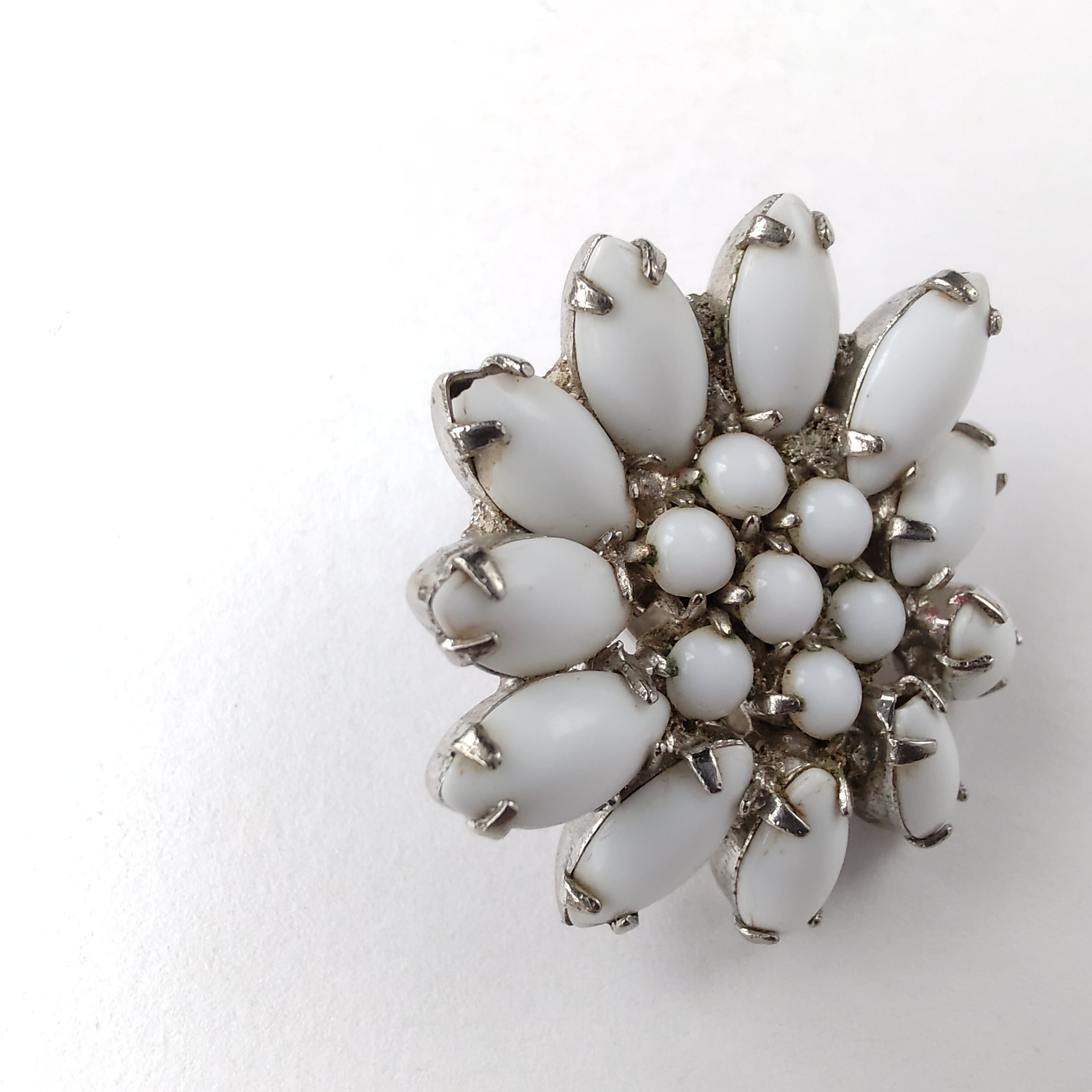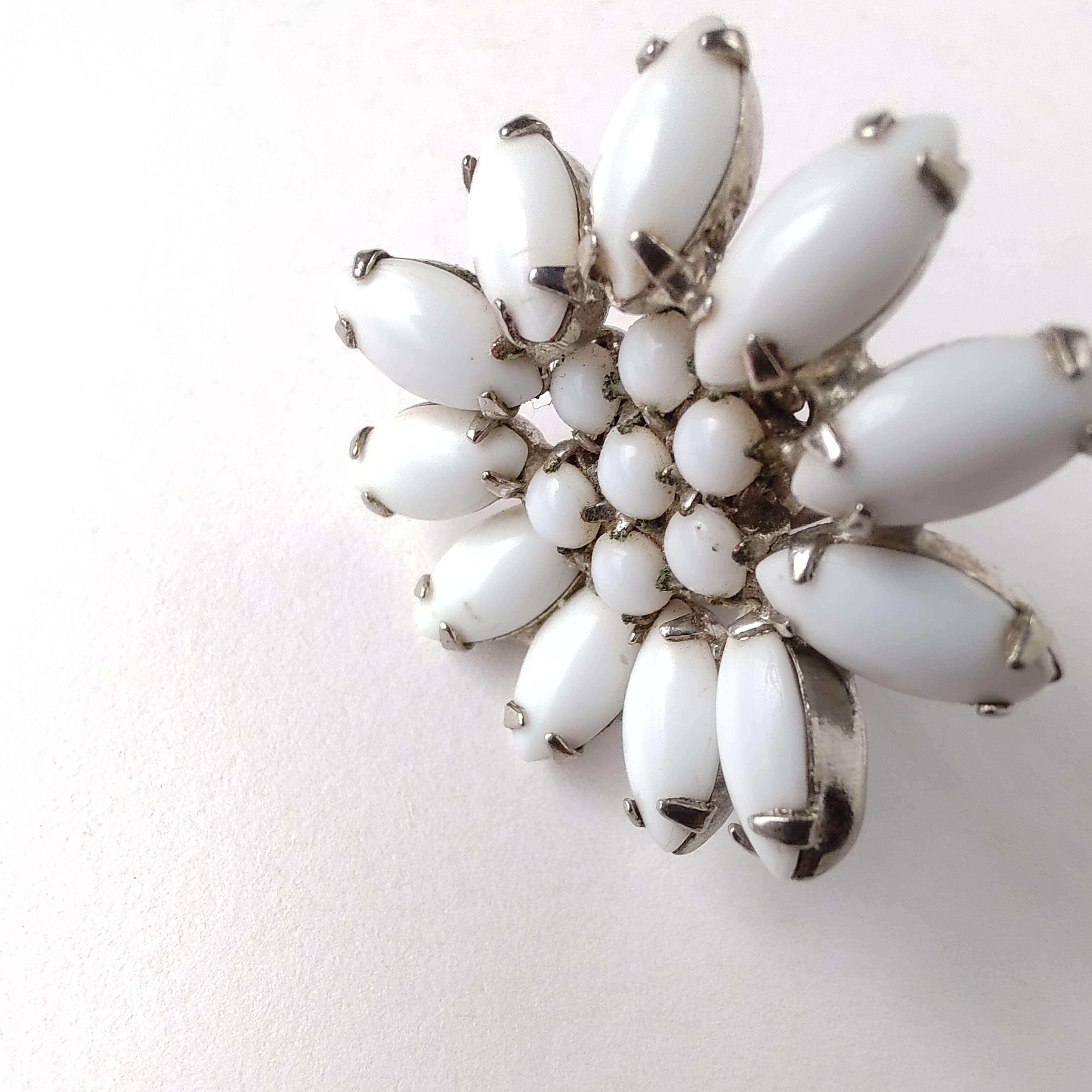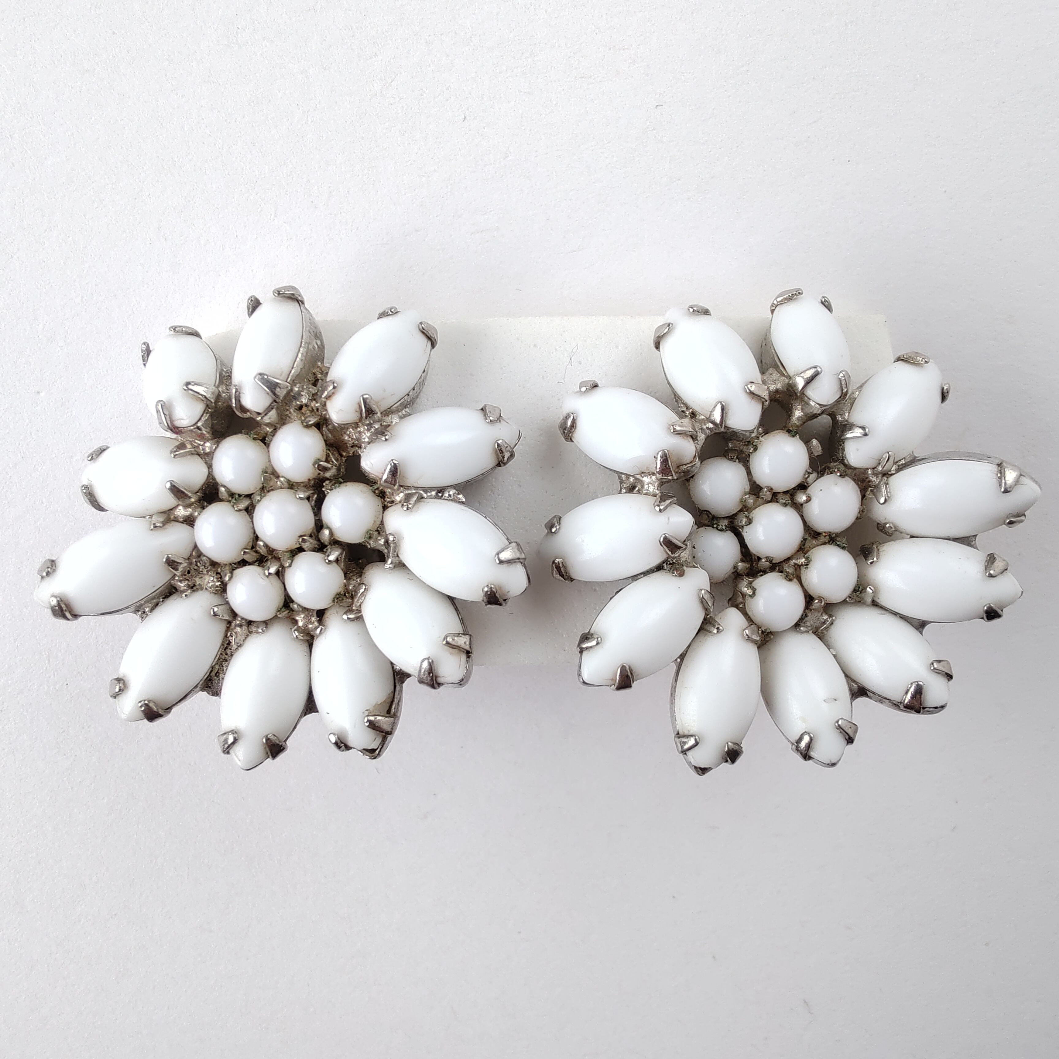 milk glass flower vintage earrings ヴィンテージイヤリング
