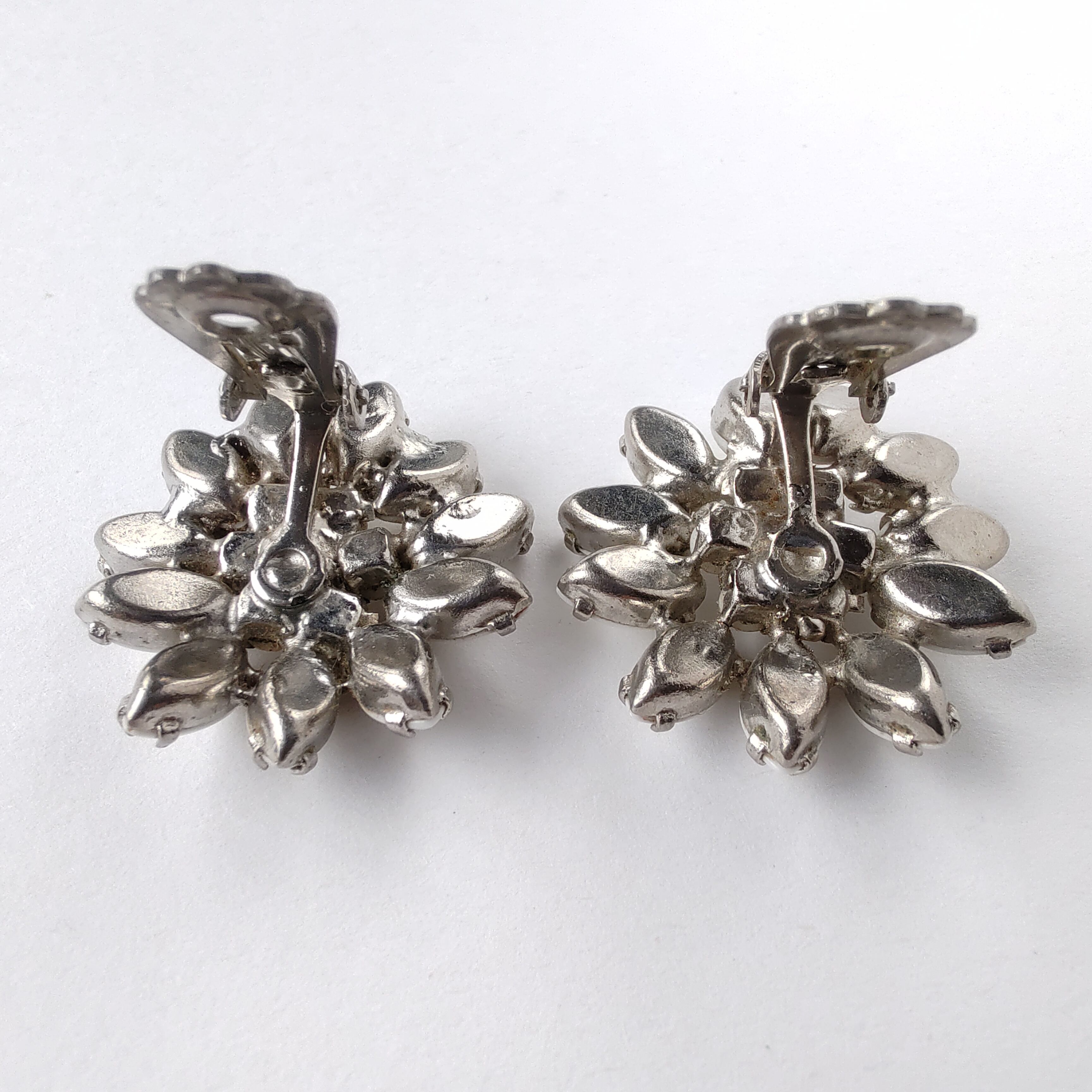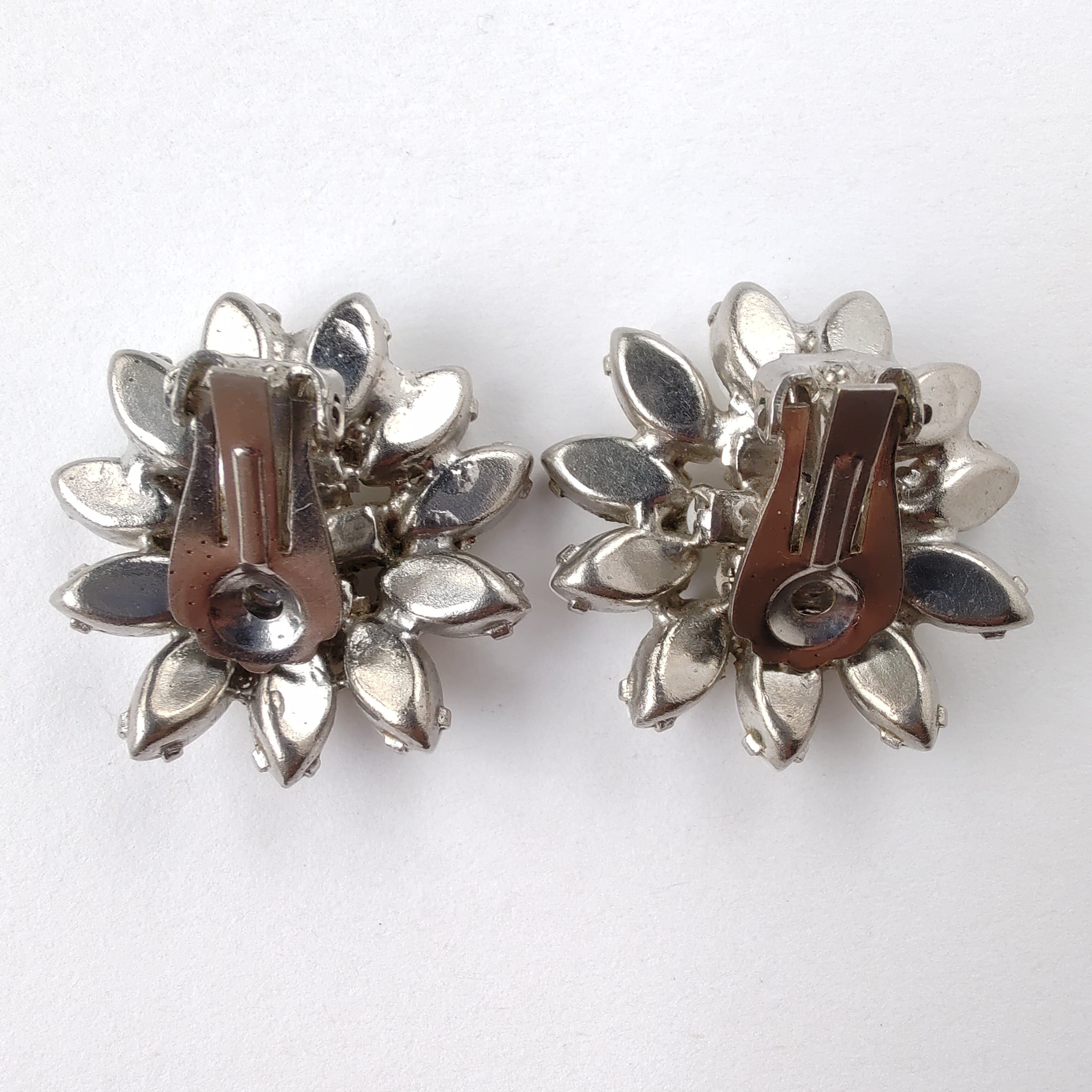 上部は内側、下部は外側に向けて動きがある様にデザインして付けられた花びらの向日葵の様なフラワーのミルクガラスのヴィンテージイヤリングです。