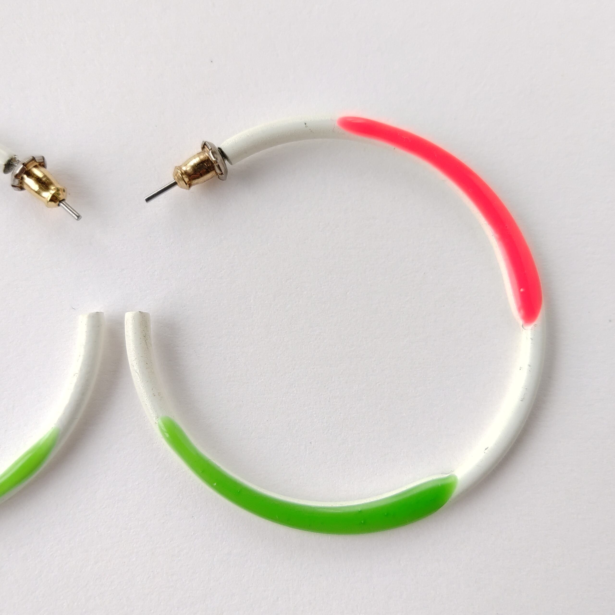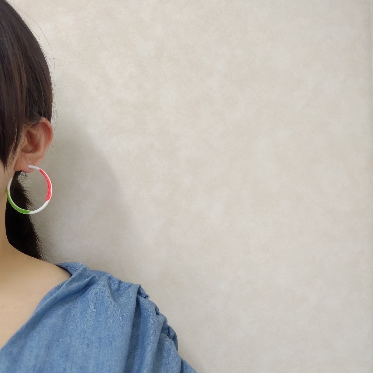 white fluorescent red green enamel hoop vintage piercedearrings ヴィンテージピアス