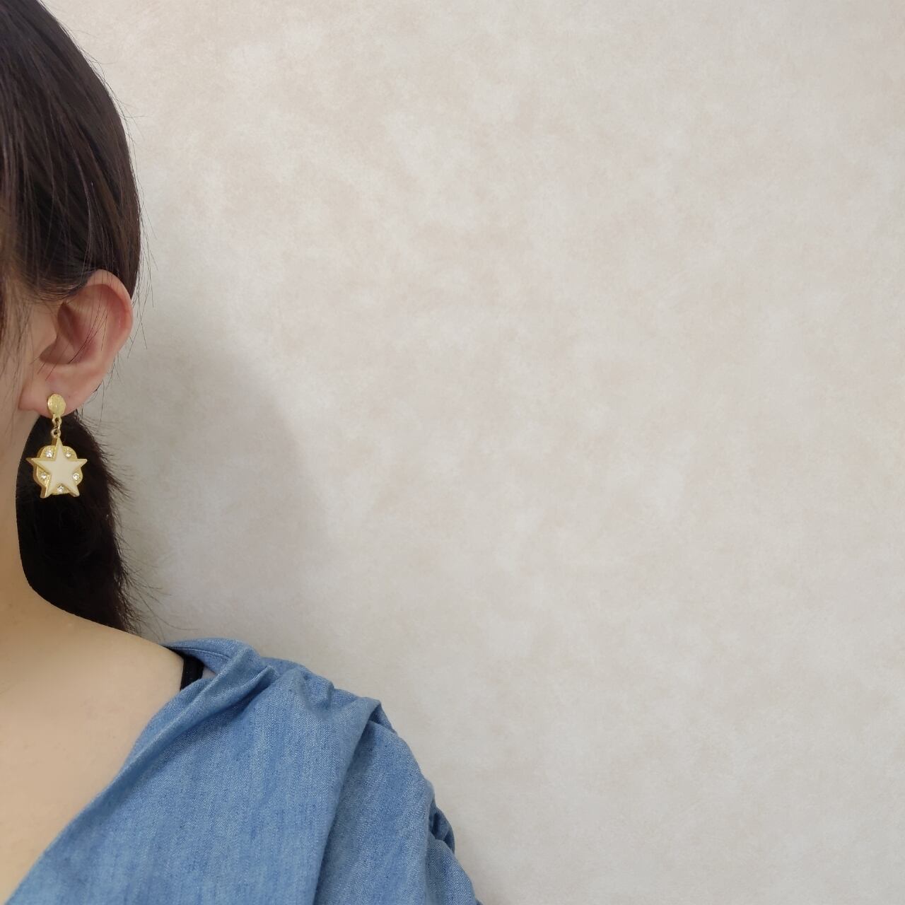 offwhite enamel star rhinestone dangle vintage piercedearrings ヴィンテージピアス