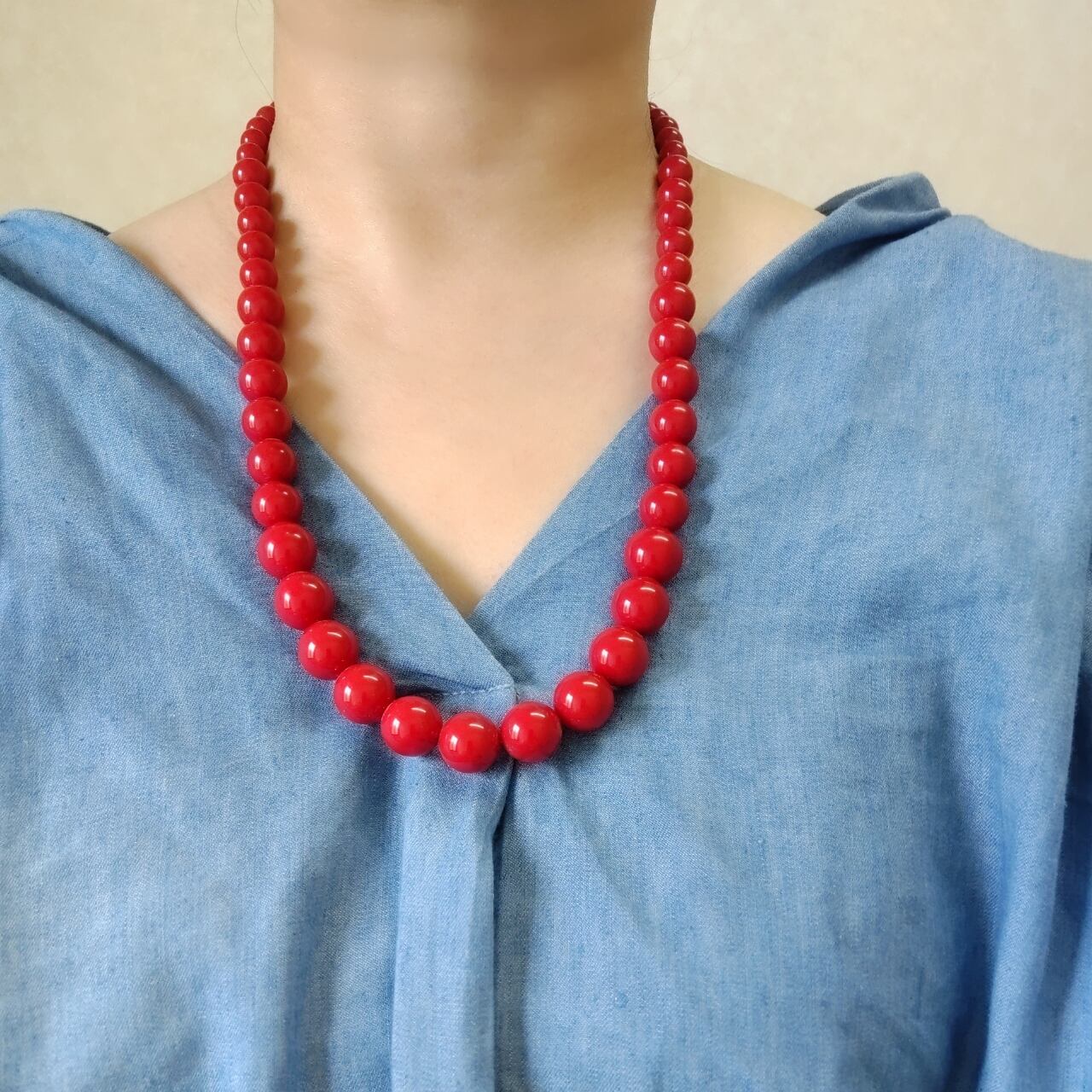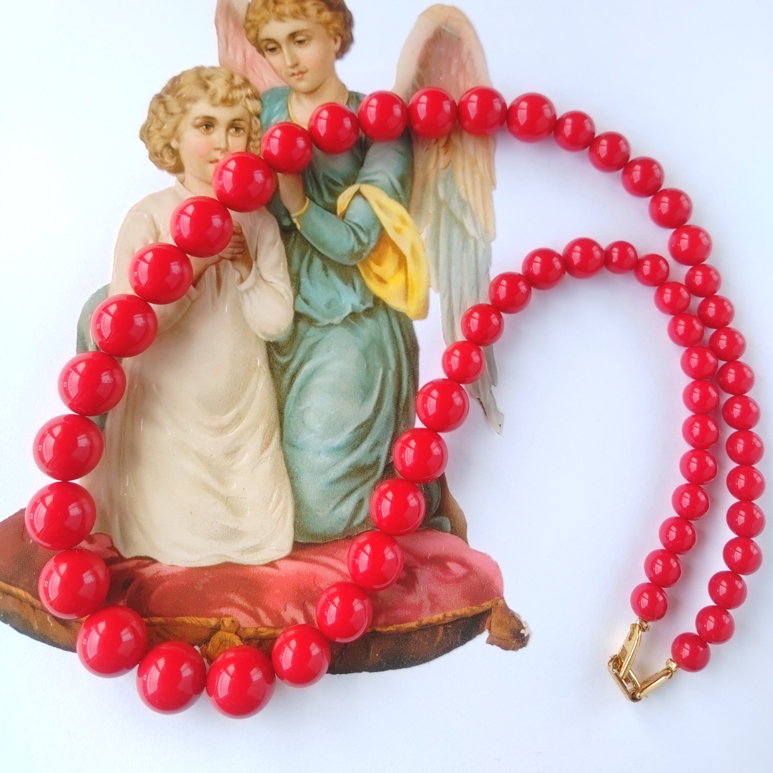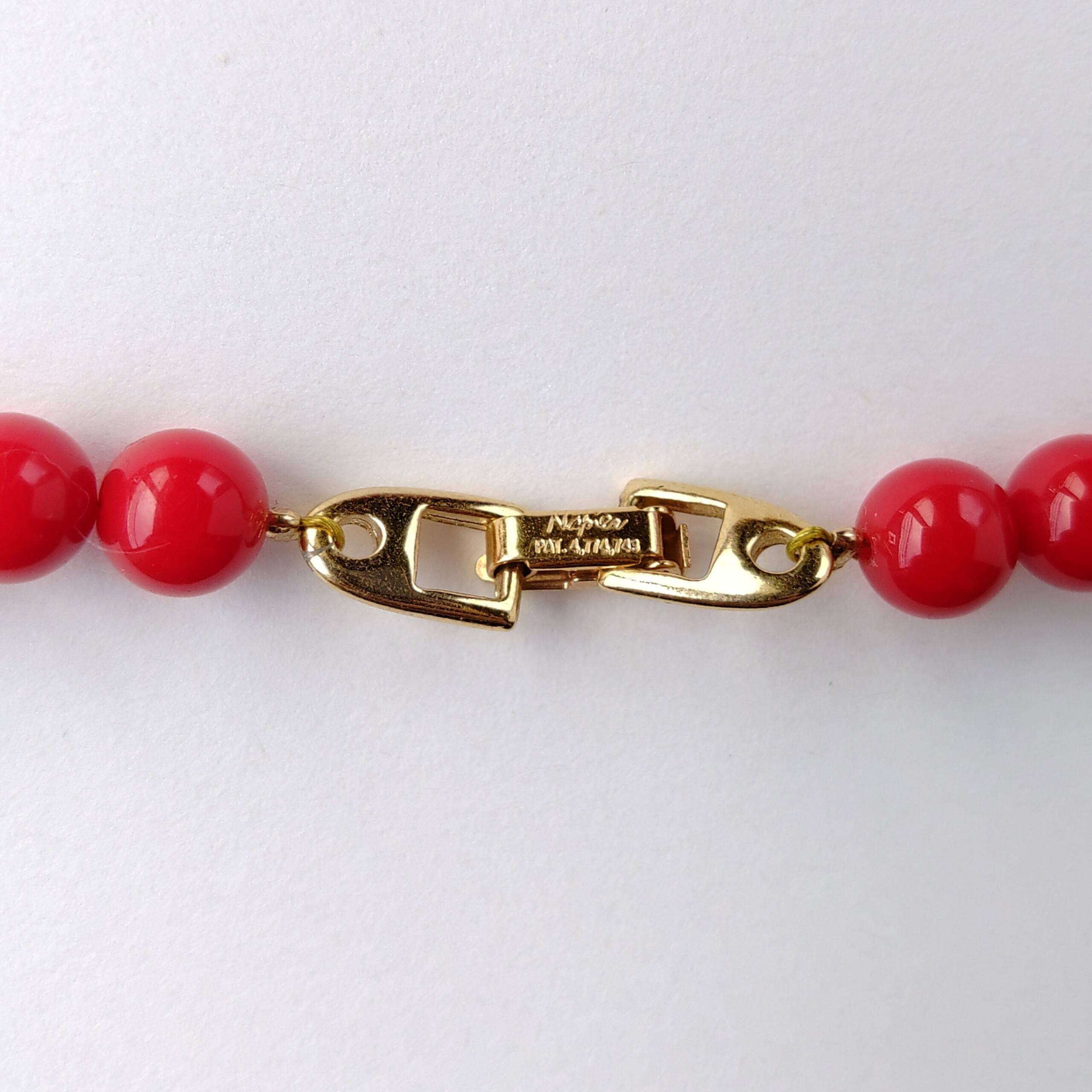 1875年アメリカのマサチューセッツで銀製の時計バンドを製作する会社を創業、第一次世界対戦後に社名を変更してアクセサリーを製作した老舗コスチュームジュエリーメーカーNAPIER(ネイピア)のレッドのボールビーズのヴィンテージネックレスです。