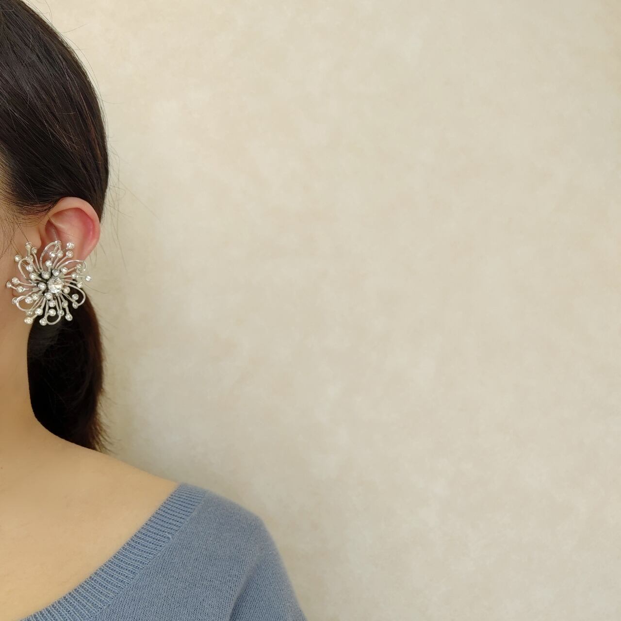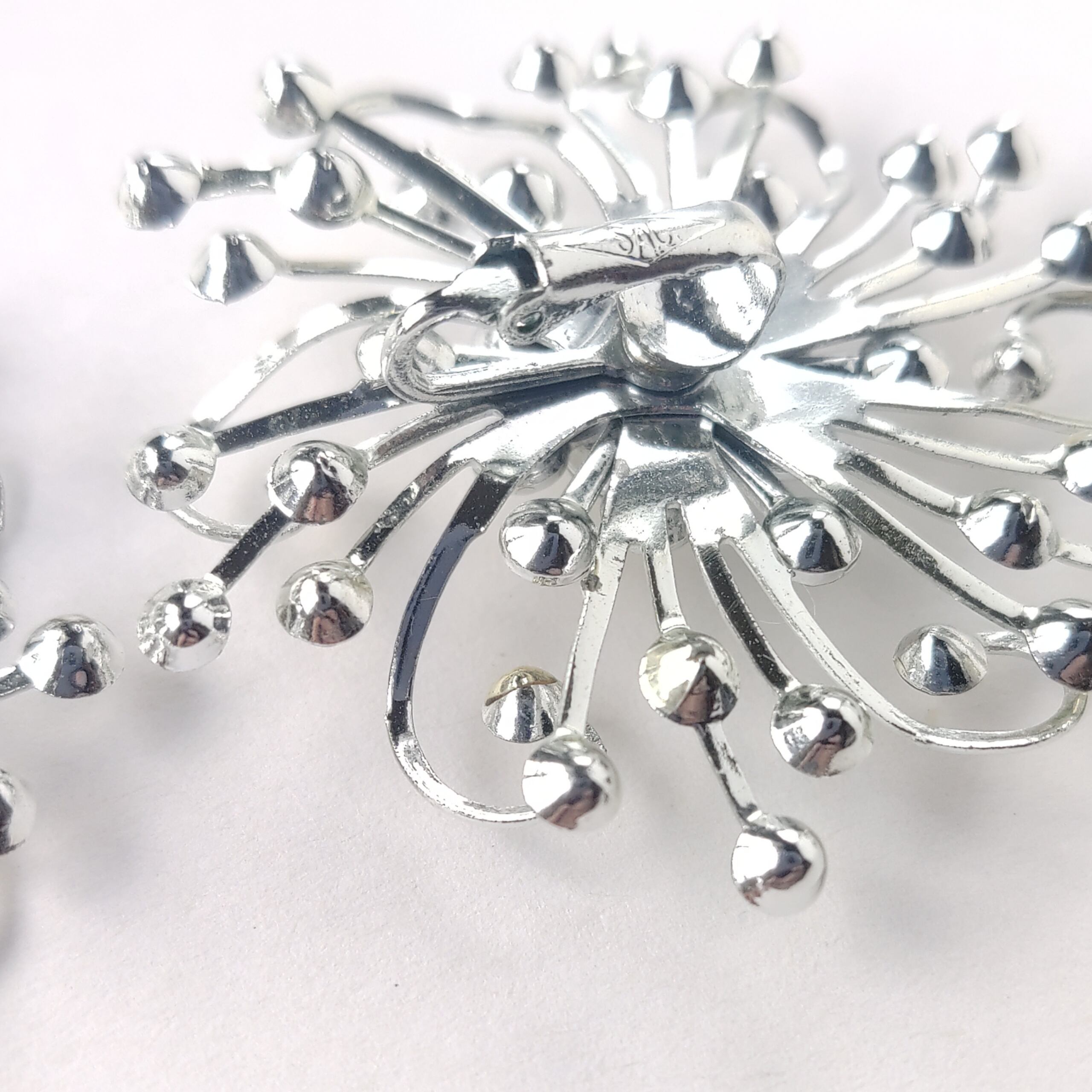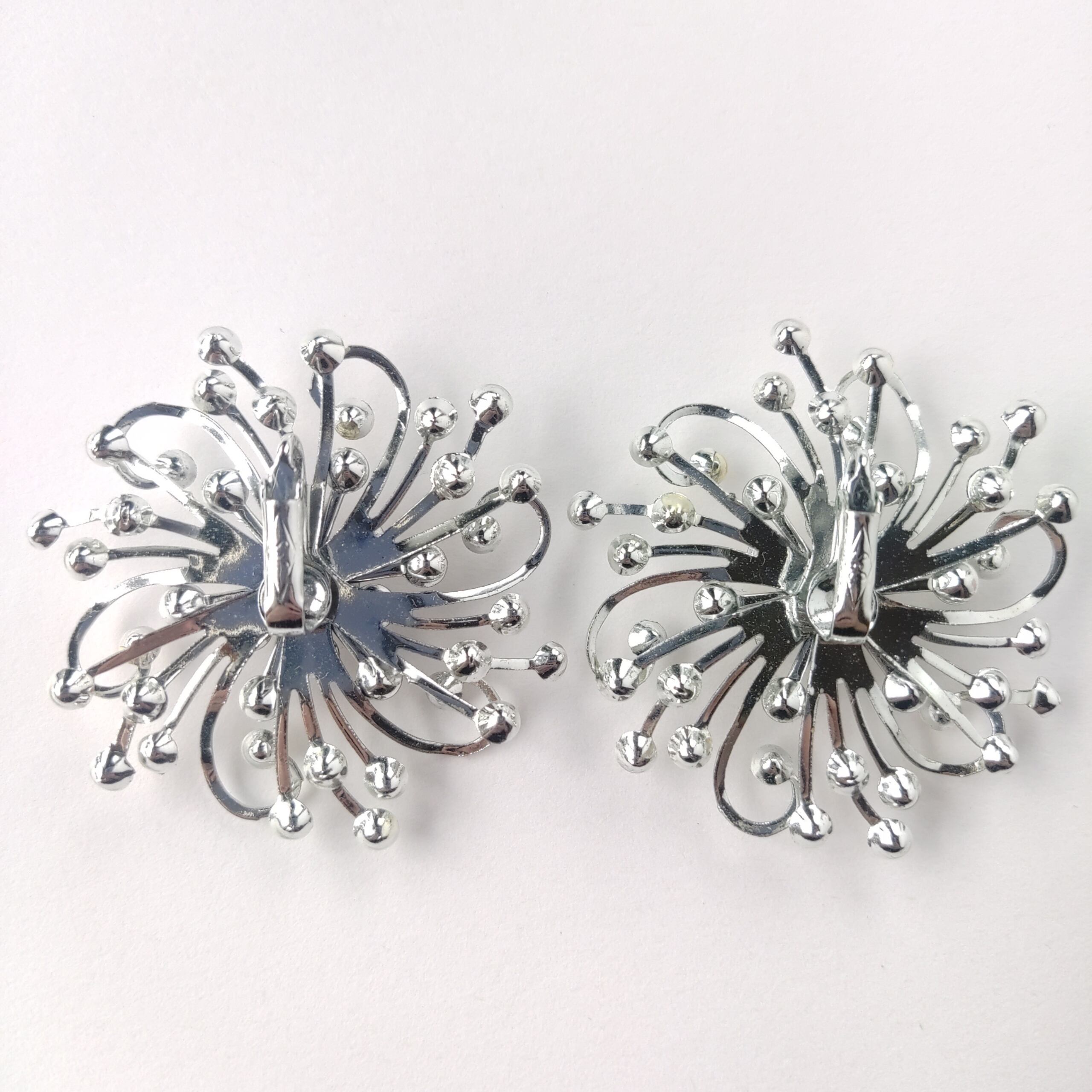 1949年にニューヨークで創業したSarah Coventry(サラコベントリー)の1958年に販売されたクリアラインストーンがふんだんに使用されたシルバーメタルのフラワーの中央にブリリアントカットのクリアラインストーンがあしらわれた大ぶりなデザインの“Star Dust”のヴィンテージイヤリングです。
