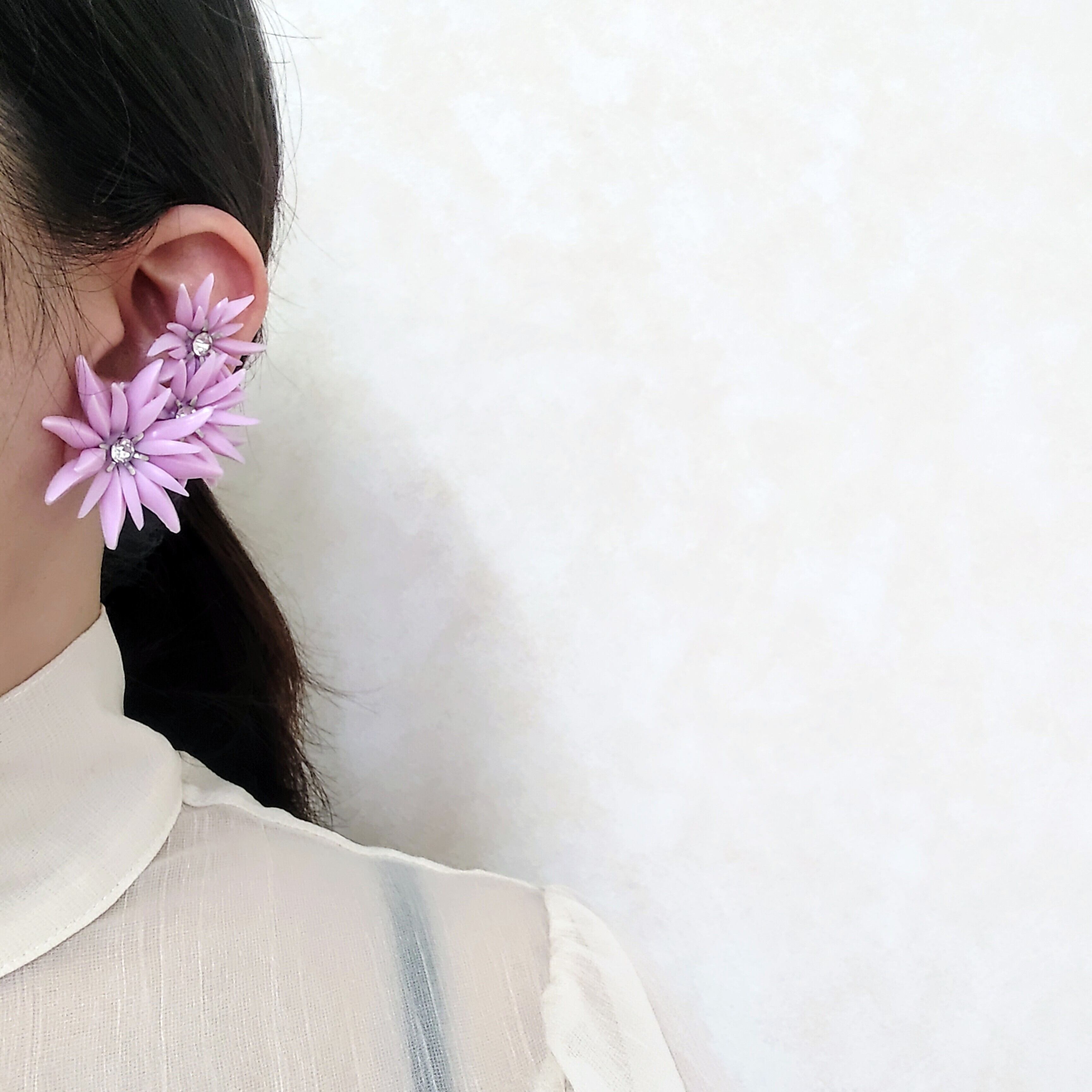 lavender soft plastic flower vintage earrings ヴィンテージイヤリング