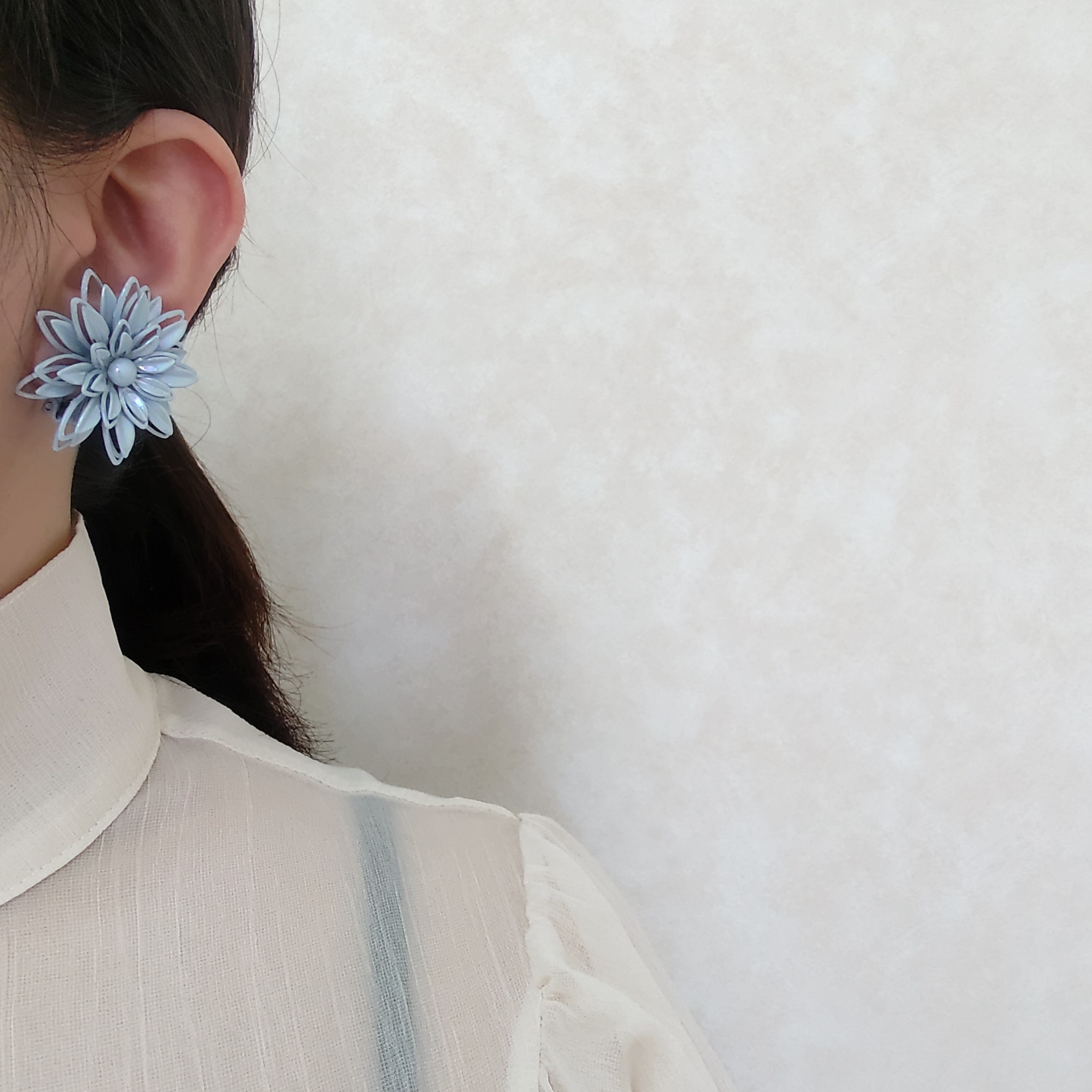 pale blue enamel flower vintage earrings ヴィンテージイヤリング