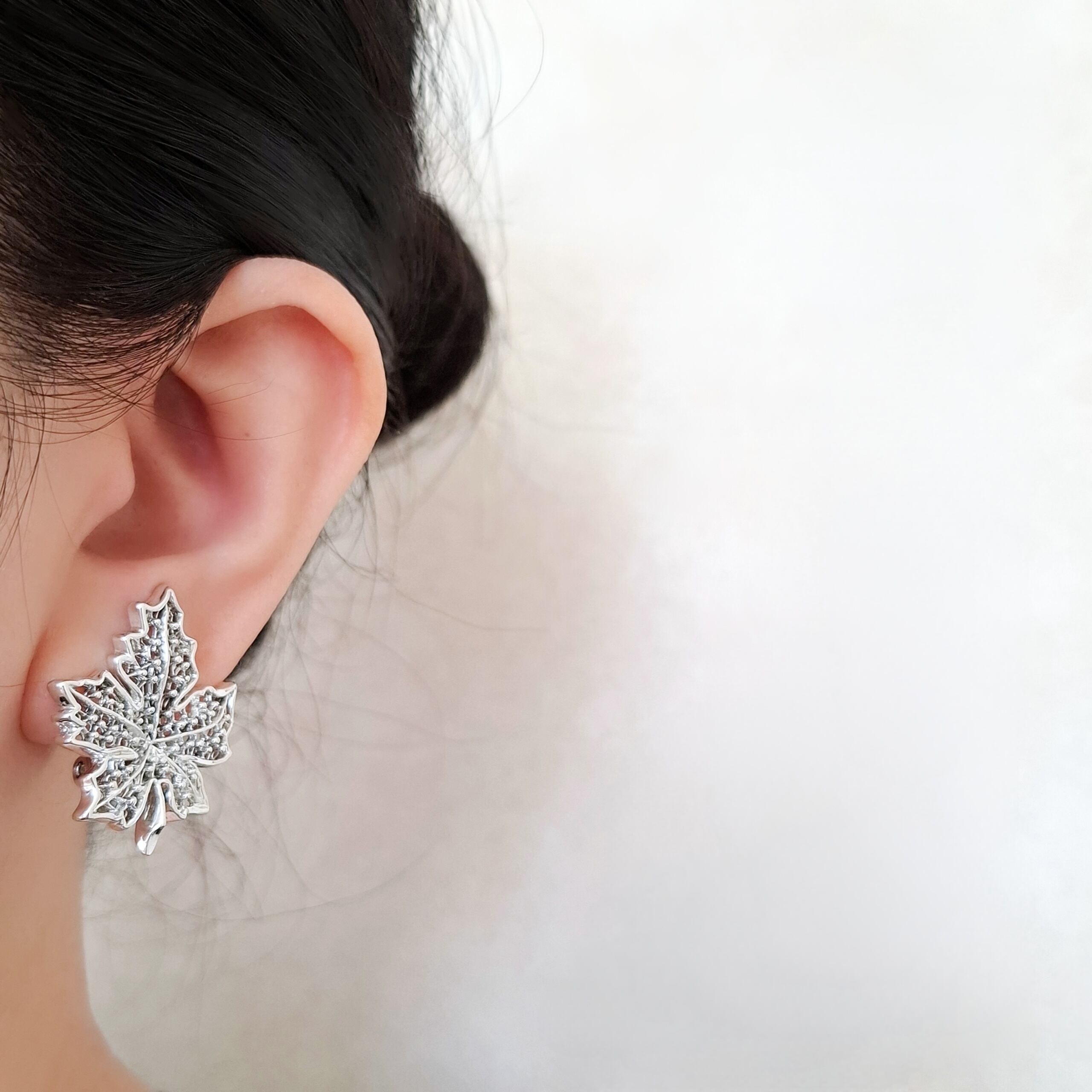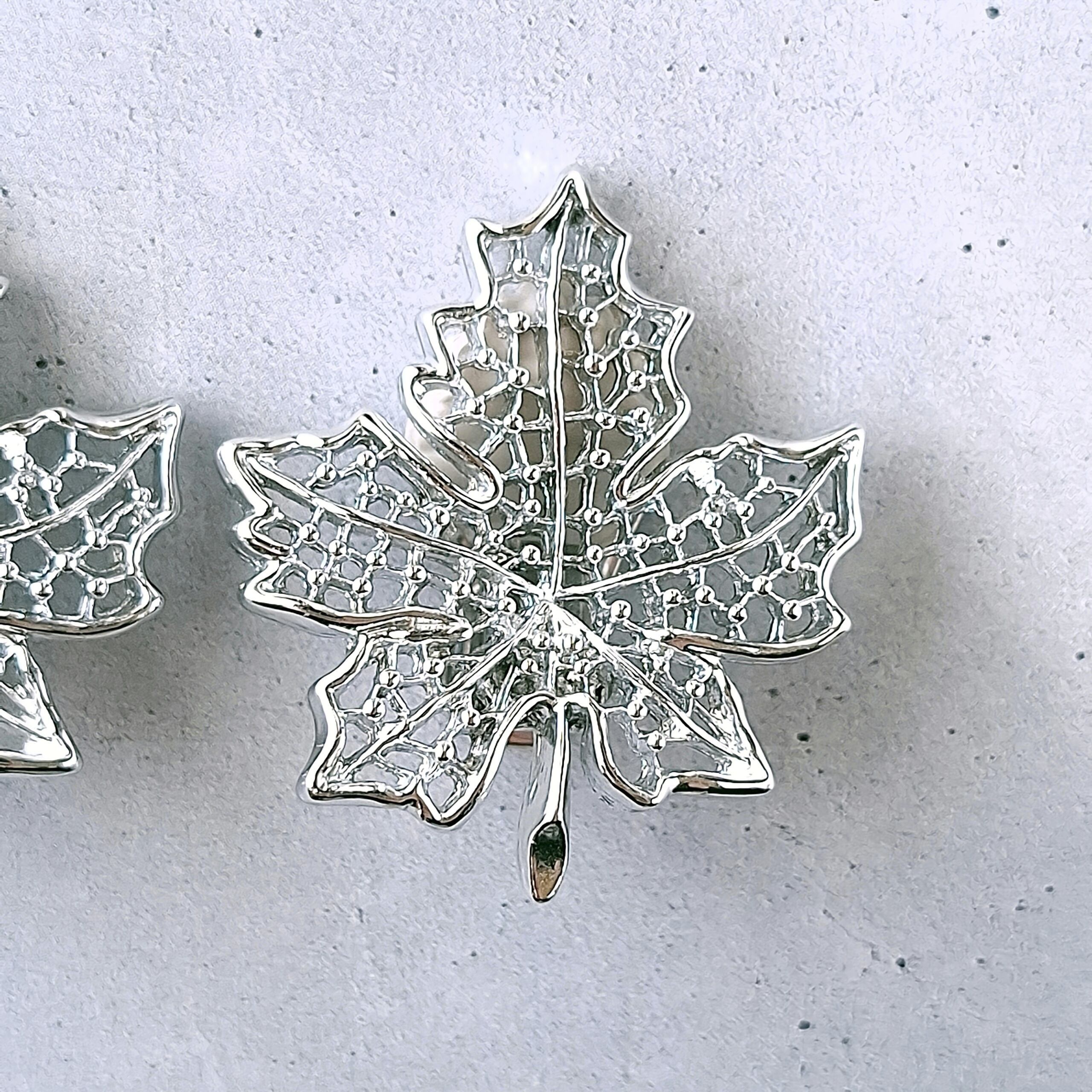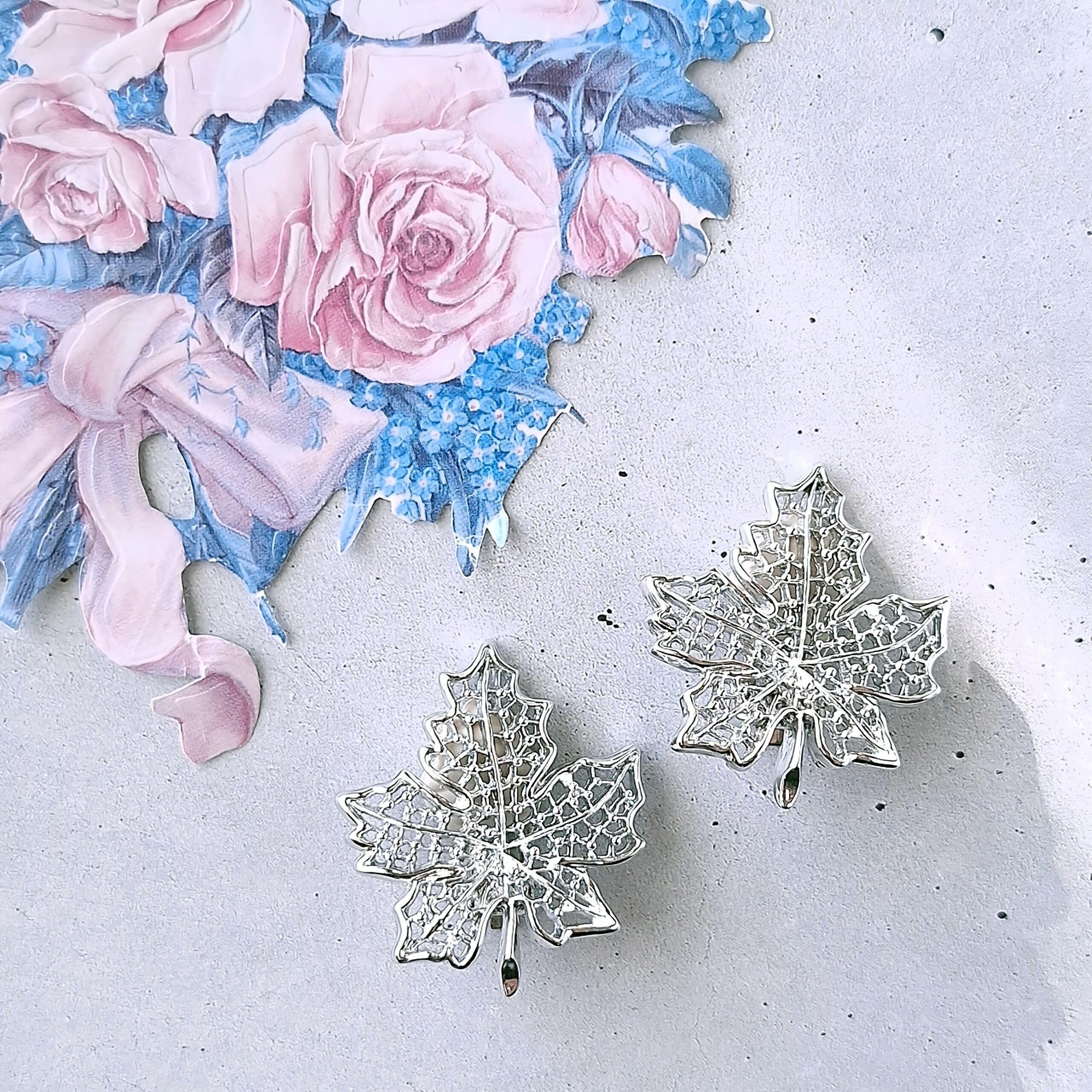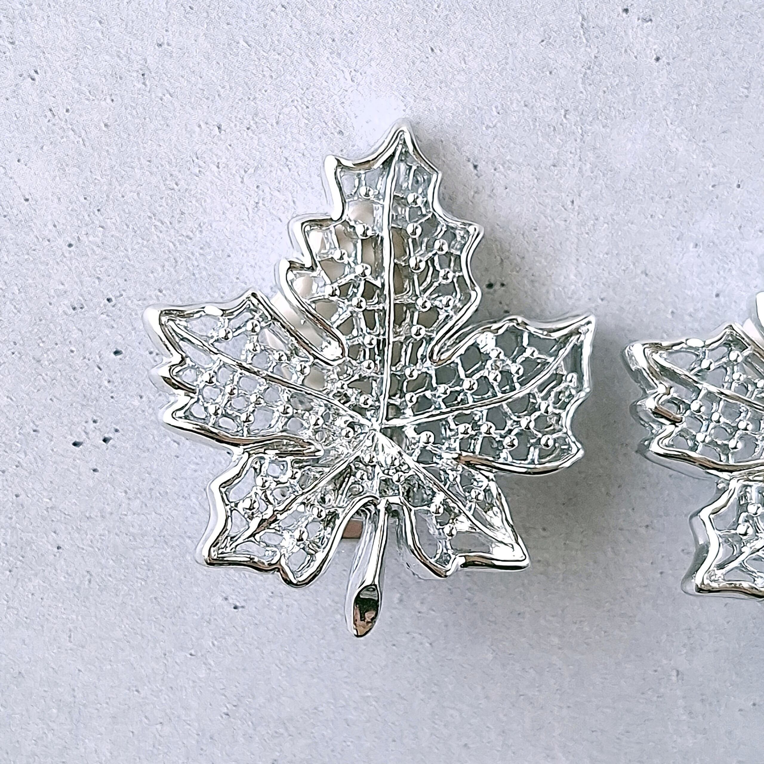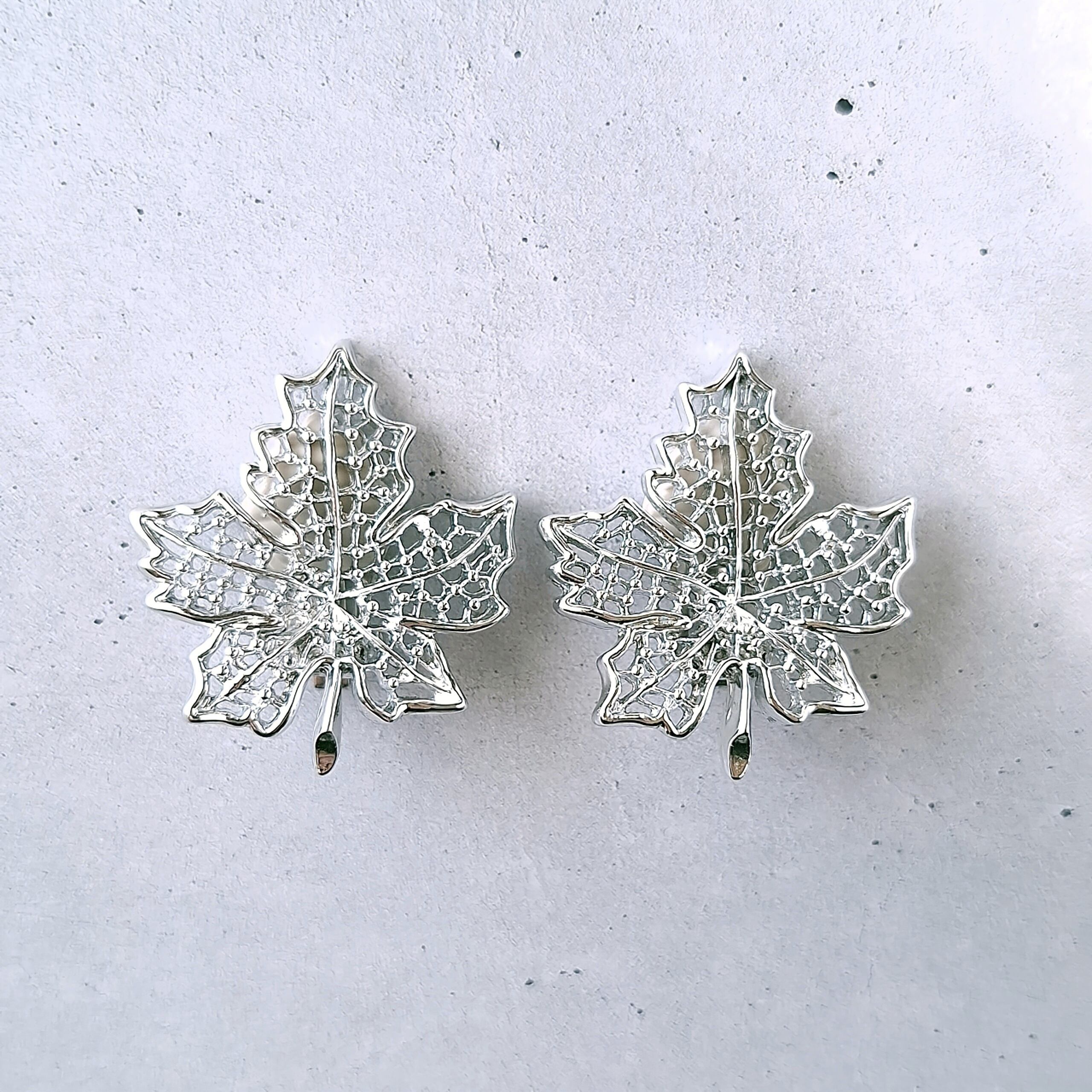 1949年にニューヨークで創業したSarah Coventry(サラコベントリー)の1966年に販売された透かしのシルバーメタルの楓の葉がデザインされた“Summer Frost”のヴィンテージイヤリングです。