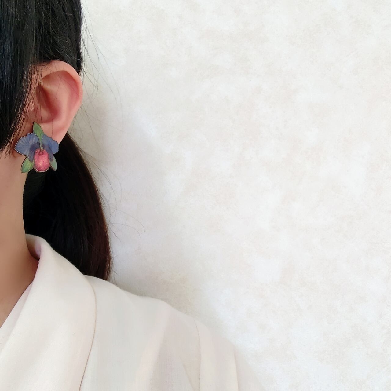 cloisonné purple pink green orchid vintage piercedearrings ヴィンテージピアス