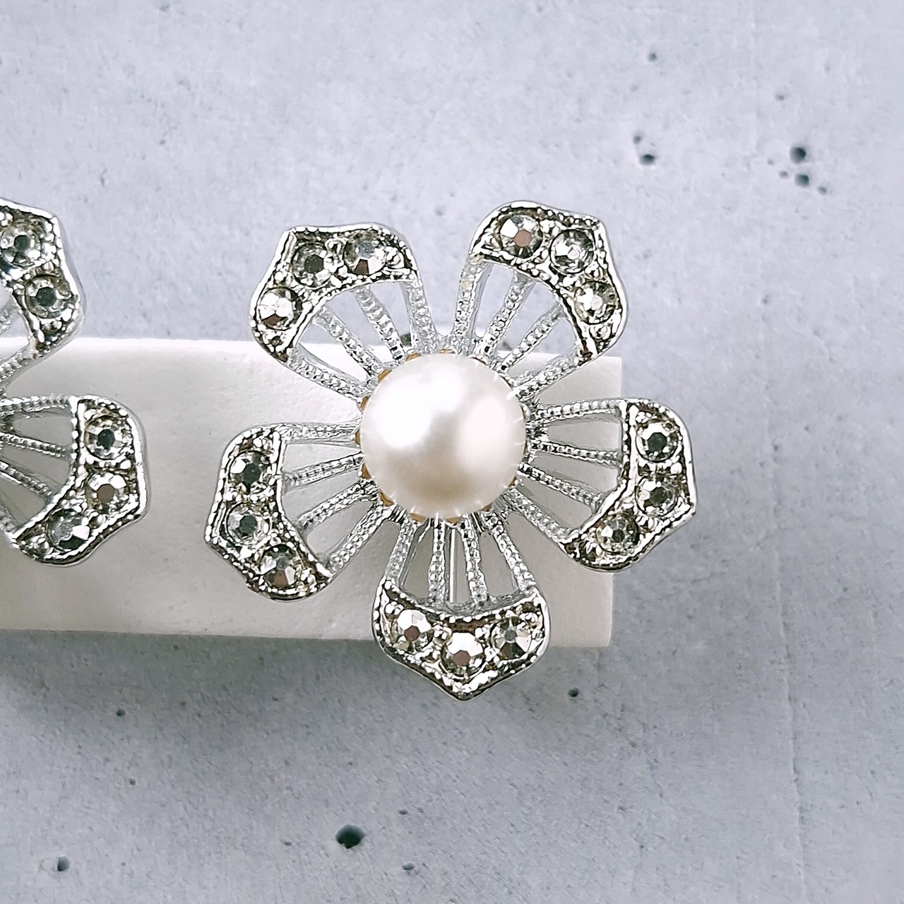 〔状態〕 目立つ程の物ではありませんが、フェイクパールが付けられている台座の間部分の接着剤に変色が見られます。