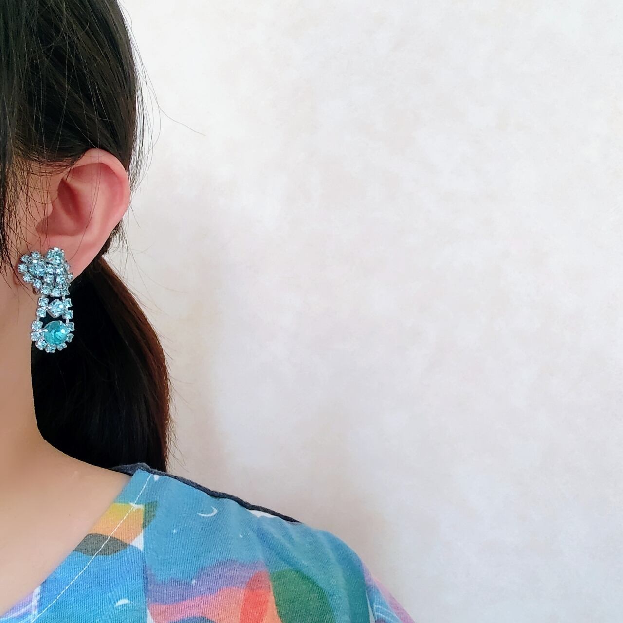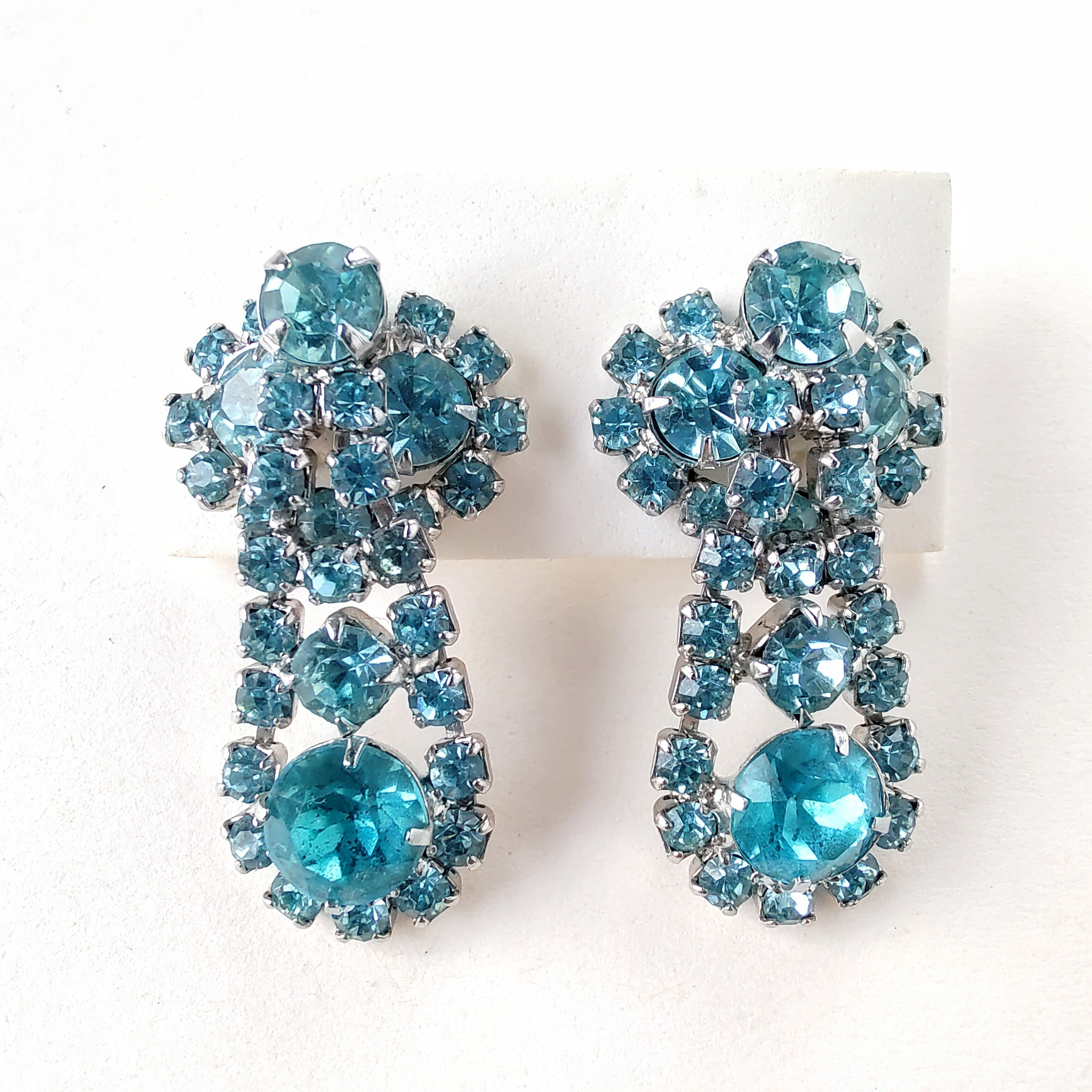 light blue rhinestone dangle vintage earrings ヴィンテージ イヤリング