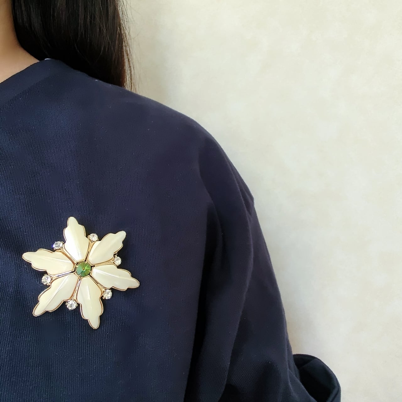 mather of pearl watermelon rivoli rhinestone flower vintage brooch ヴィンテージブローチ