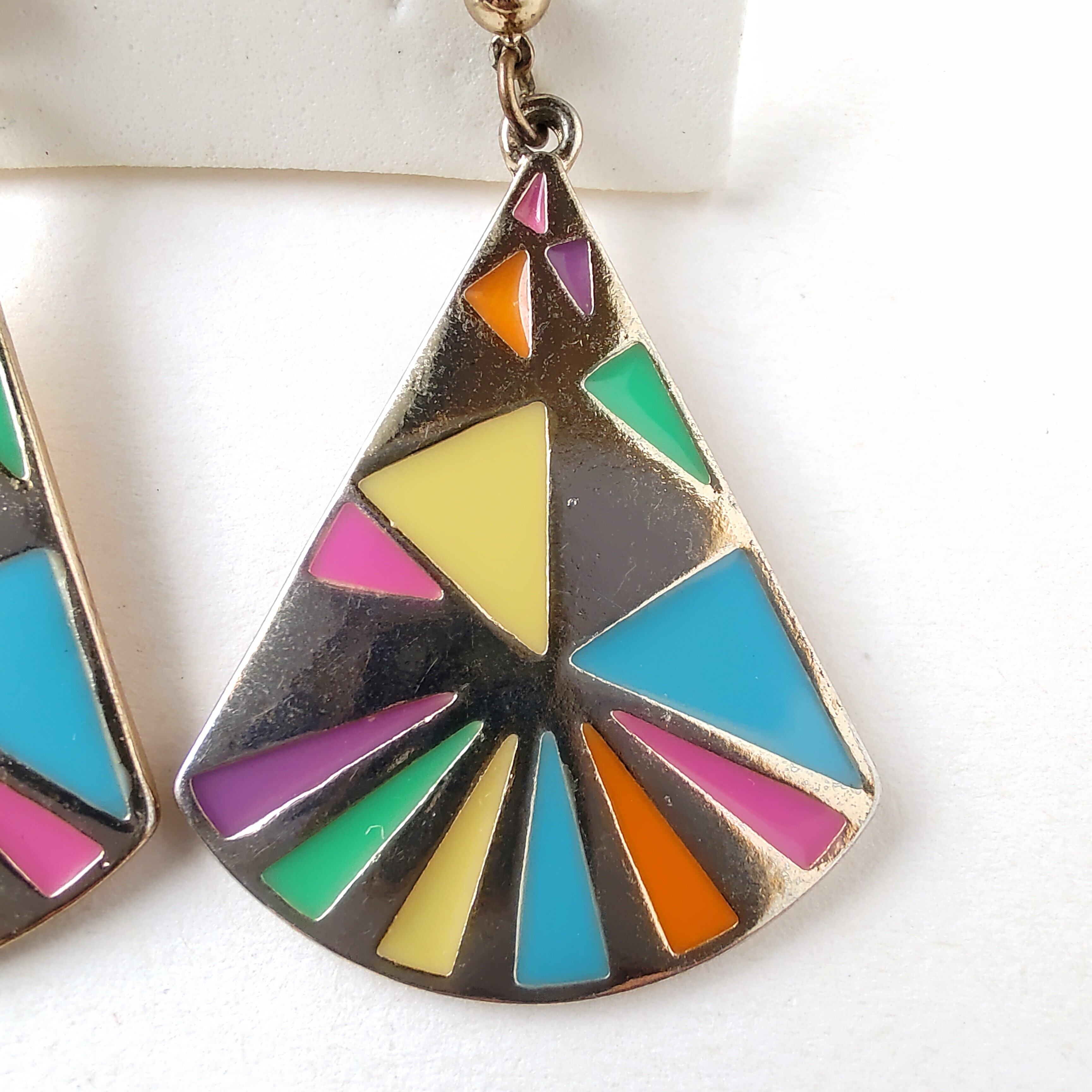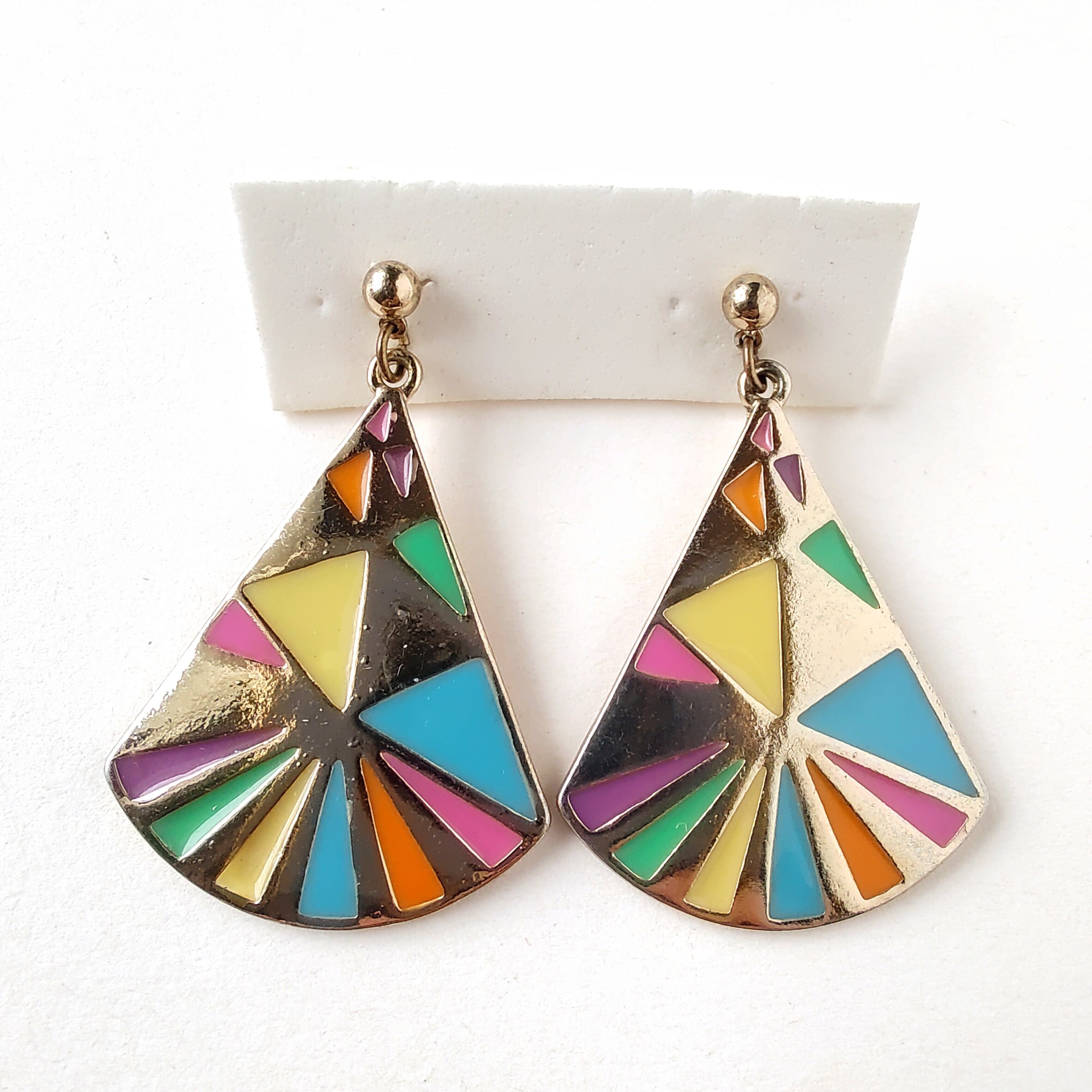colorful enamel fan shaped dangle vintage piercedearrings ヴィンテージピアス