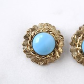turquoise blue plastic cabochon vintage earrings ヴィンテージイヤリング
