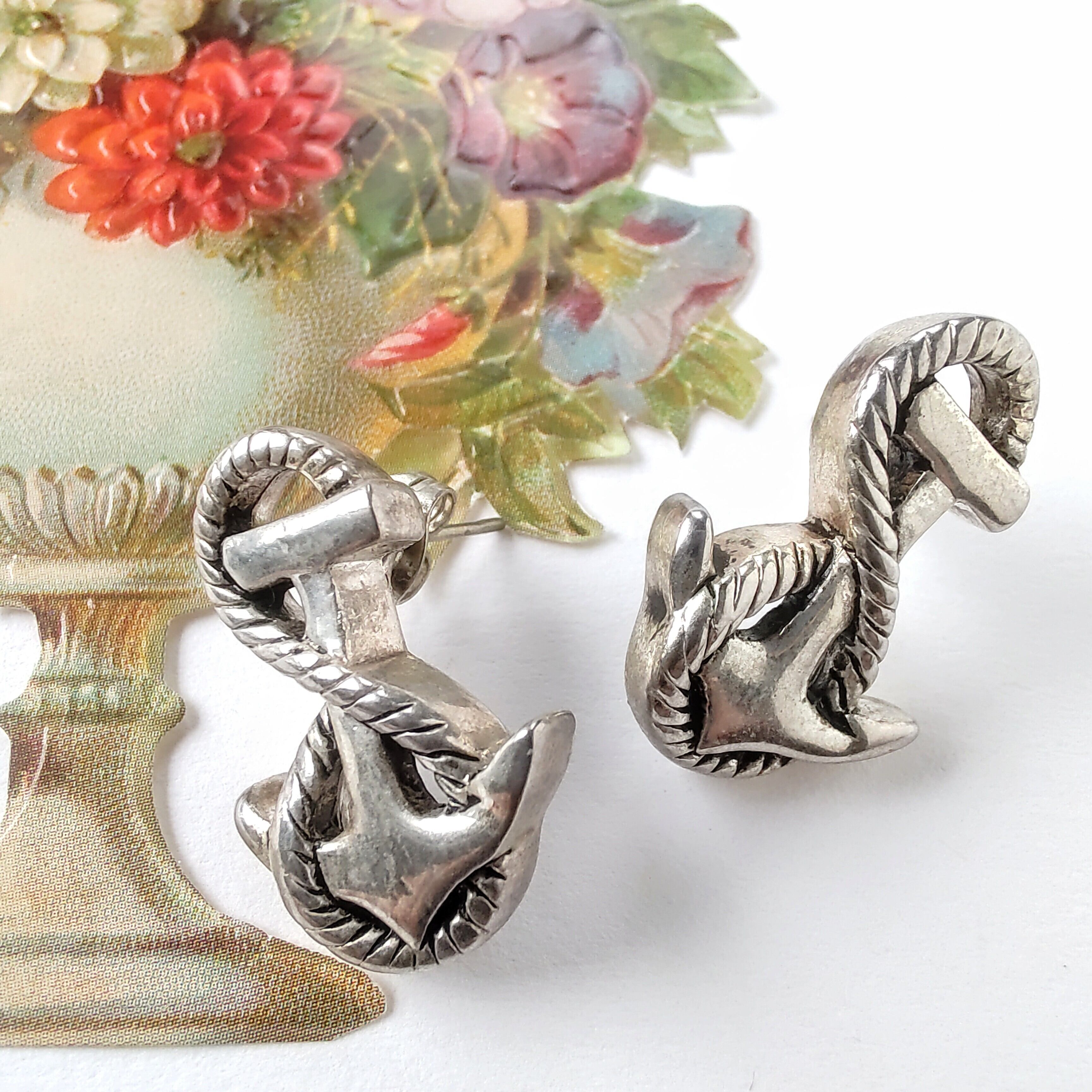 黒ずみ加工が施されたシルバーメタルのアンカーがデザインされたヴィンテージピアスです。