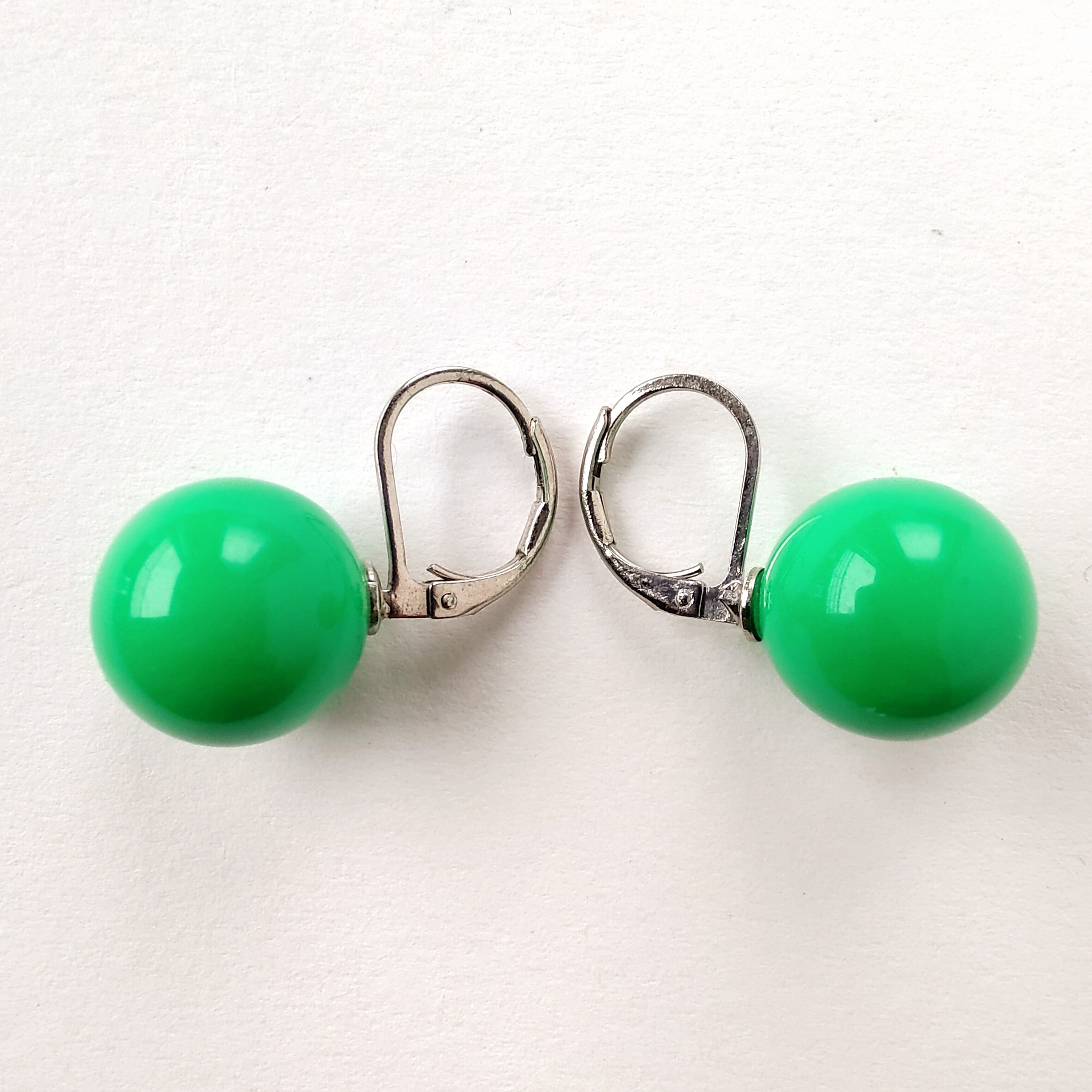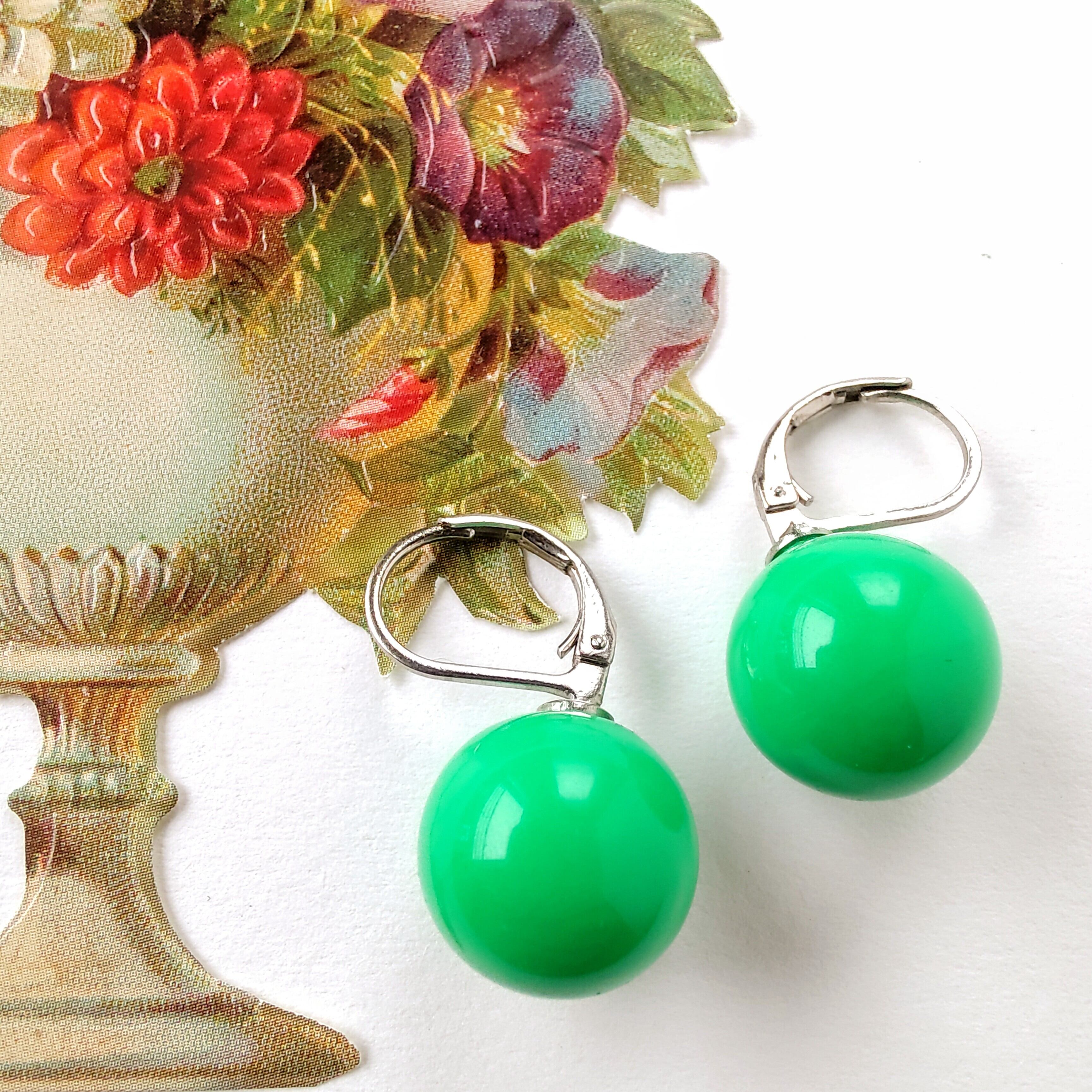 シルバーメタルのフレンチフックにグリーンのプラスチックボールが付けられたヴィンテージピアスです。