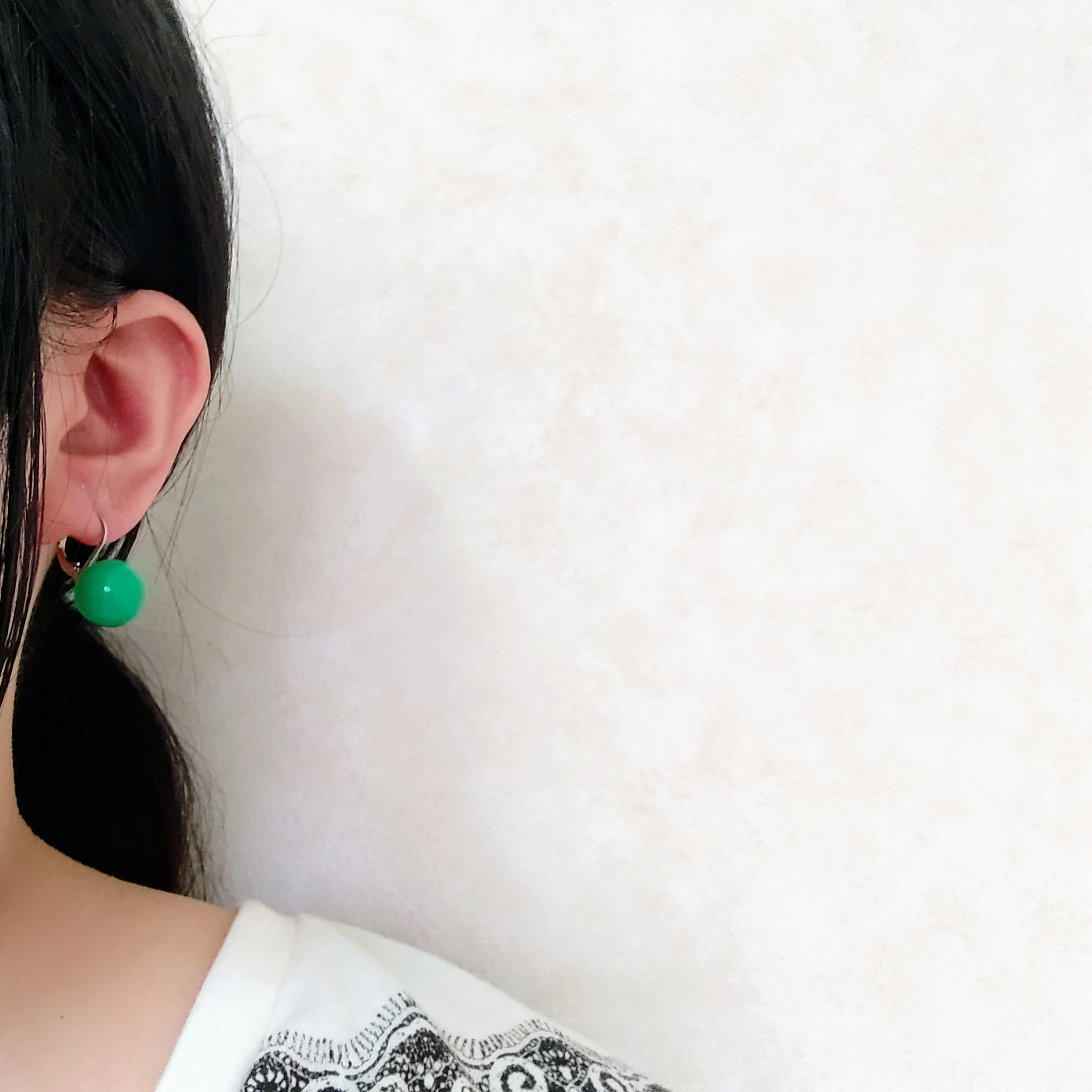 green plastic ball vintage pierced earrings ヴィンテージピアス