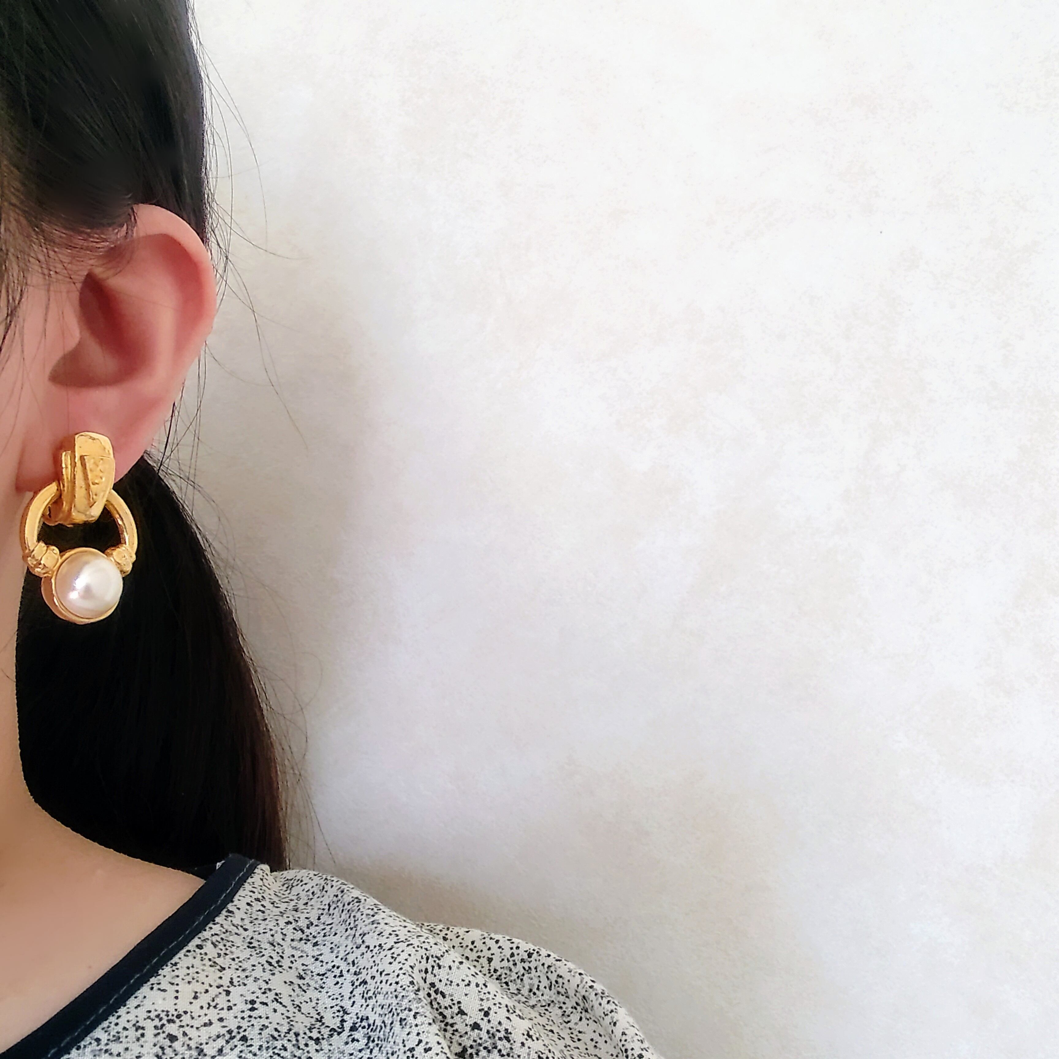faux pearl doorknocker dangle vintage earrings ヴィンテージイヤリング