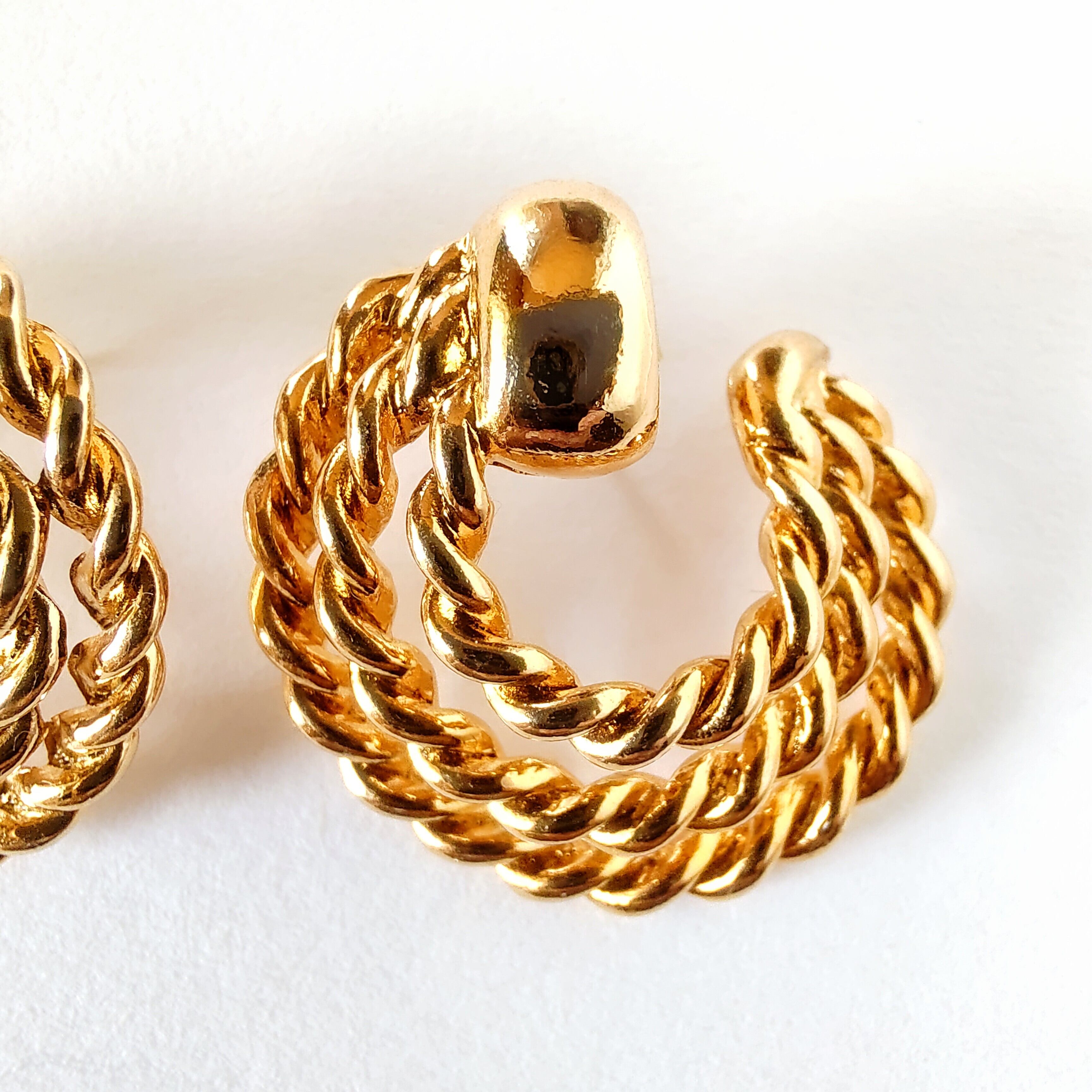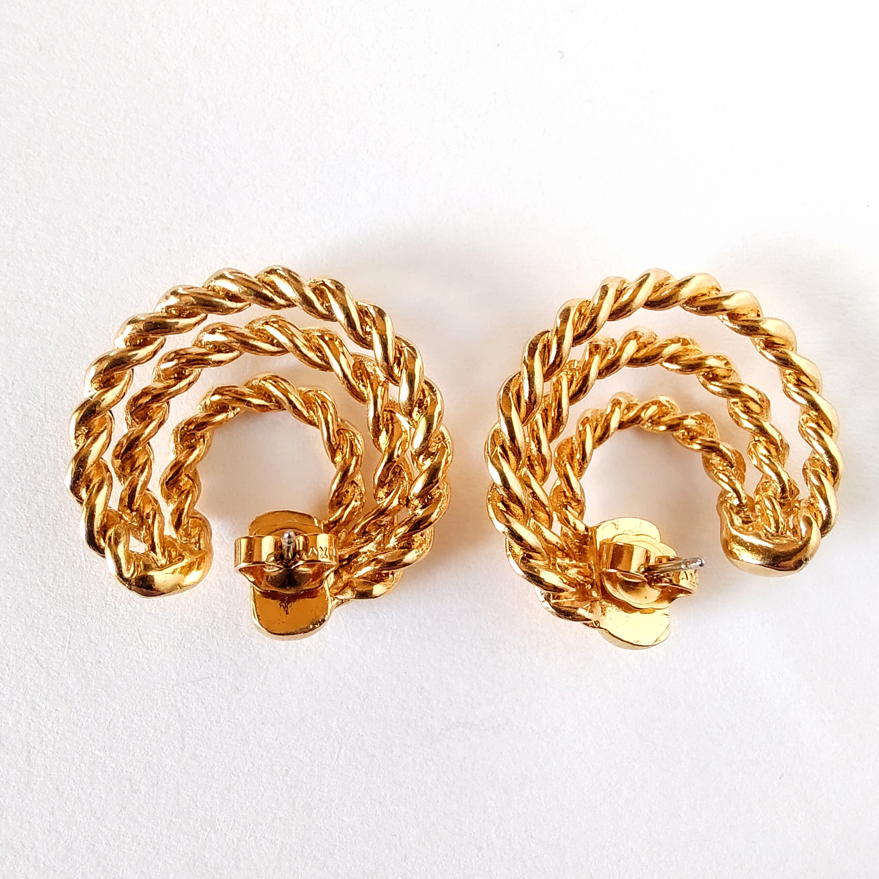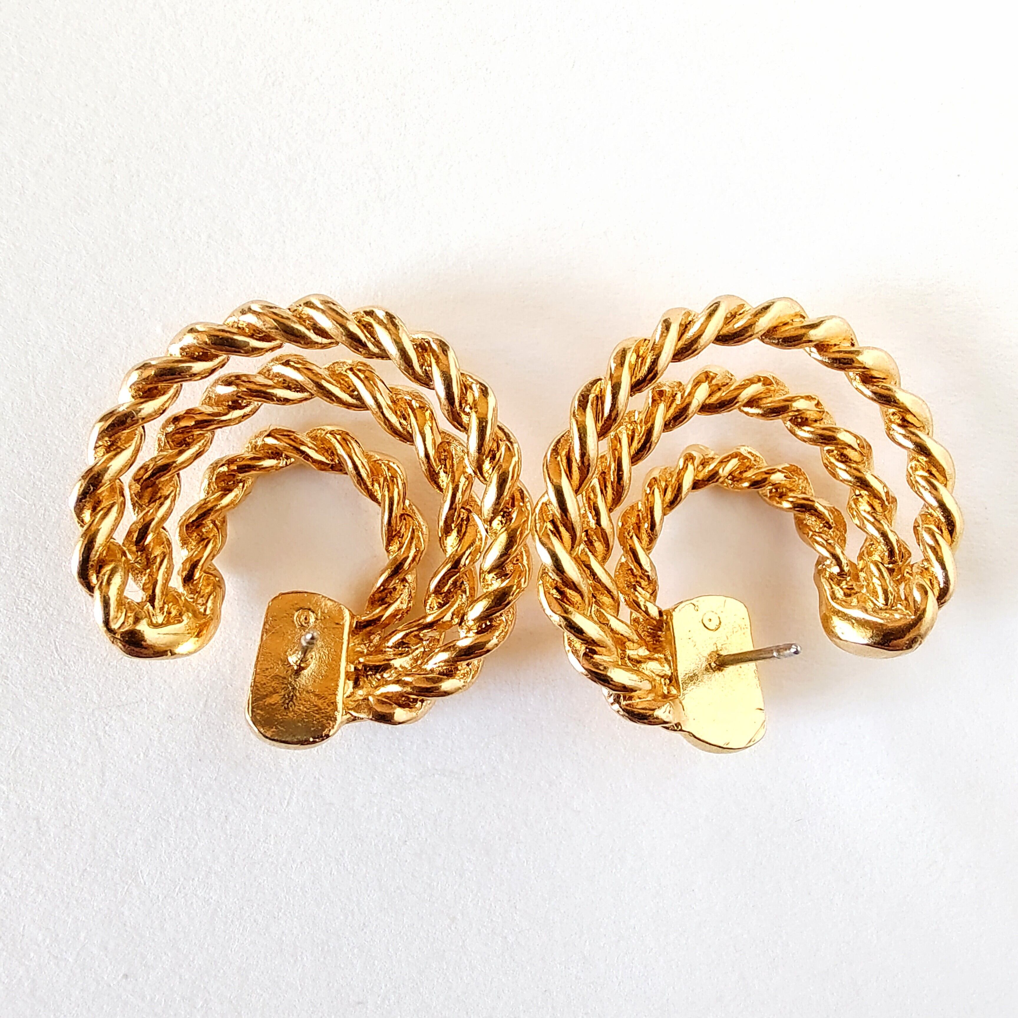 1886年アメリカのニューヨークにて小さな香水会社を創業、1971年に本格的にコスチュームジュエリーの製作を開始したAvon(エイボン)の1992年に販売された“Golden Braid”のゴールドメタルの3本のロープがカールしたデザインのヴィンテージピアスです。