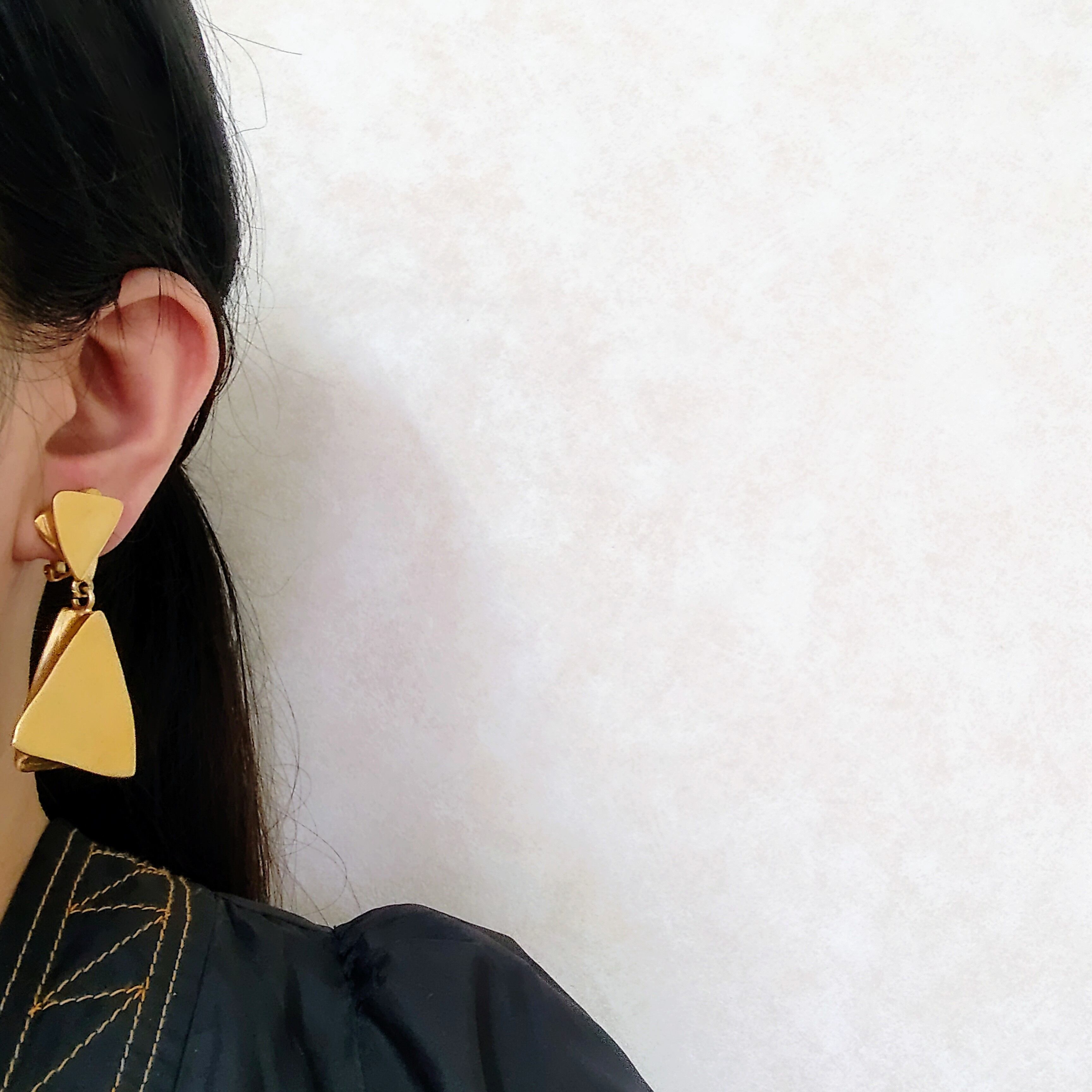gold two triangle dangle vintage earrings ヴィンテージイヤリング