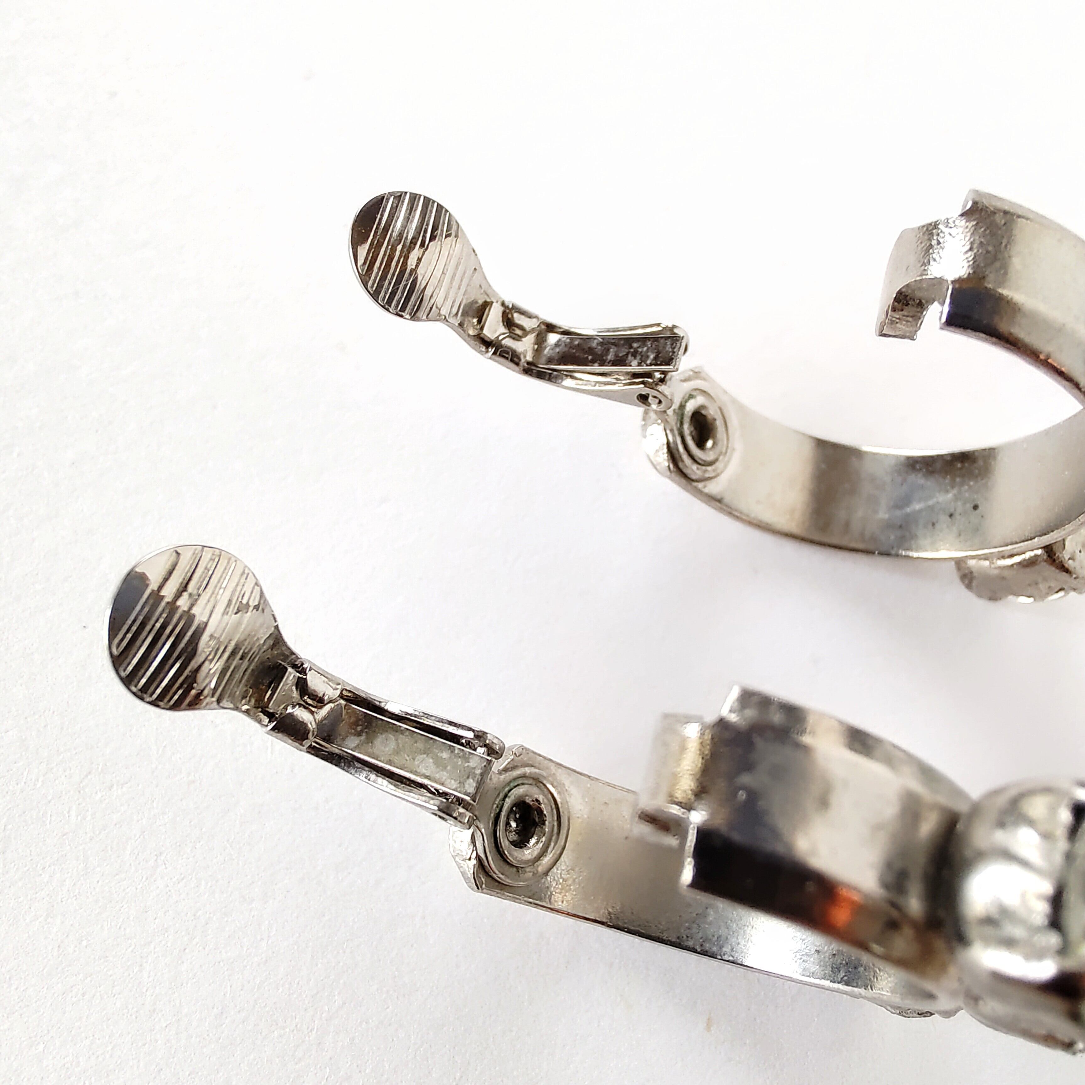 silver hoop clear rhinestone vintage earrings ヴィンテージイヤリング