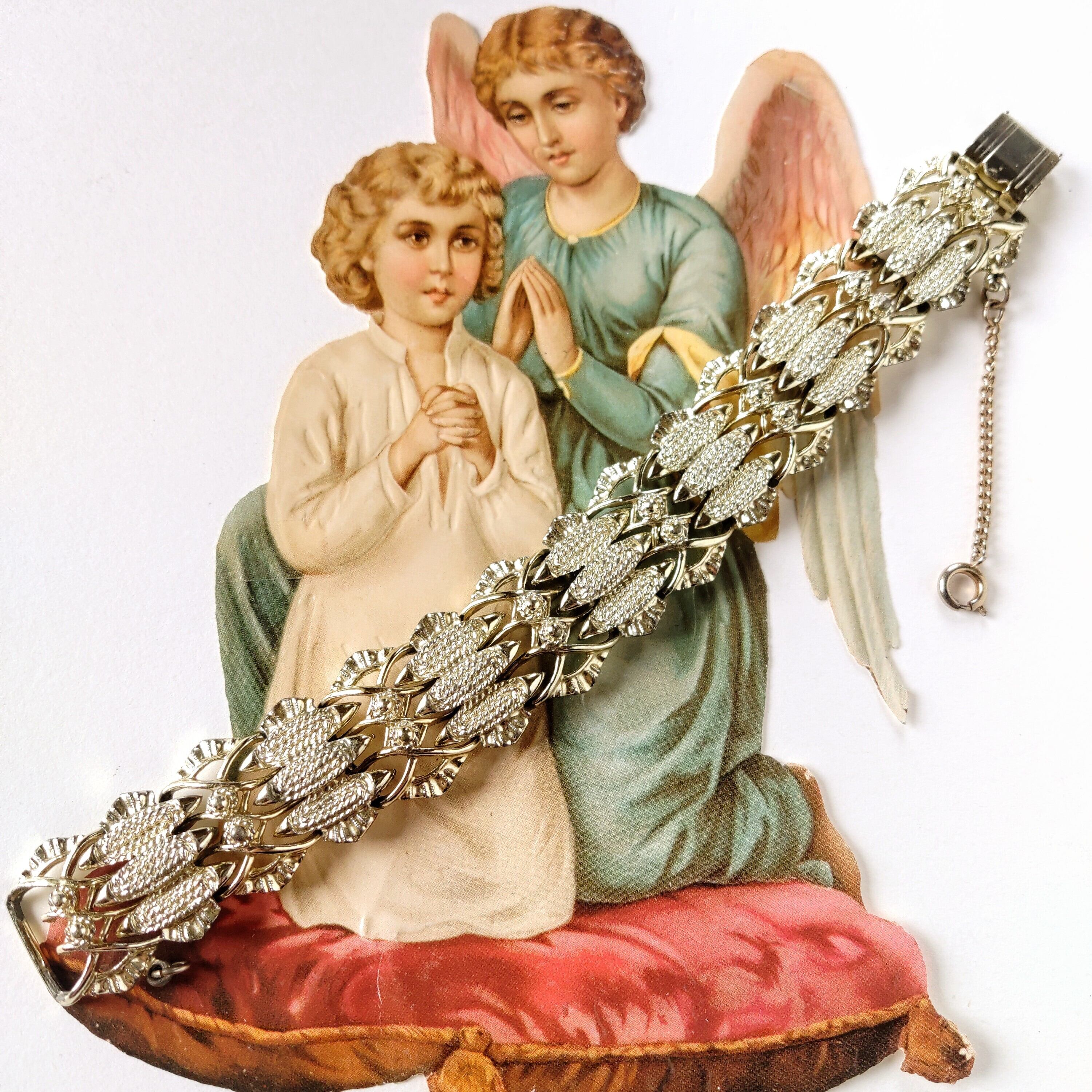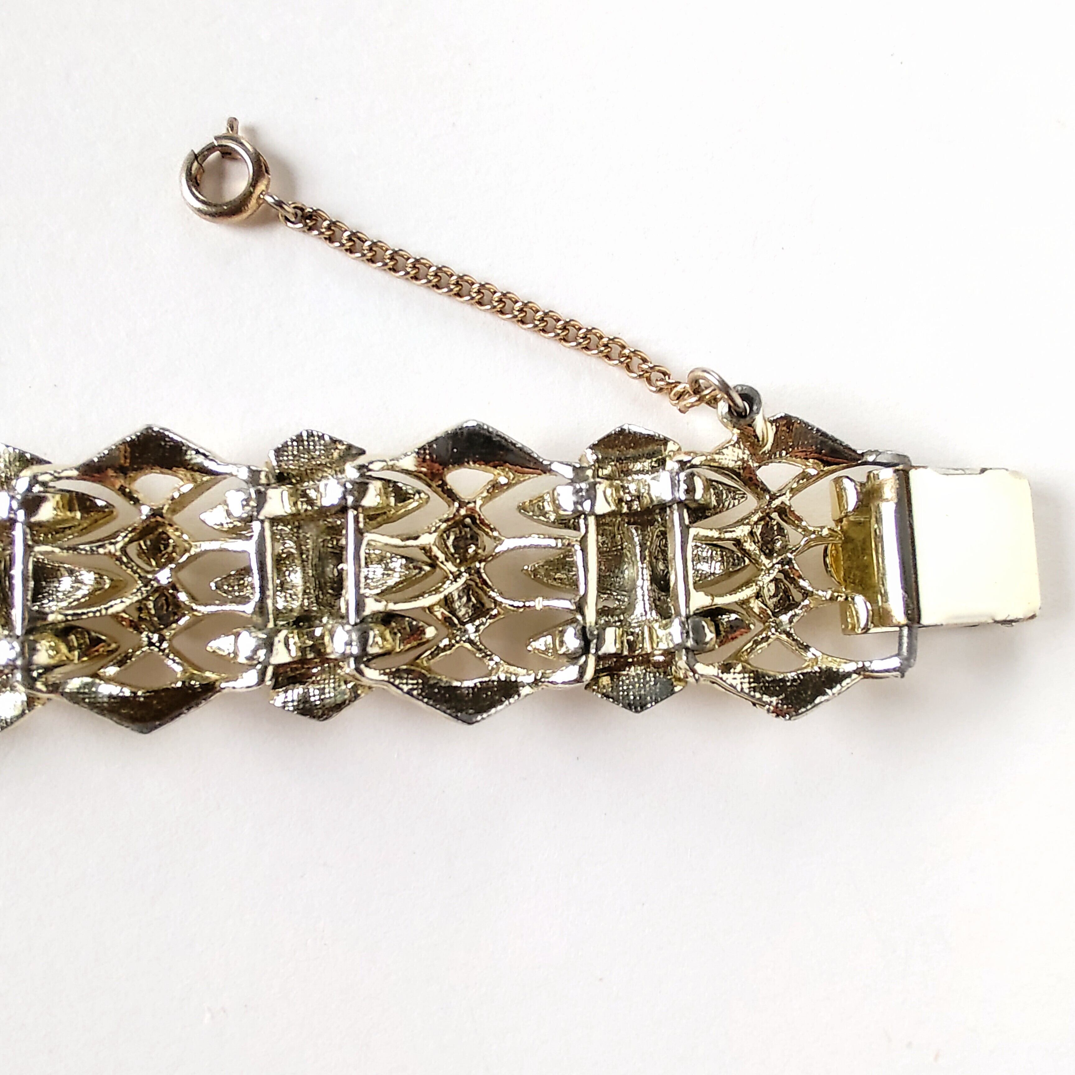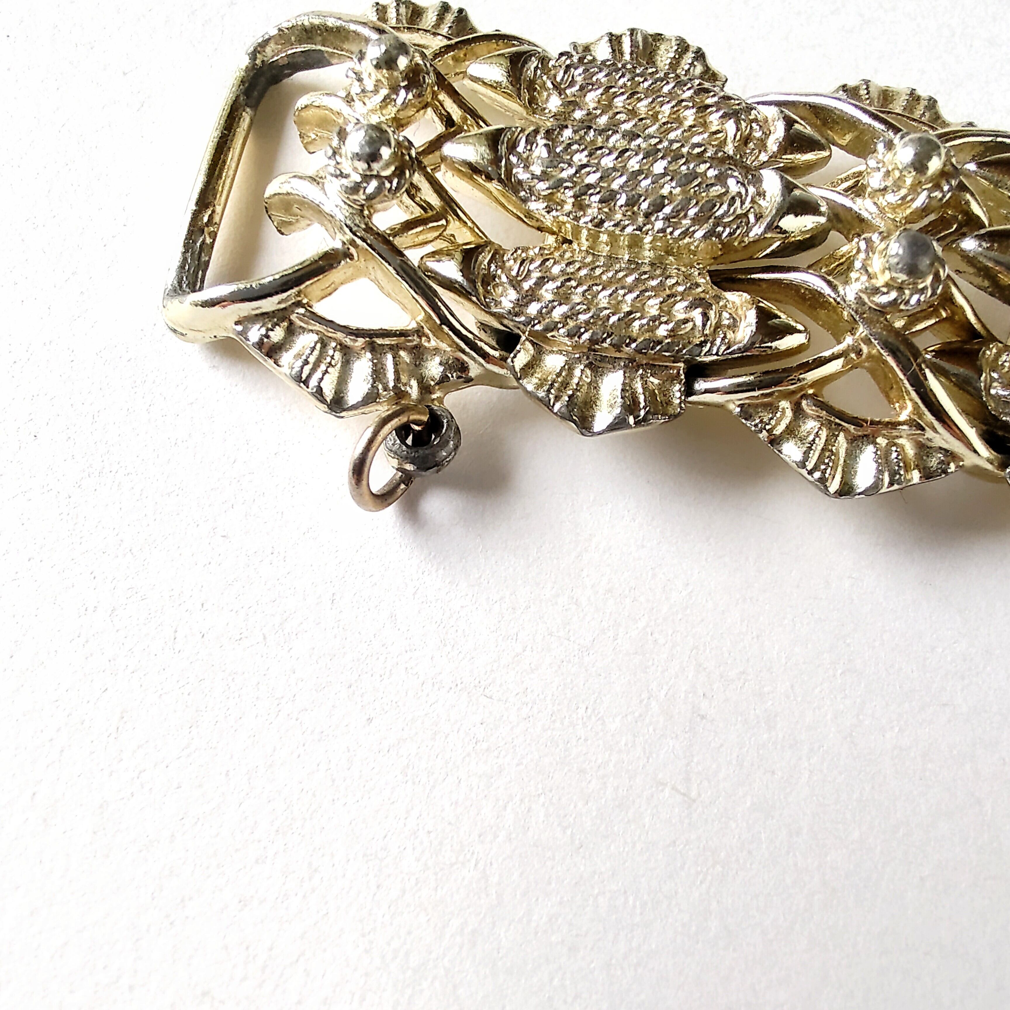 薄いゴールドメタルのオープンワークのアブストラクトなデザインのヴィンテージブレスレットです。