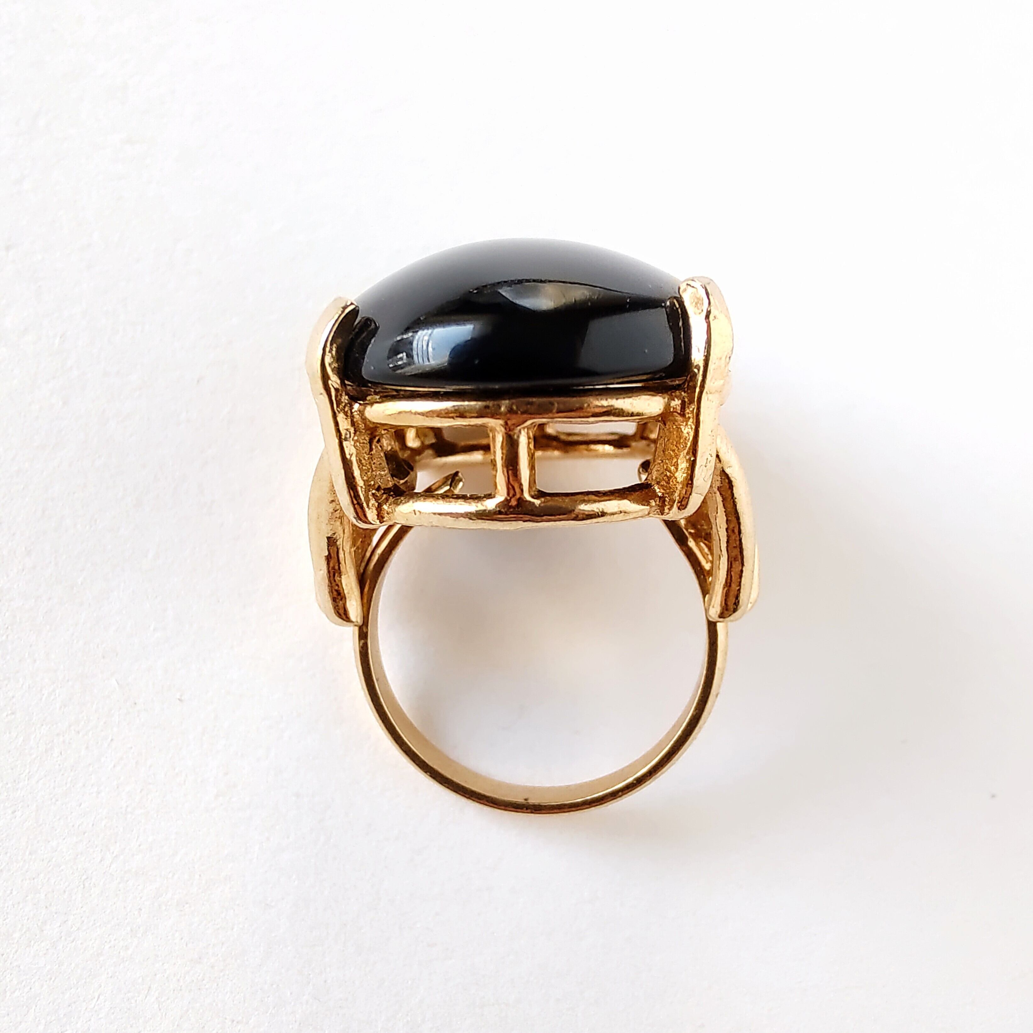 オープンワークのゴールドメタルの台座に大きめのオーバル型のプラスチックカボションがセットされたヴィンテージリングです。
