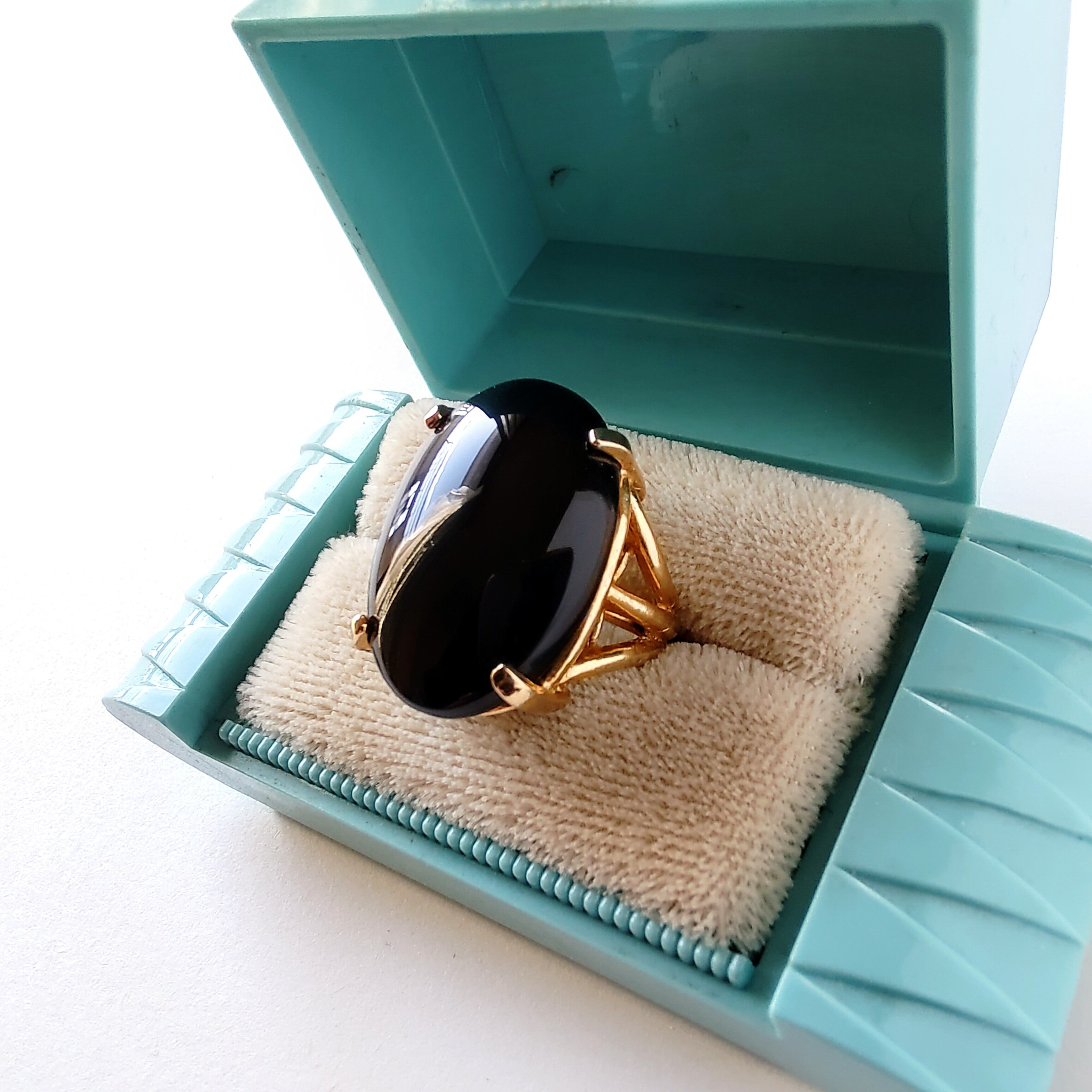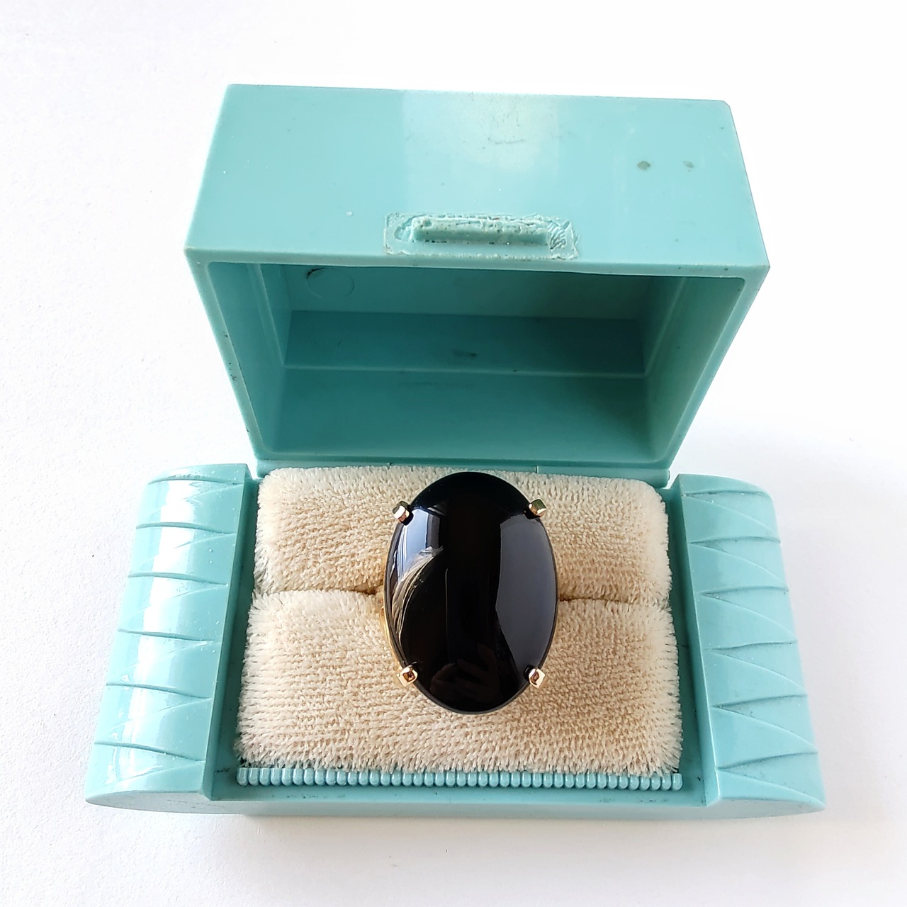 black plastic oval cabochon vintage ring ヴィンテージリング