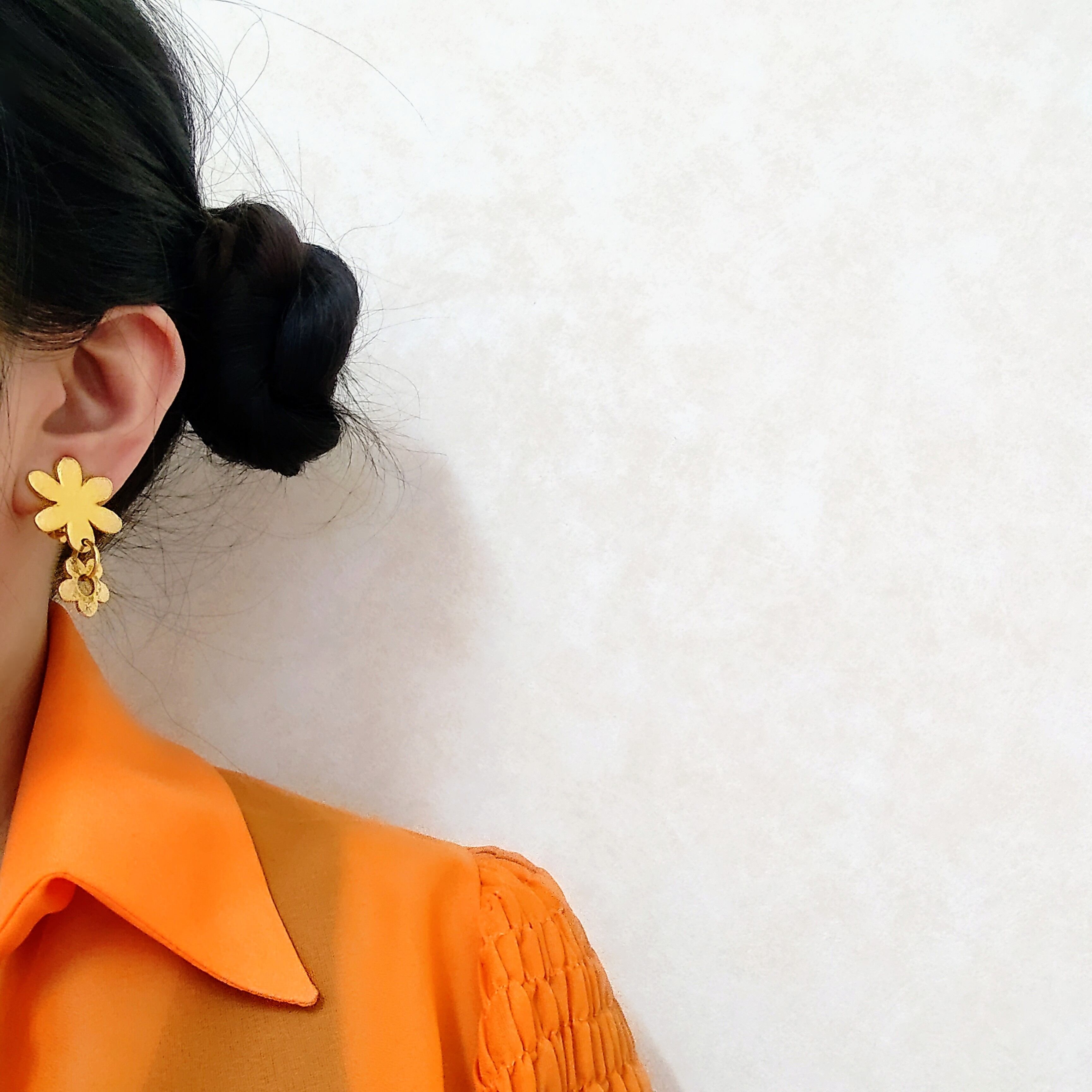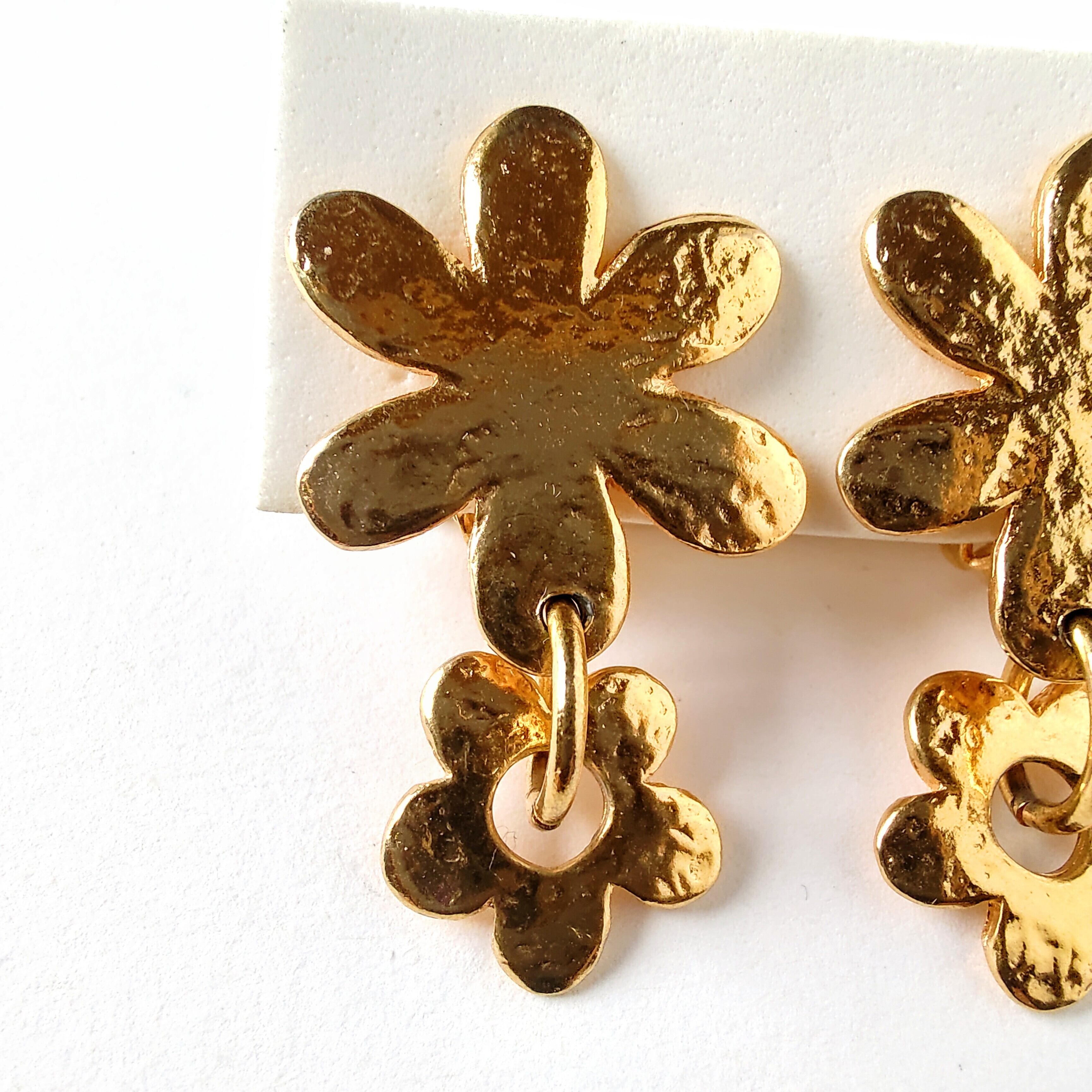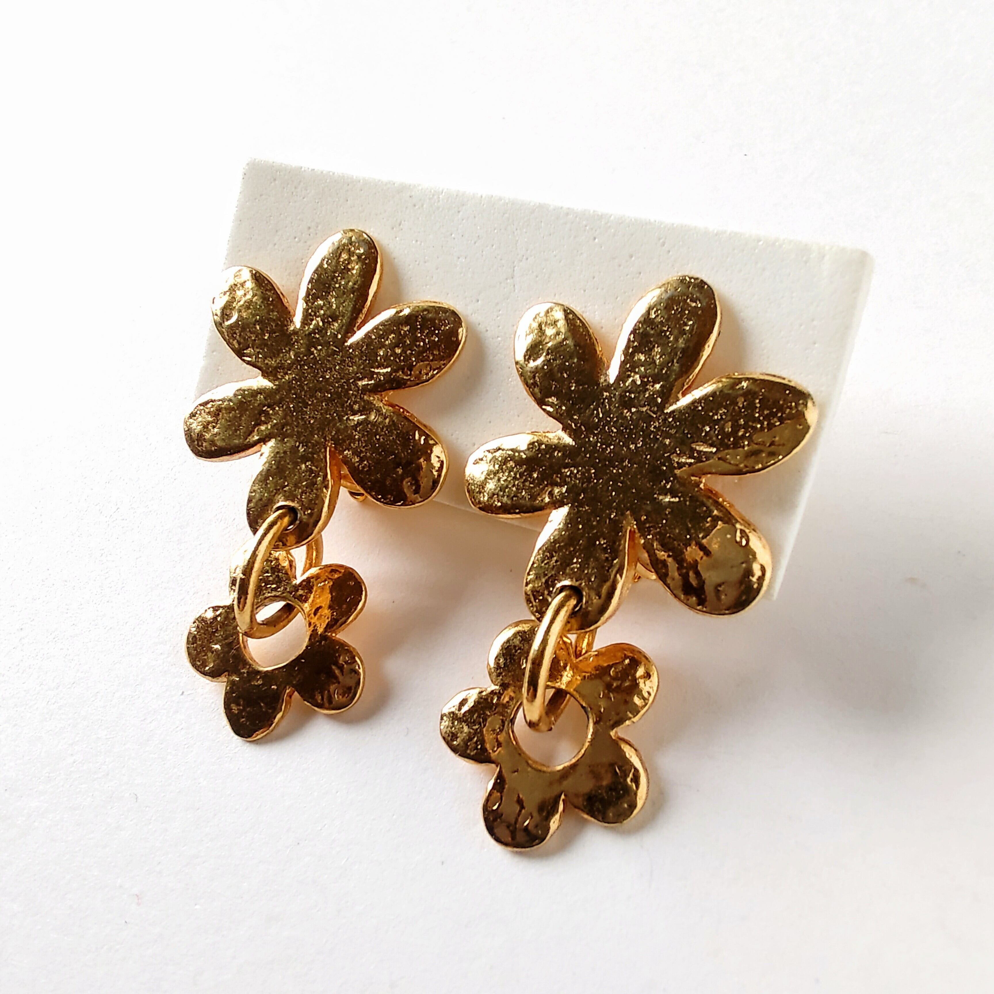 gold double flower dangle vintage earrings ヴィンテージイヤリング