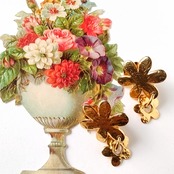 ゴールドメタルのフラワーの下で小さなフラワーが揺れるデザインのヴィンテージイヤリングです。