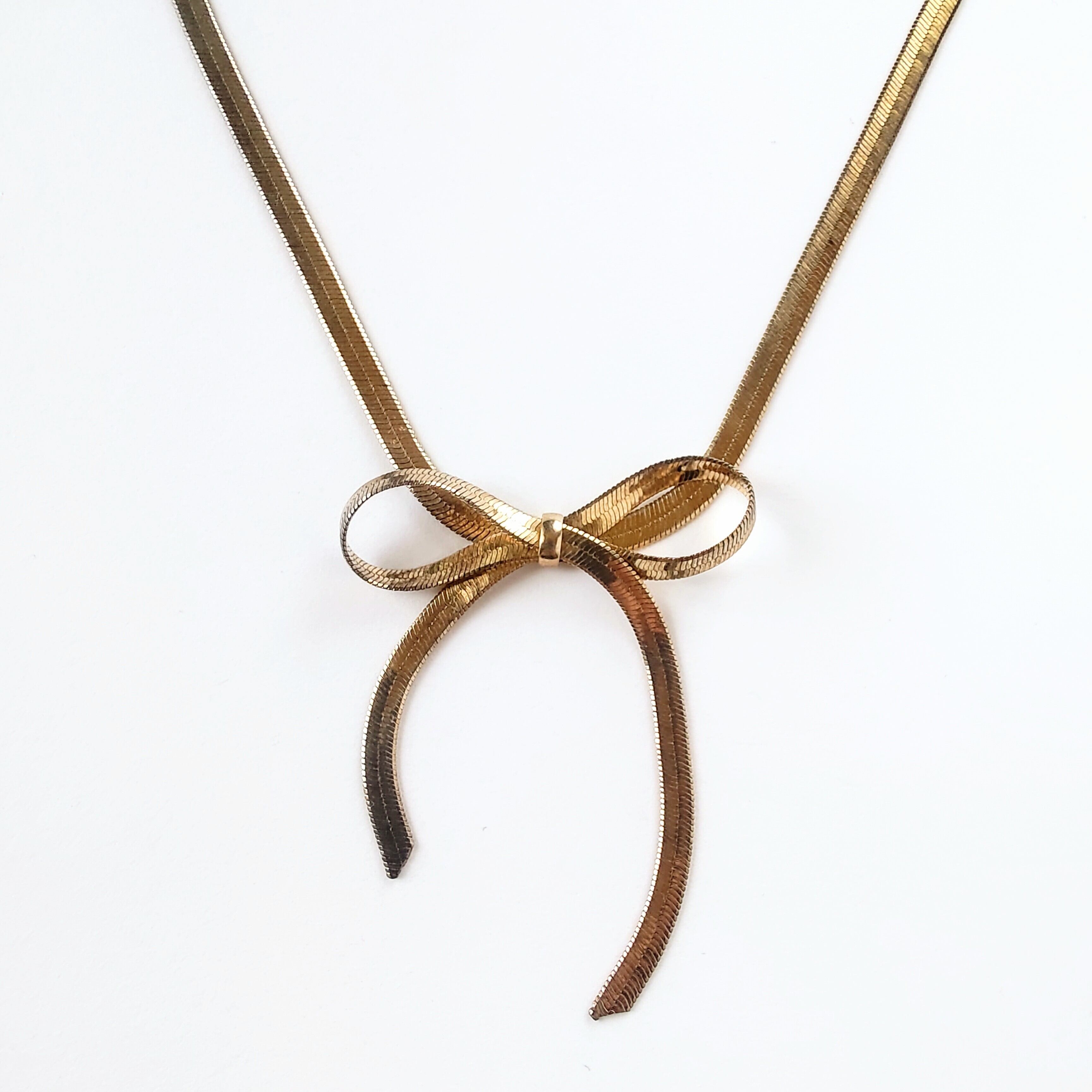 《Avon》 gold herringbone chain bow vintage necklace エイボン ヴィンテージネックレス