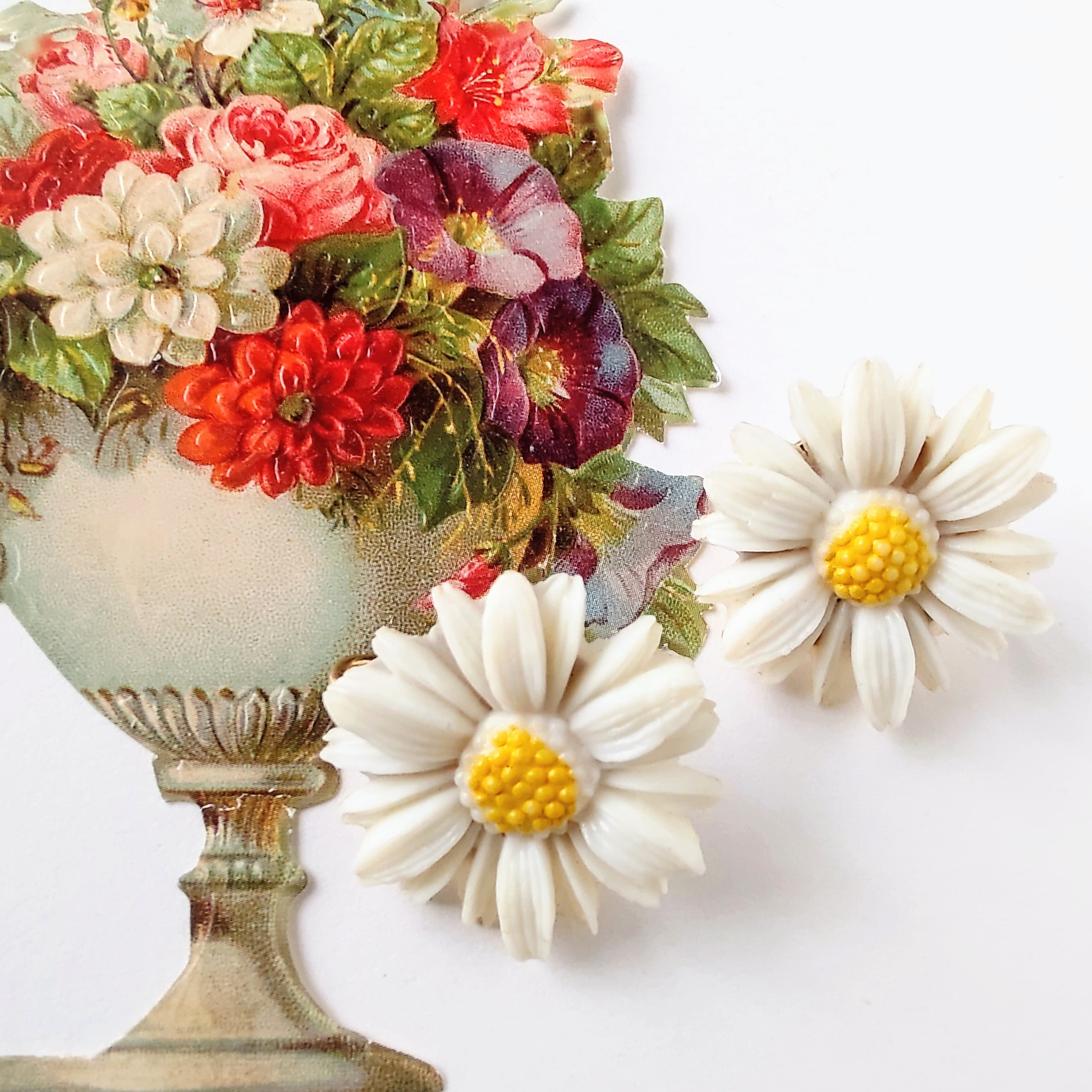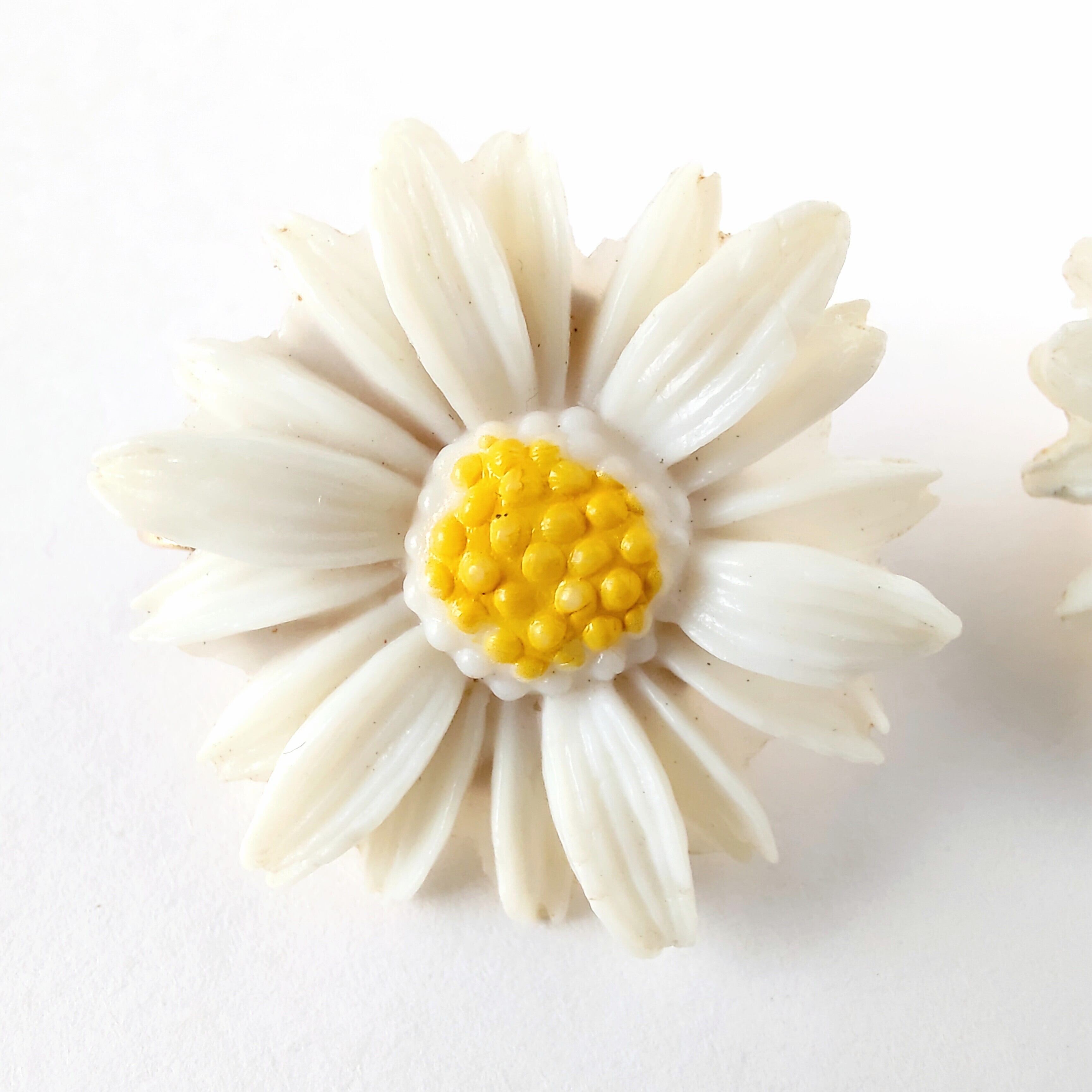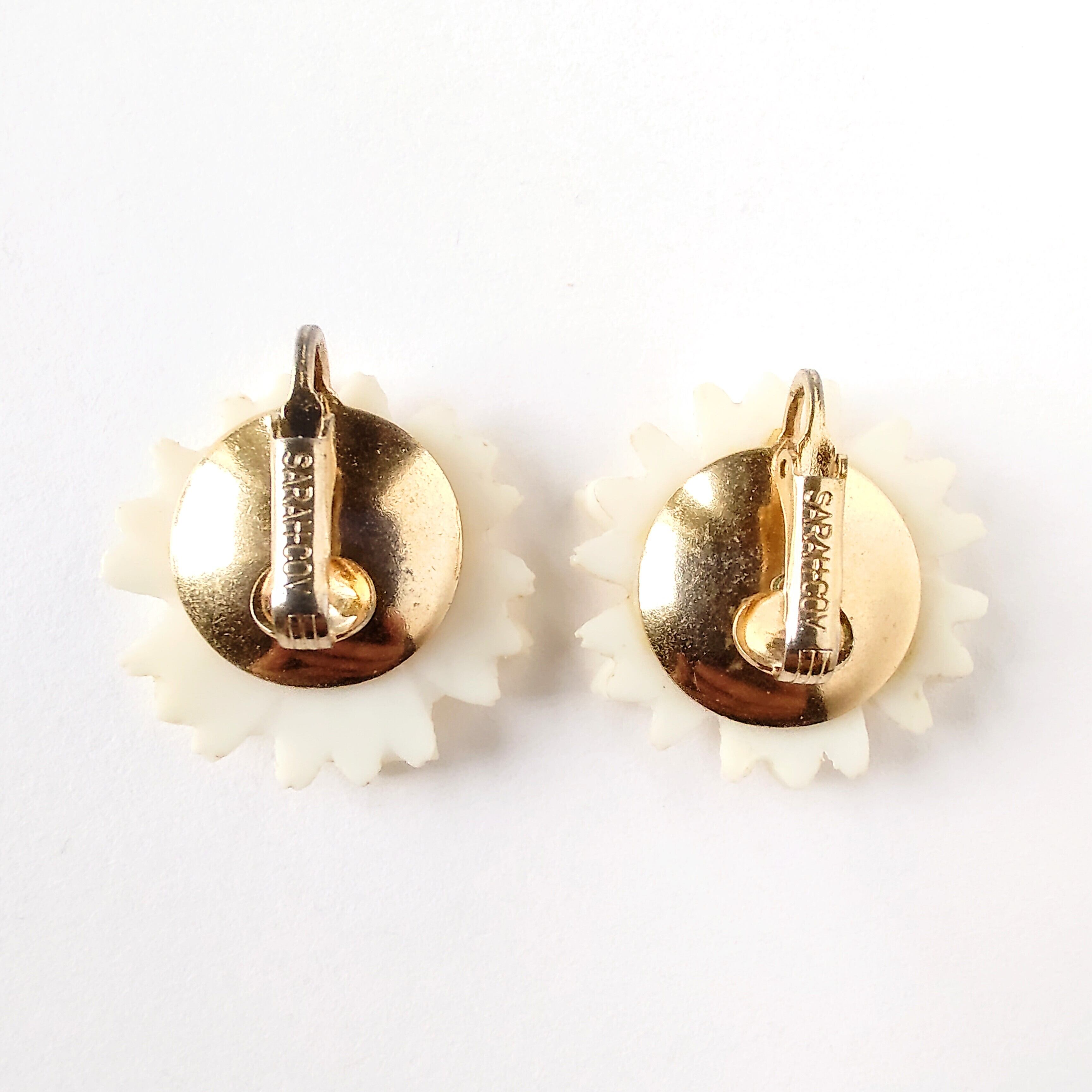 1949年にニューヨークで創業したSarah Coventry(サラコベントリー)の1969年に販売された“Light ’N Bright”のセルロイドのデイジーのヴィンテージイヤリングです。