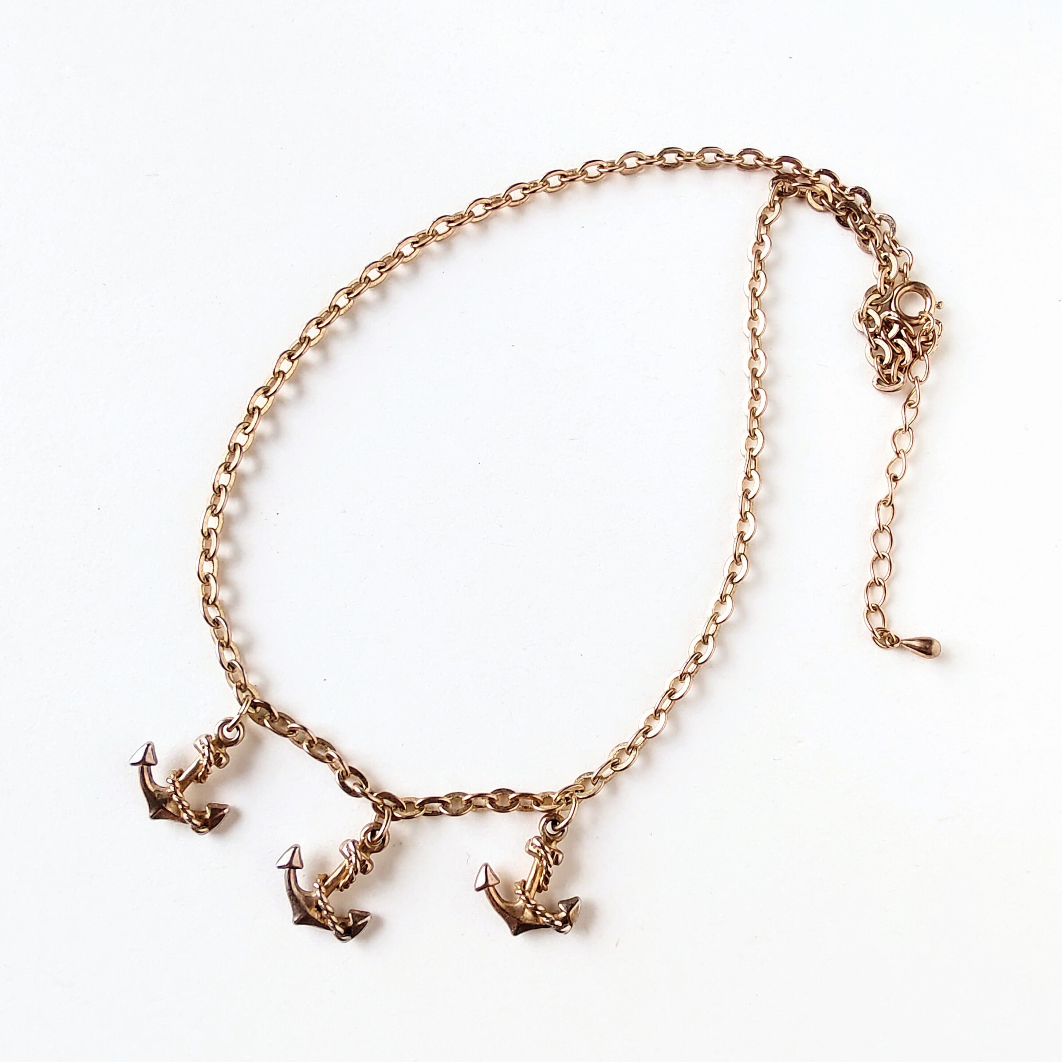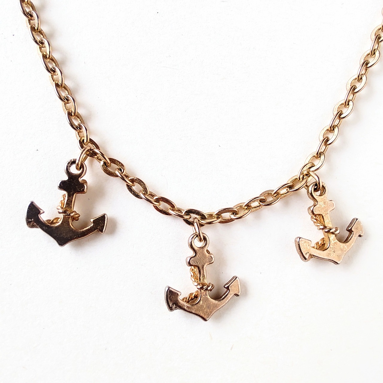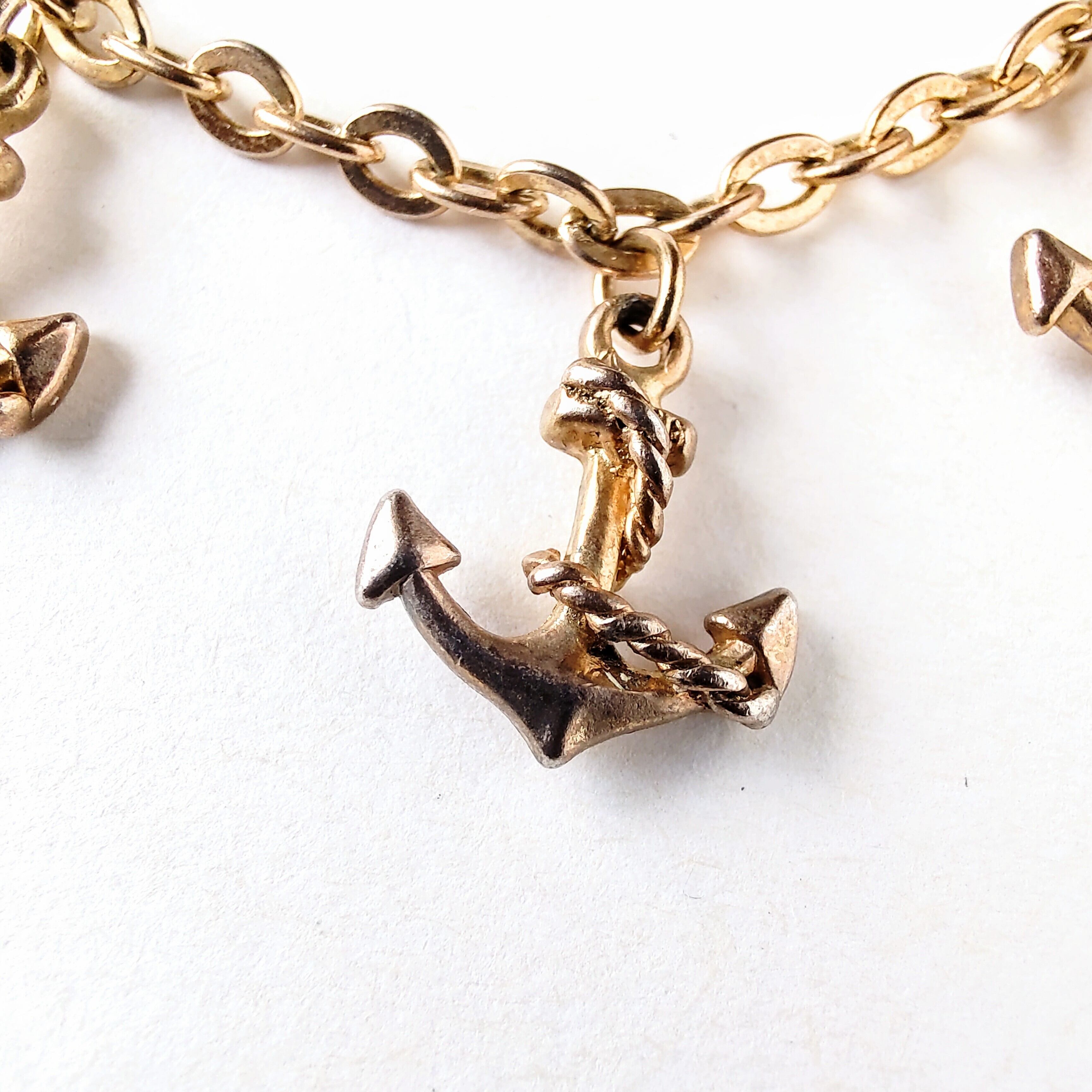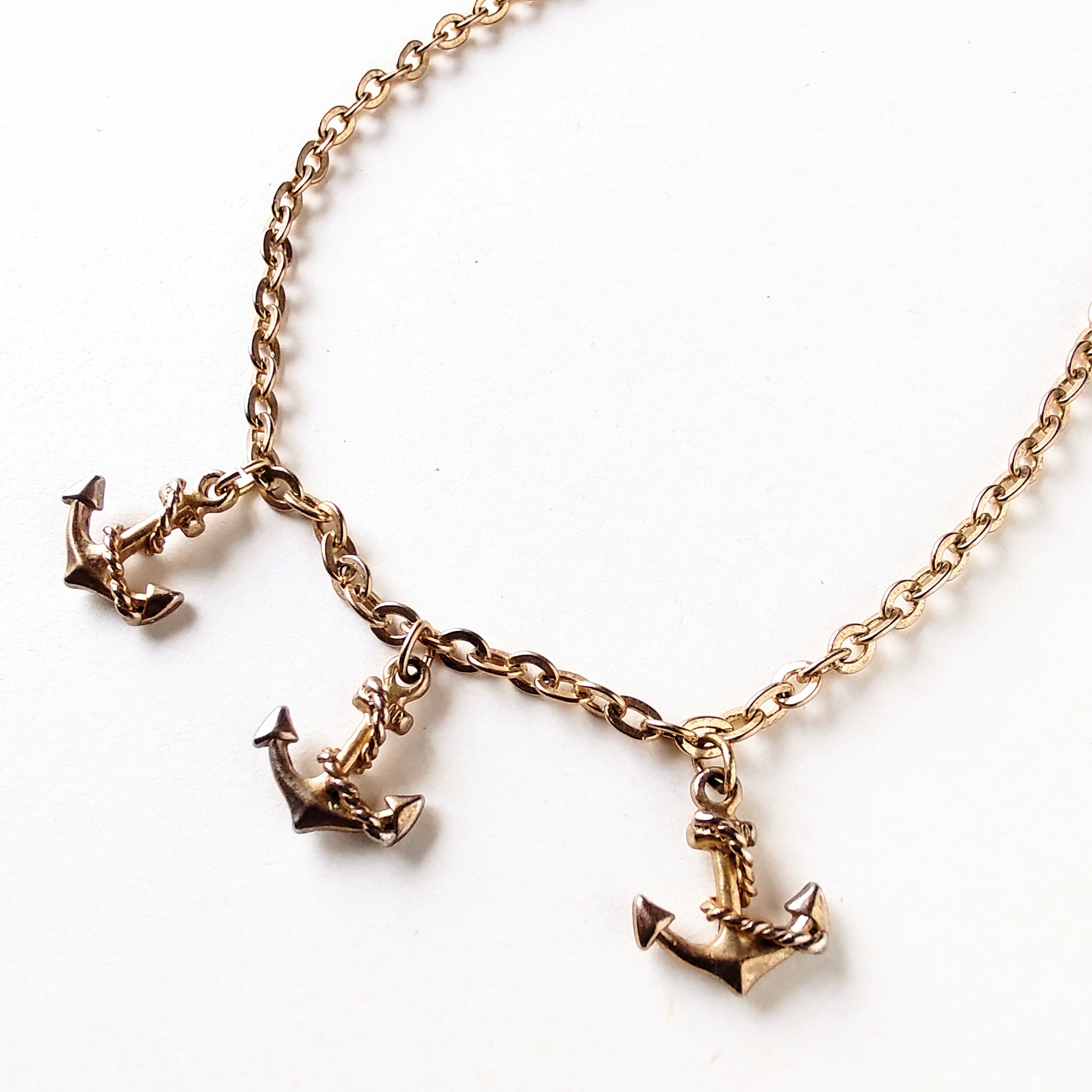 ゴールドメタルのロープが巻き付いた3つの碇があしらわれたヴィンテージネックレスです。