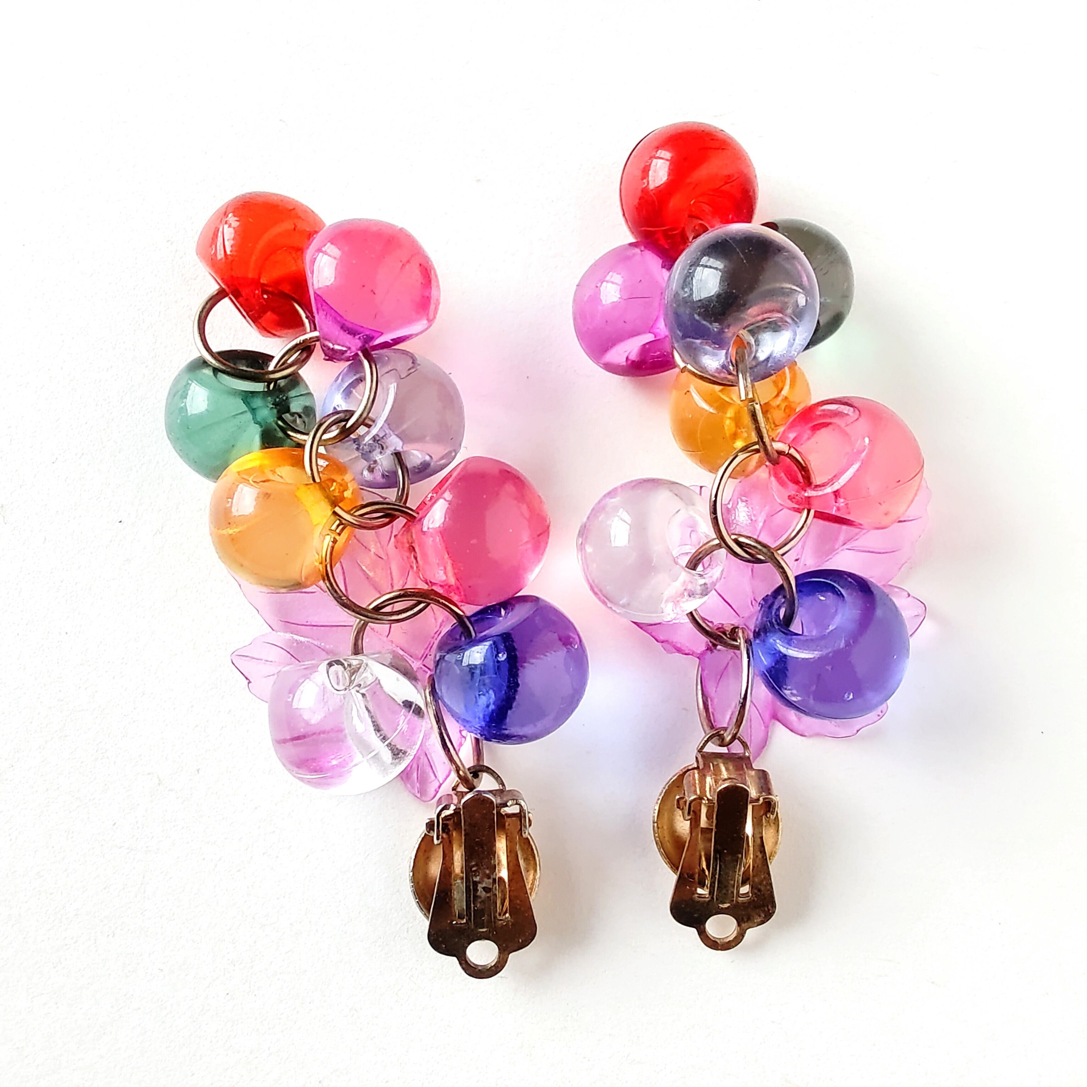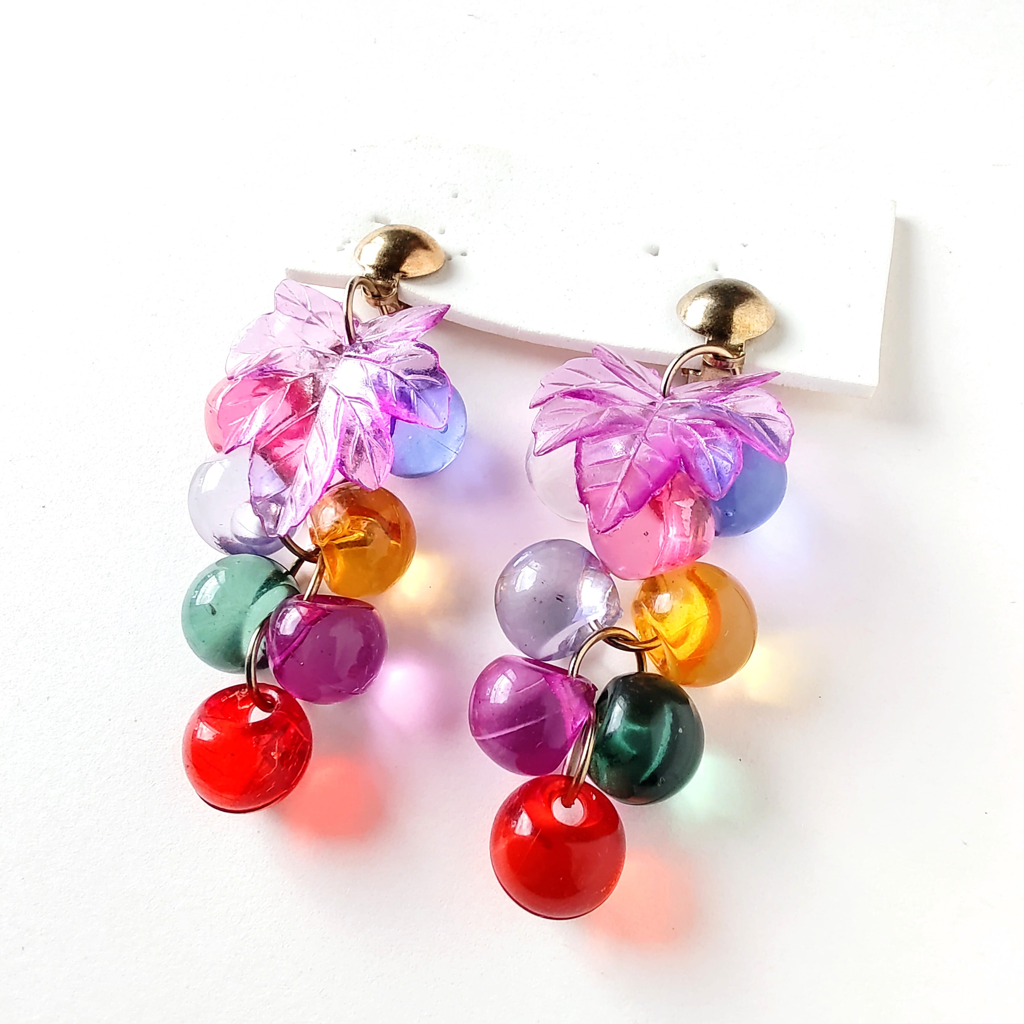 colorful plastic grape dangle vintage earrings ヴィンテージイヤリング