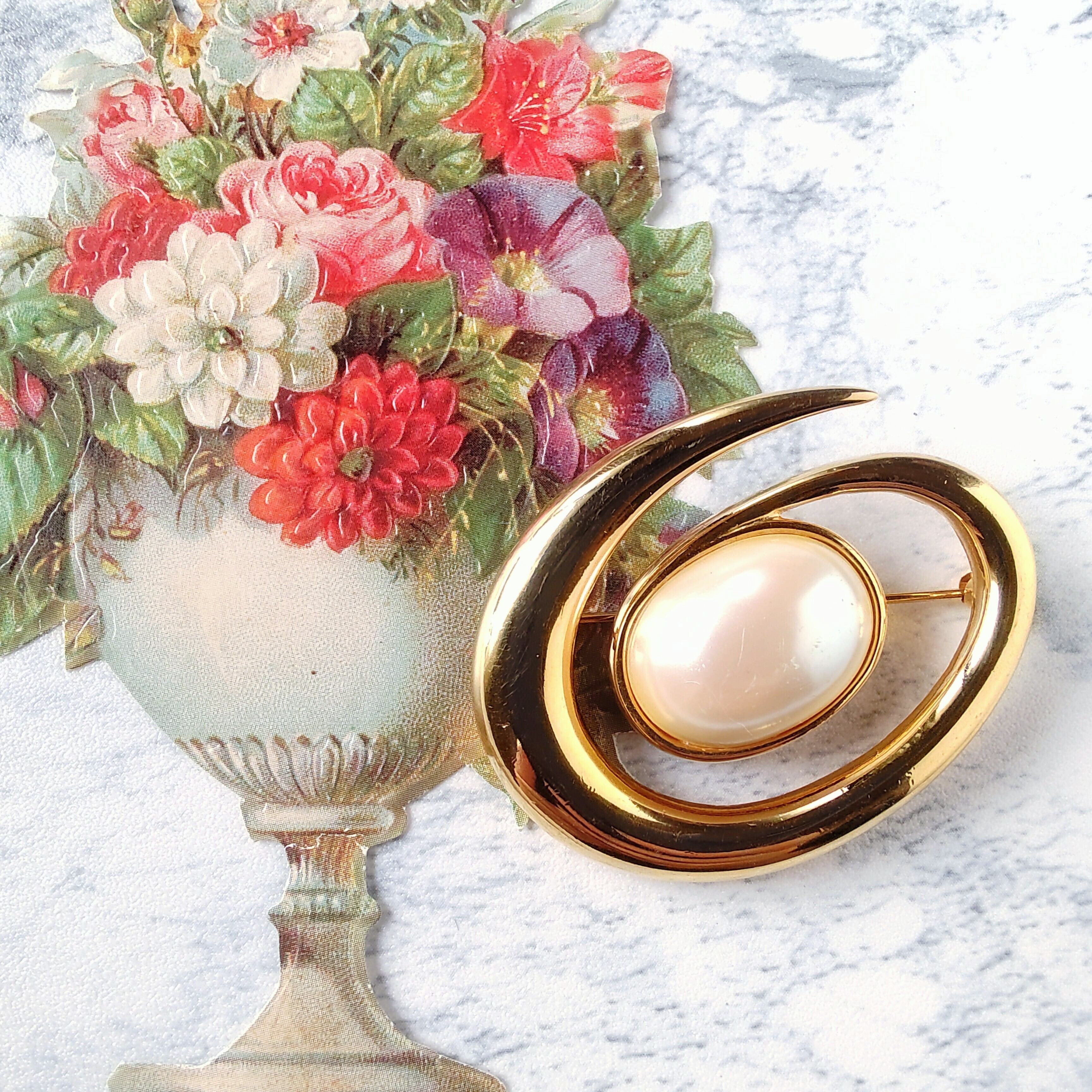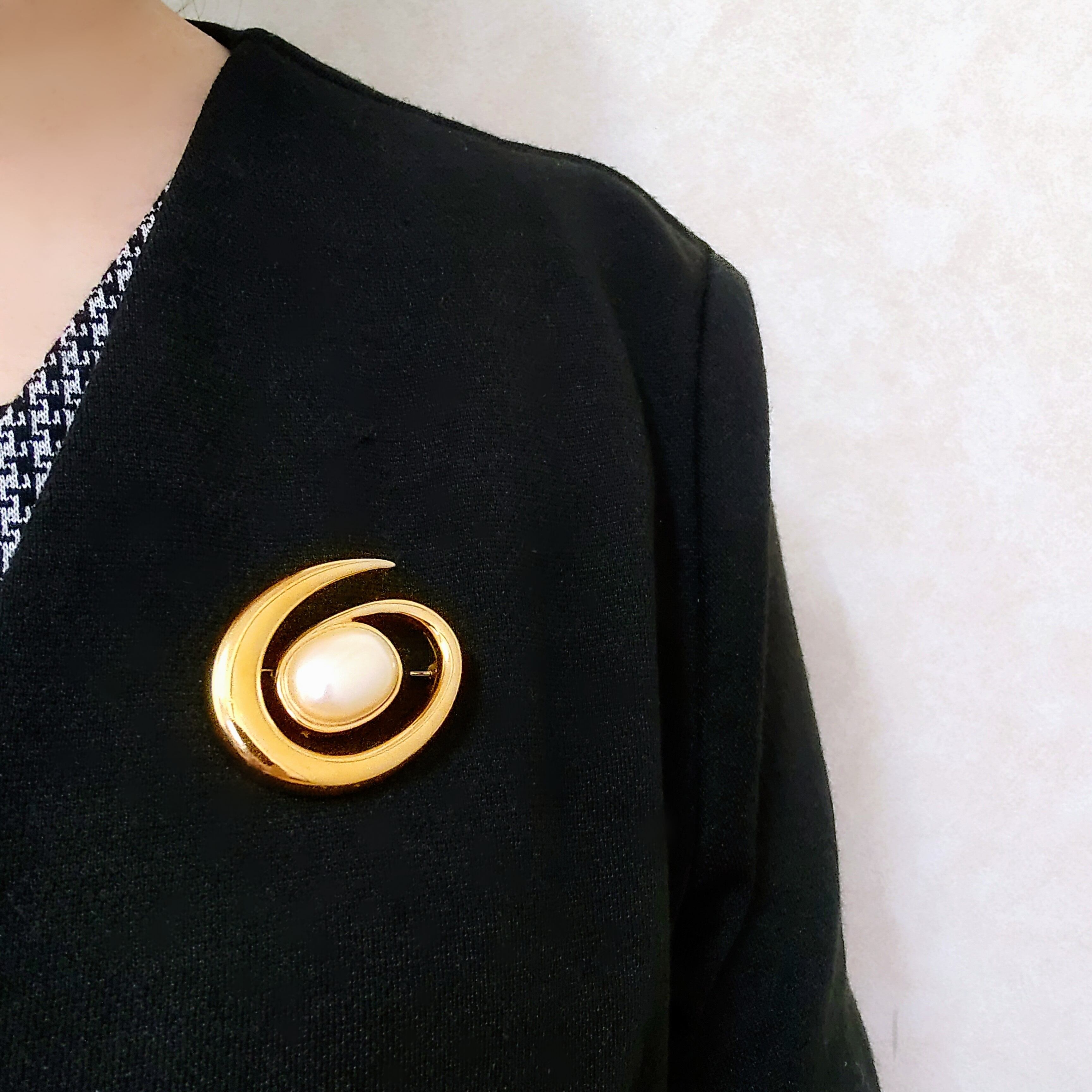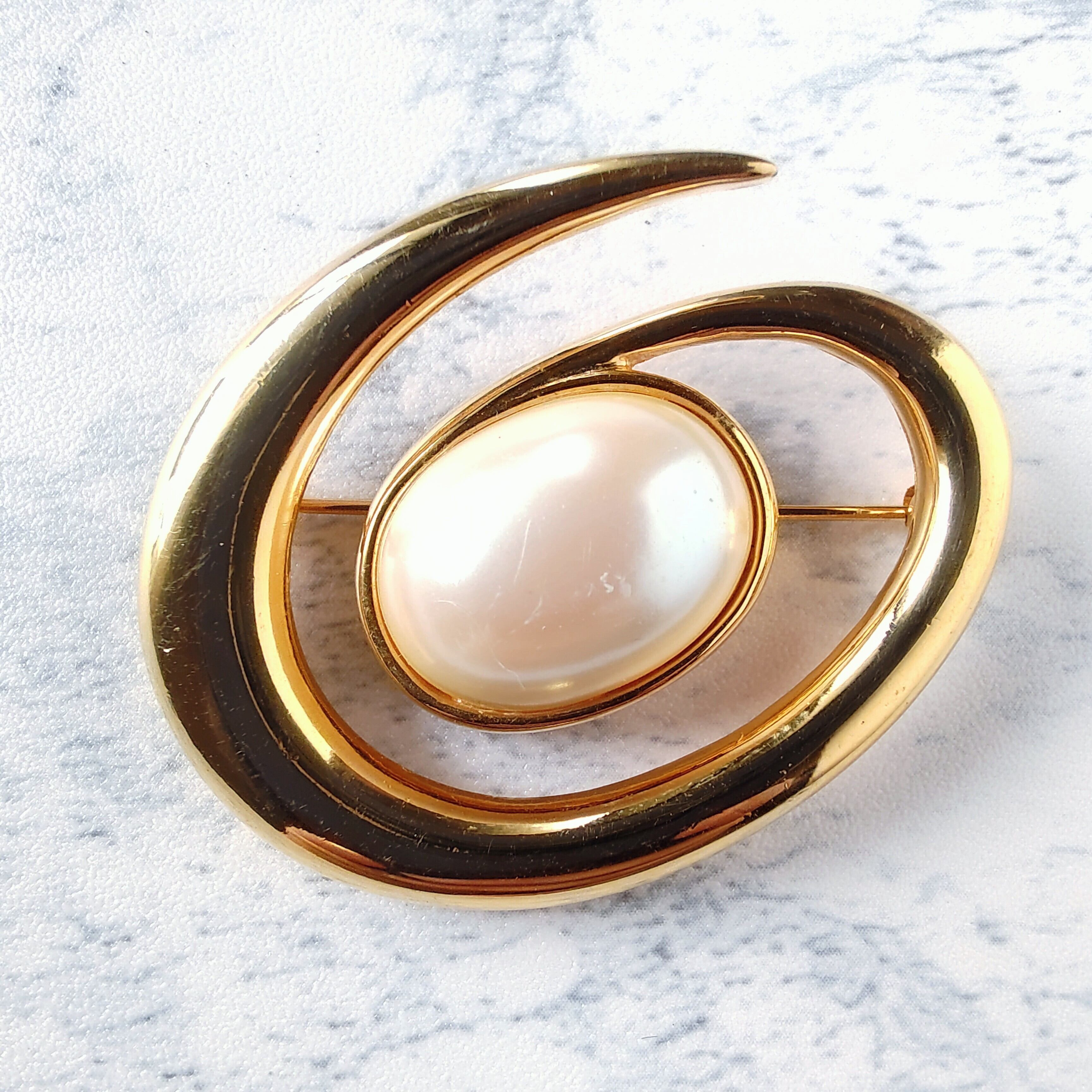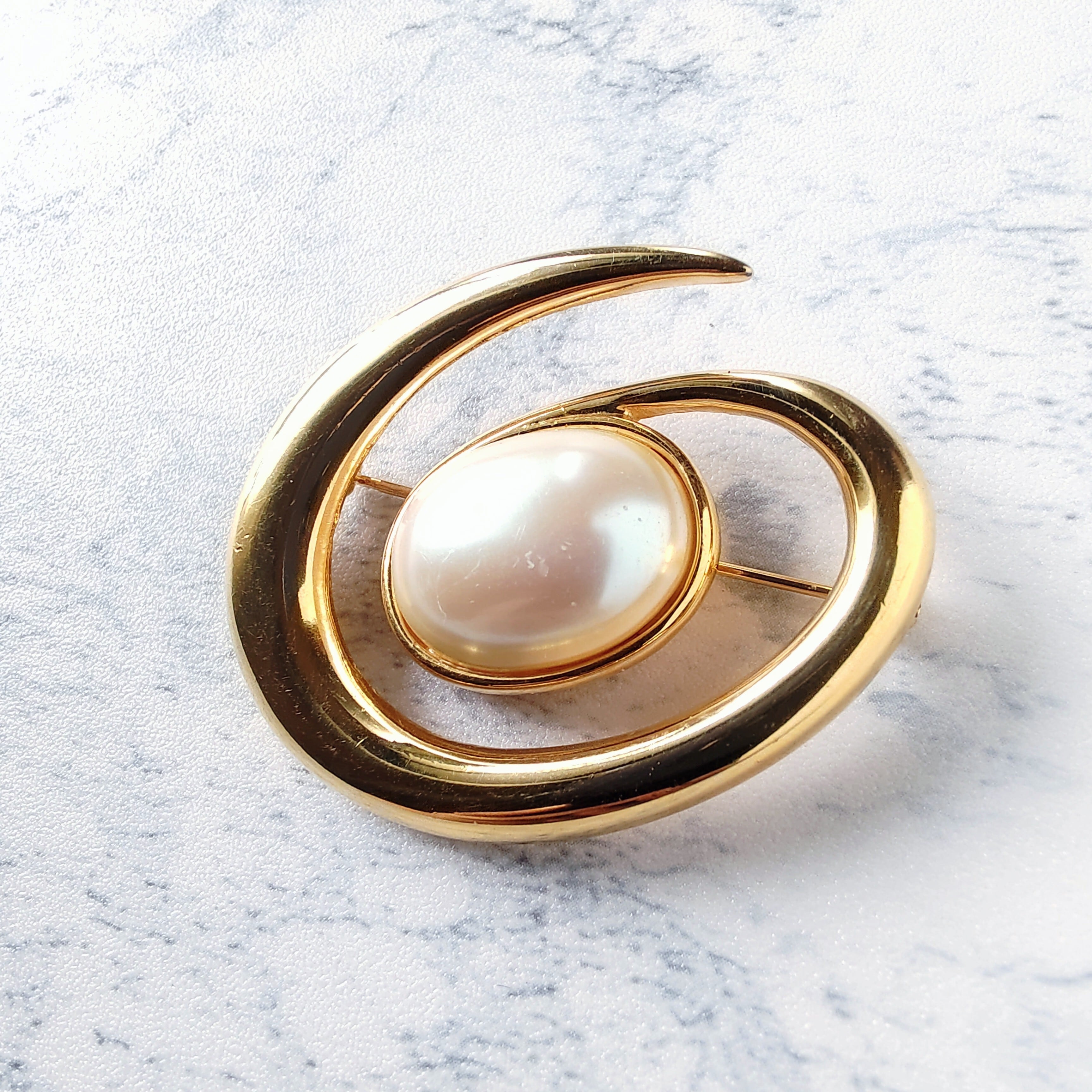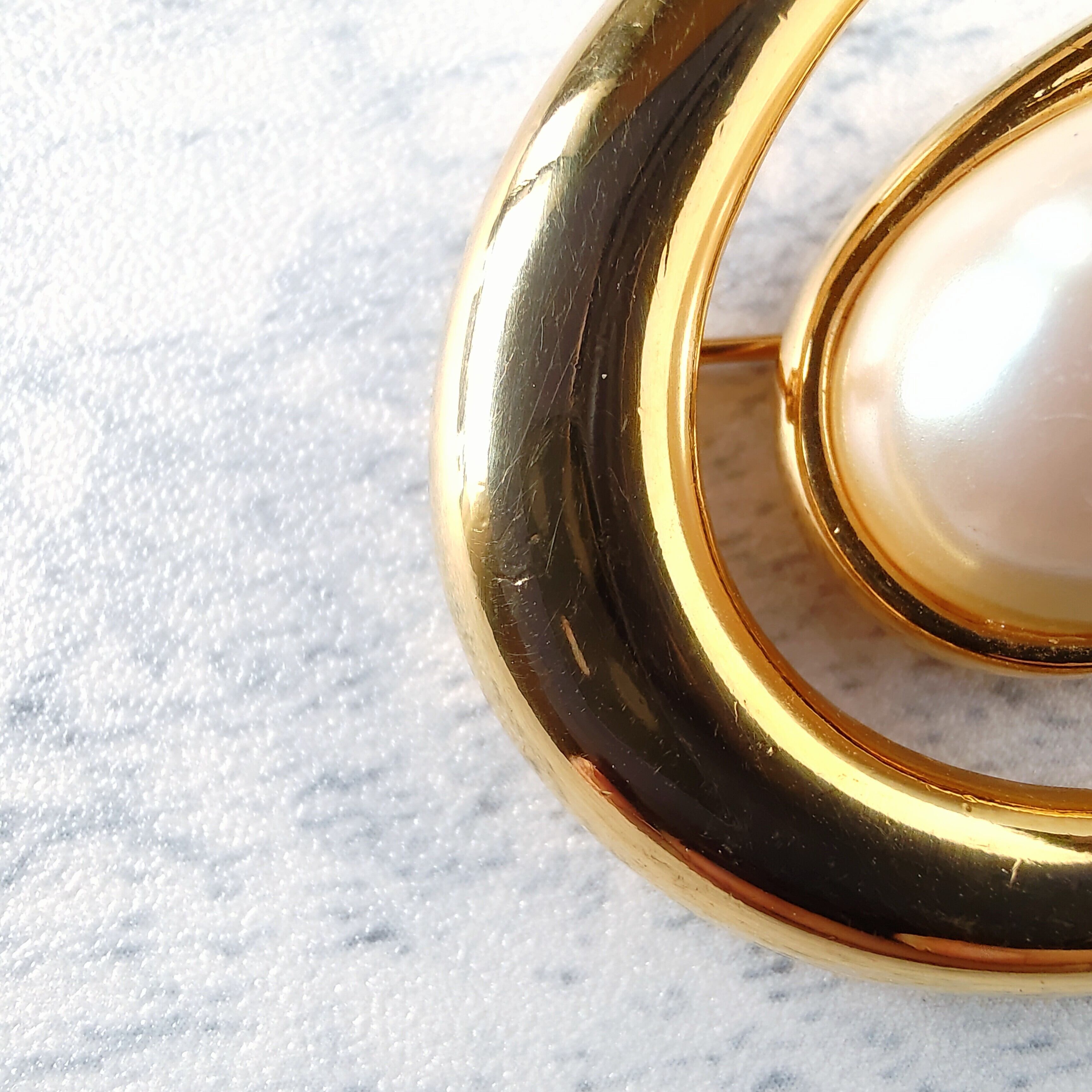 《MONET》 gold swirl faux pearl vintage brooch モネ ヴィンテージブローチ