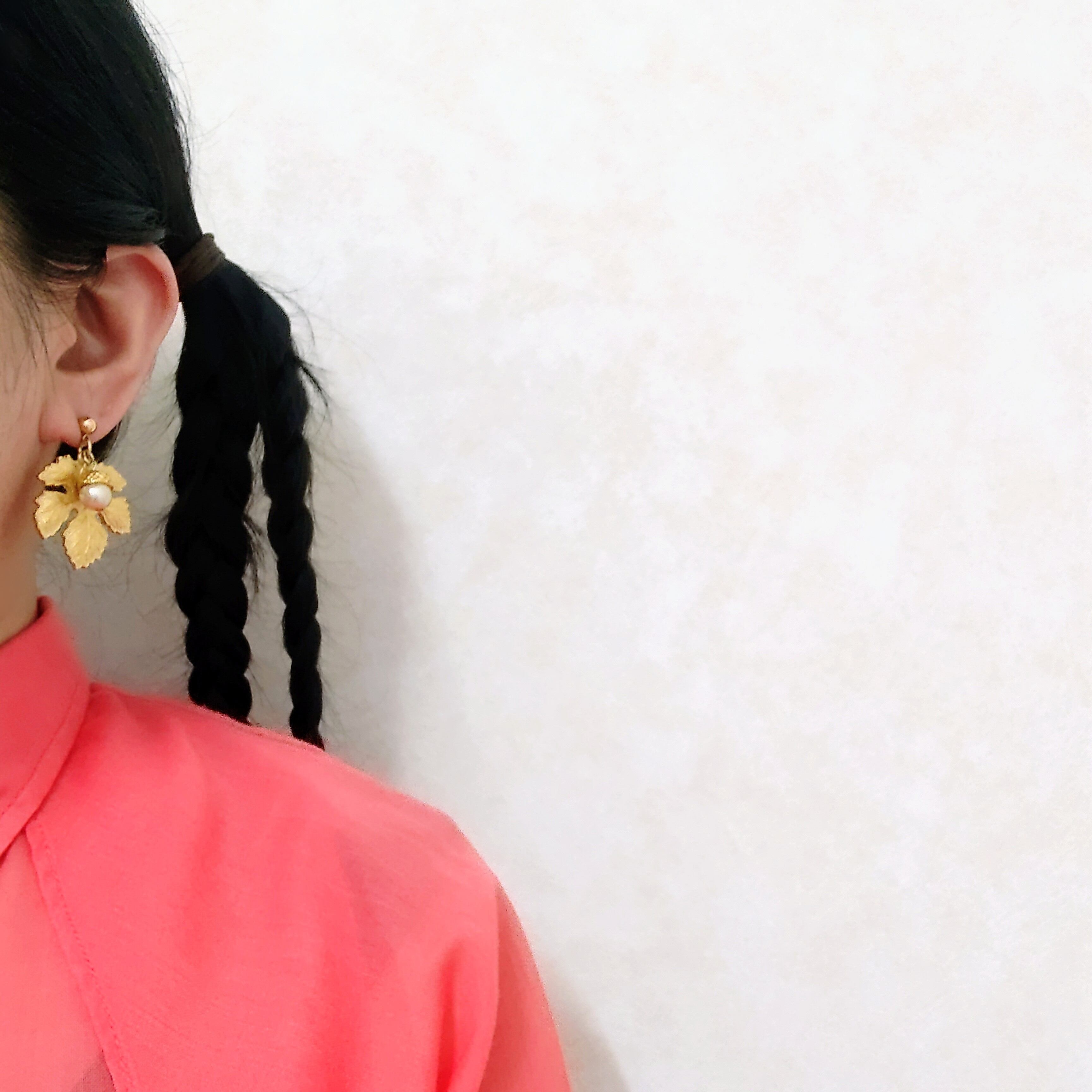 maple leaf faux pearl acorn dangle vintage pierced earrings ヴィンテージピアス
