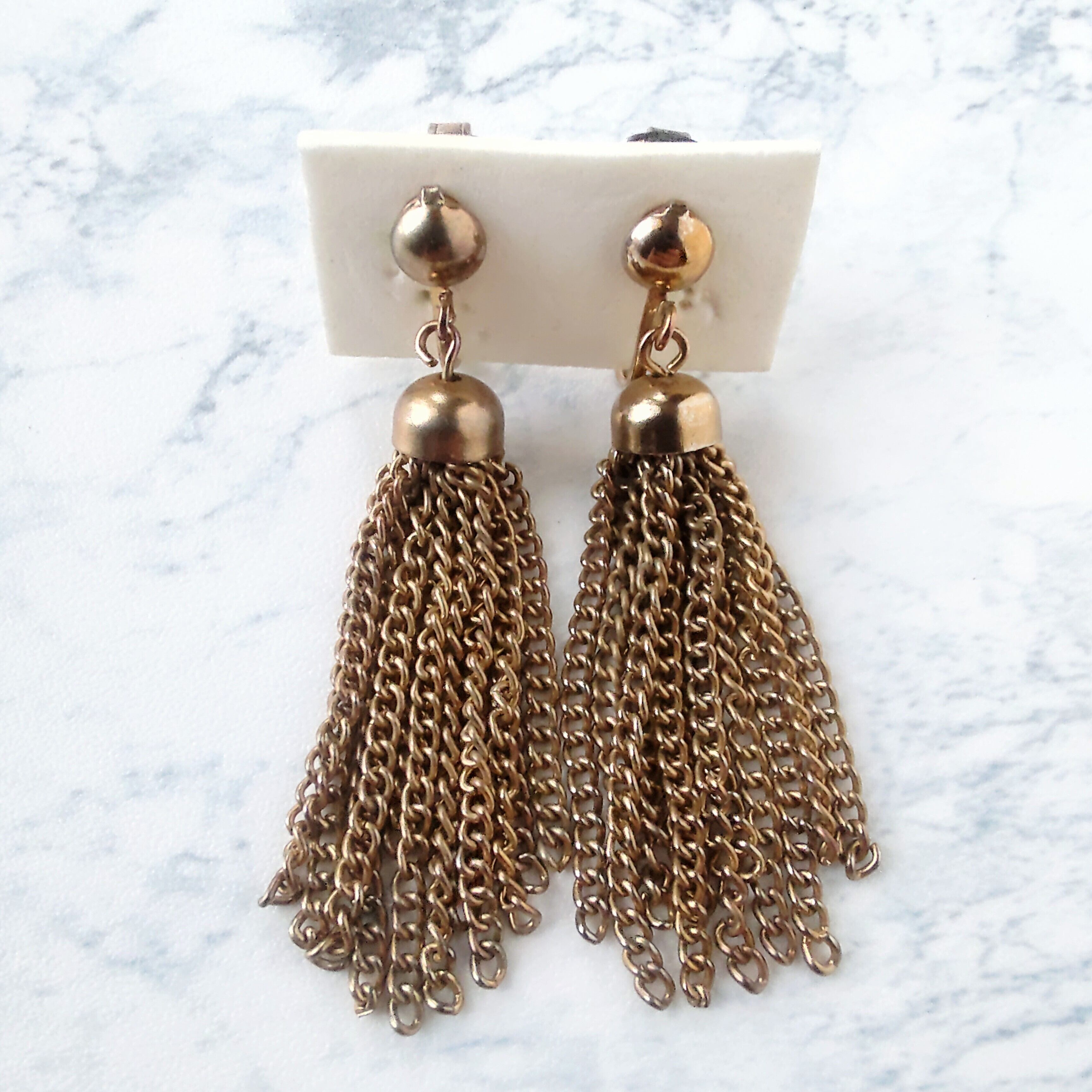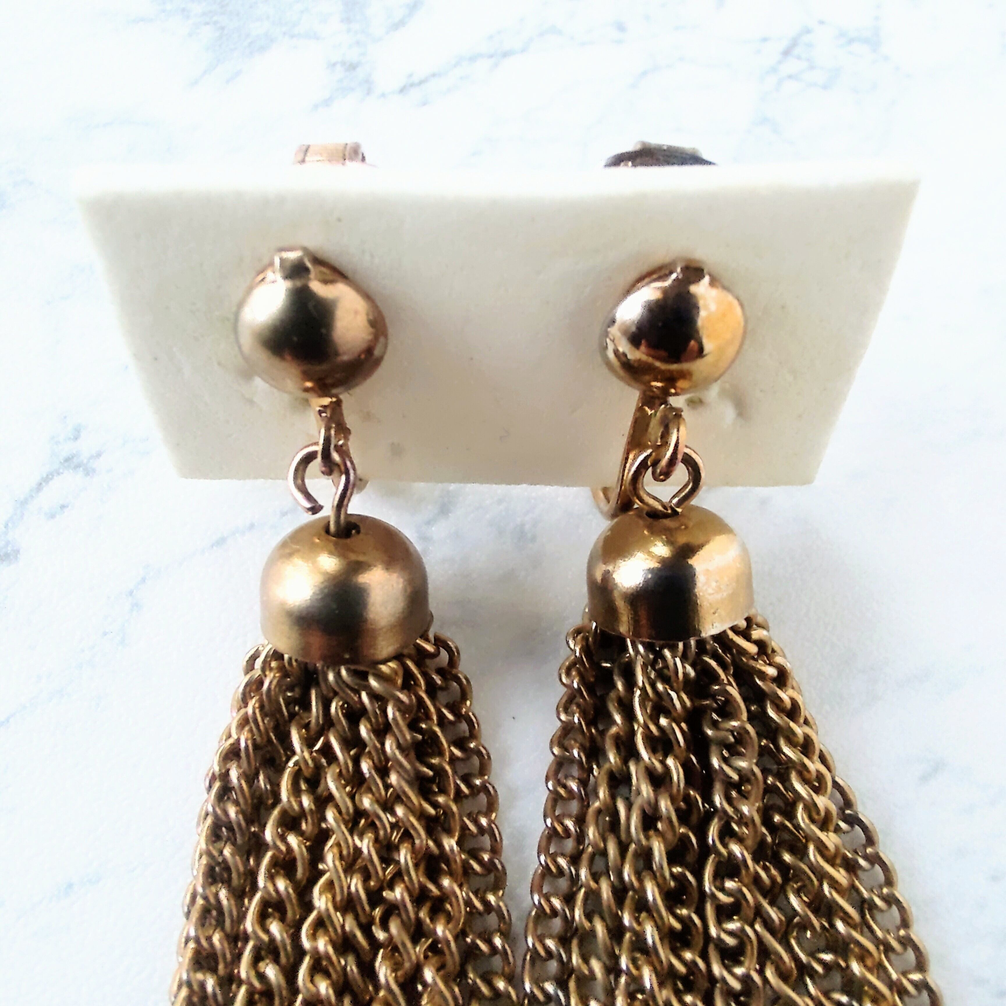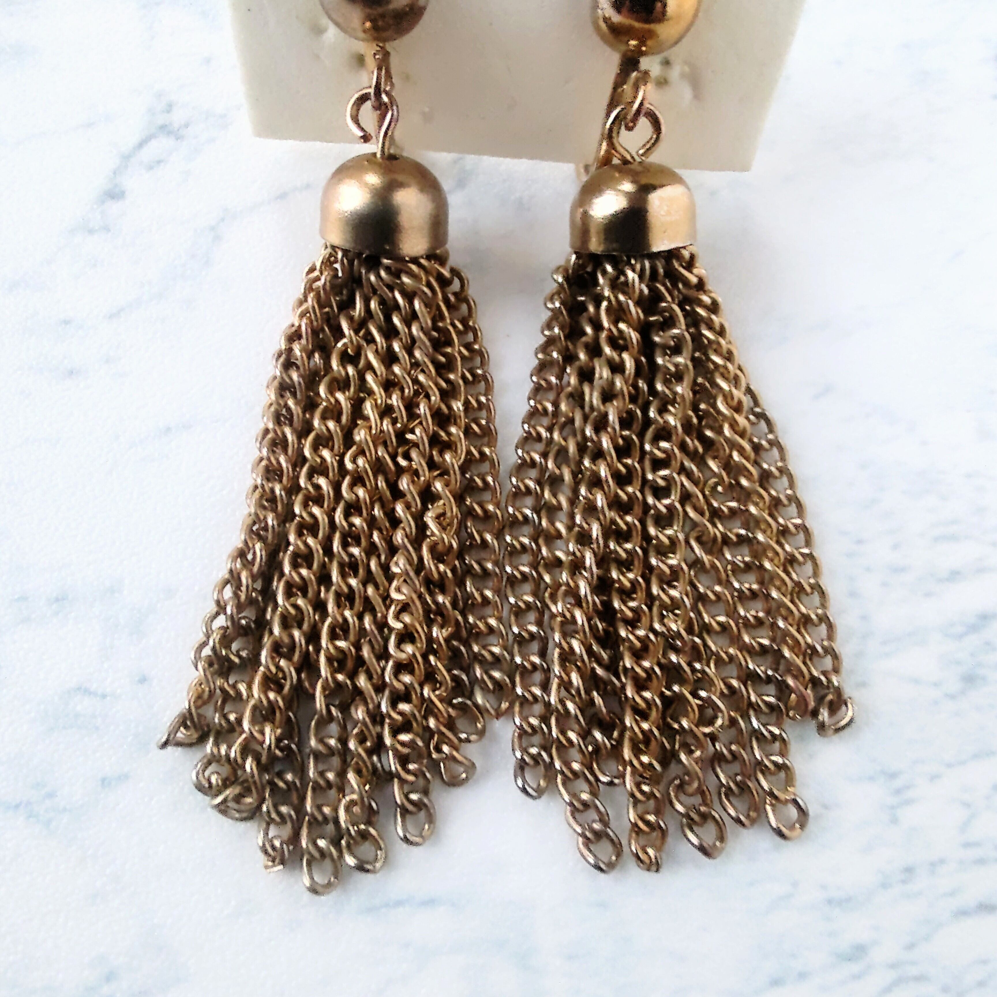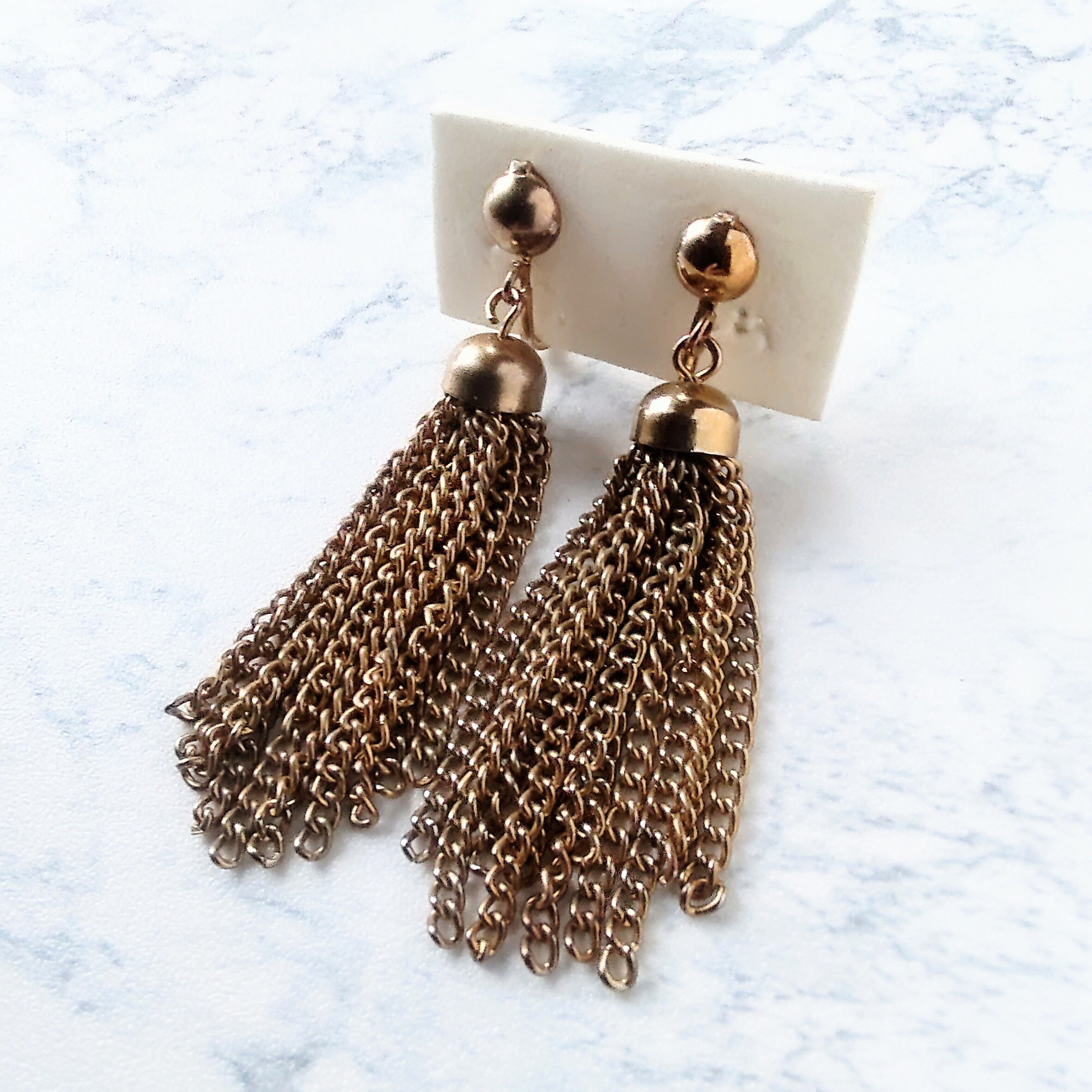 ゴールドチェーンのタッセルデザインのヴィンテージイヤリングです。