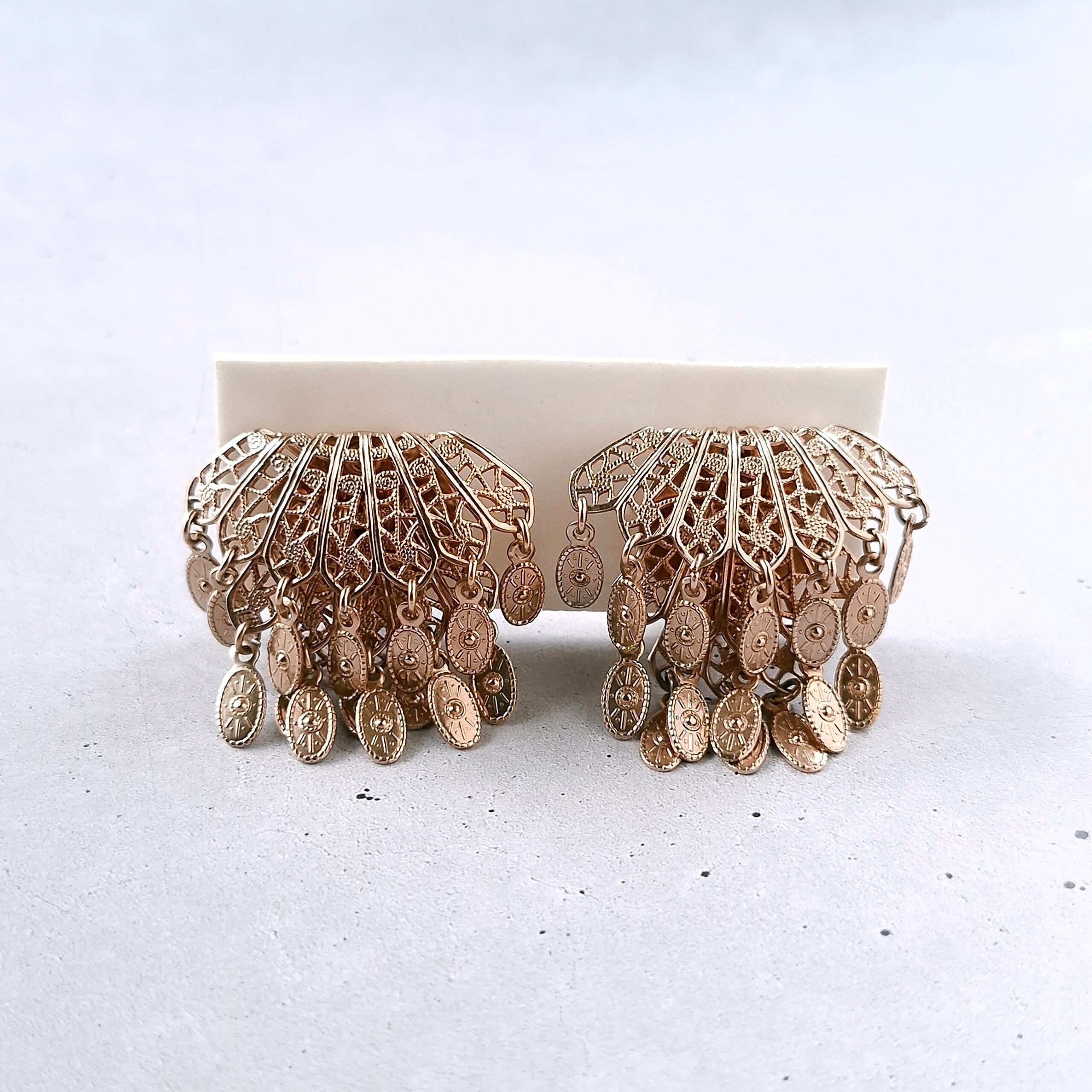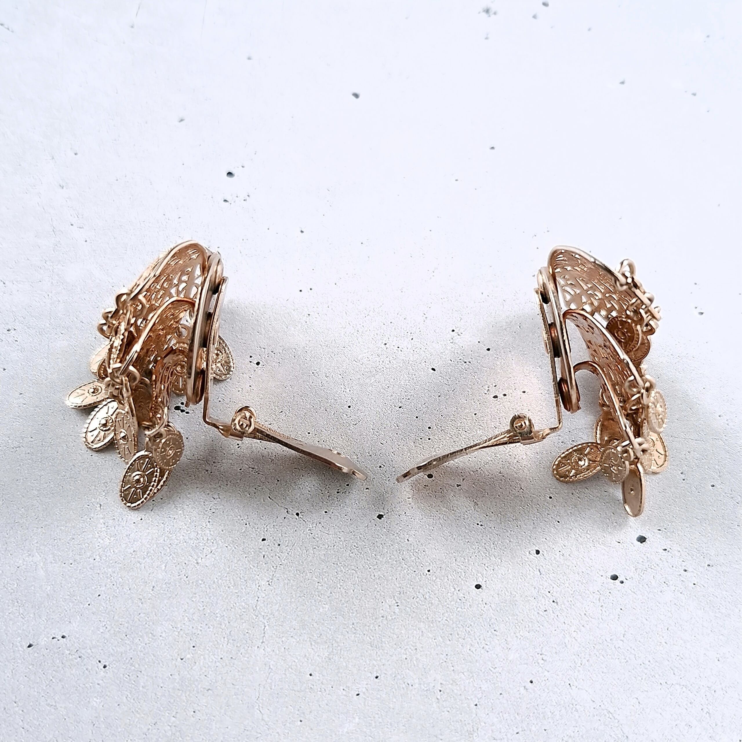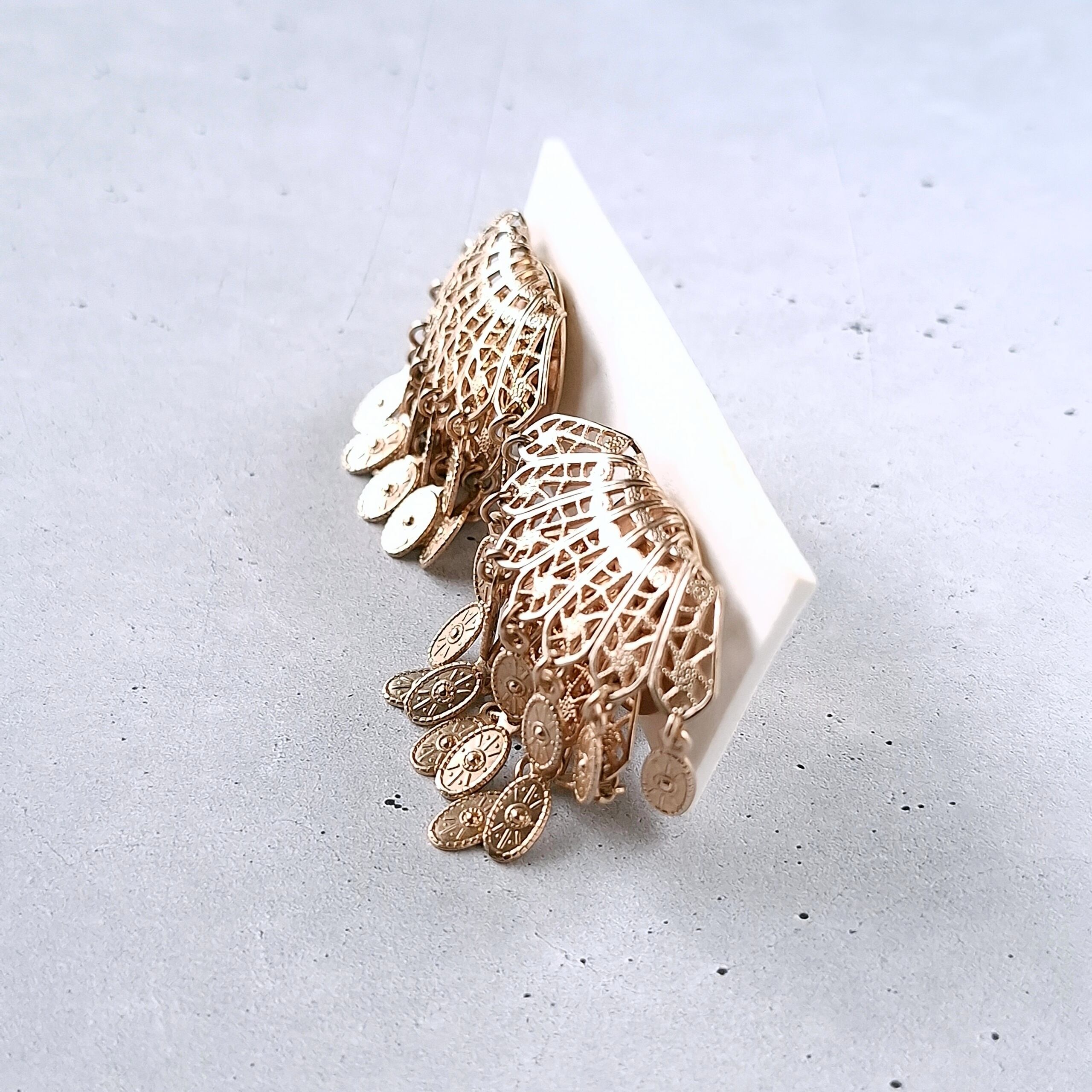gold filigree fan oval dangle vintage earrings ヴィンテージイヤリング