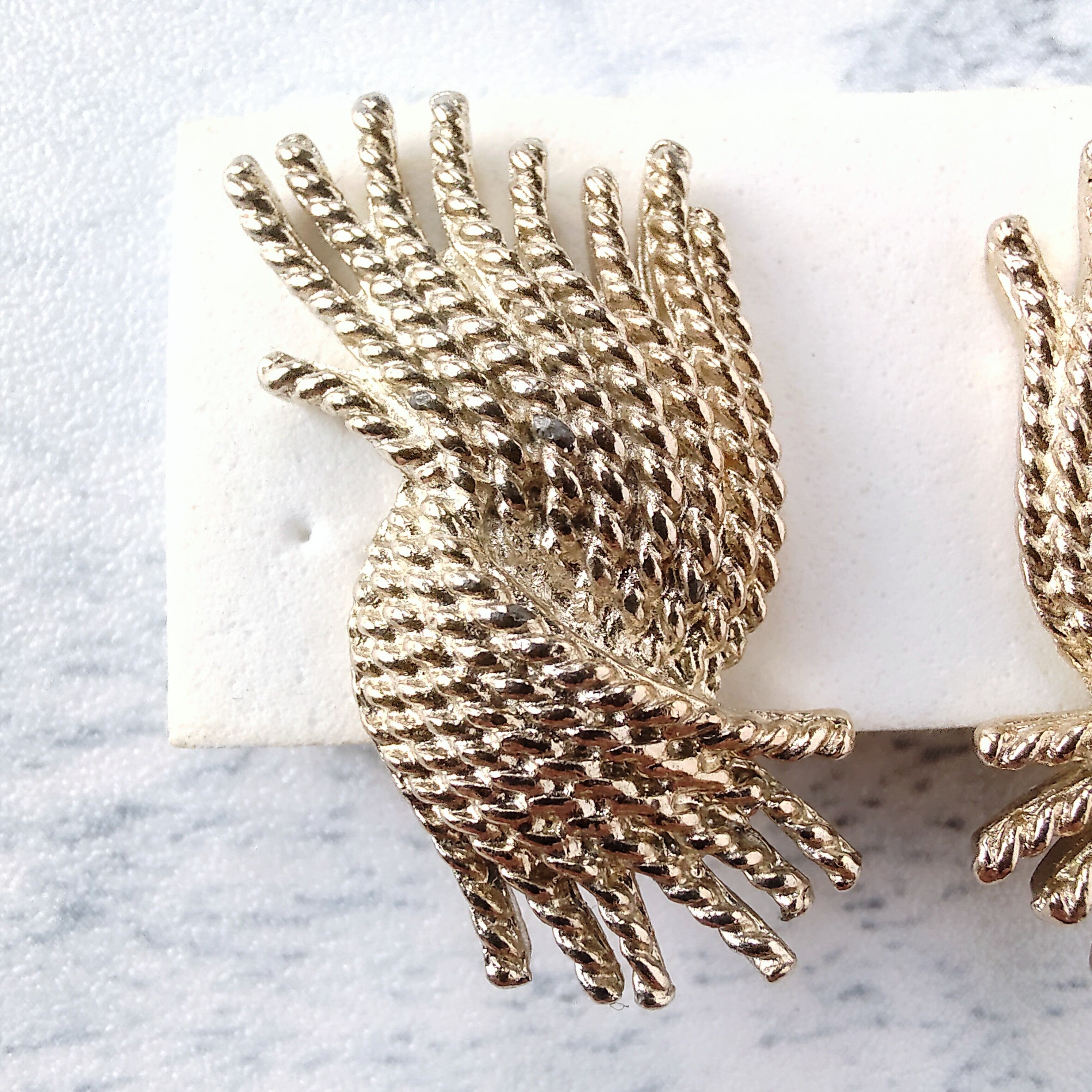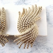 ロープ状の薄い色味のゴールドメタルが流れる様にデザインされたヴィンテージイヤリングです。