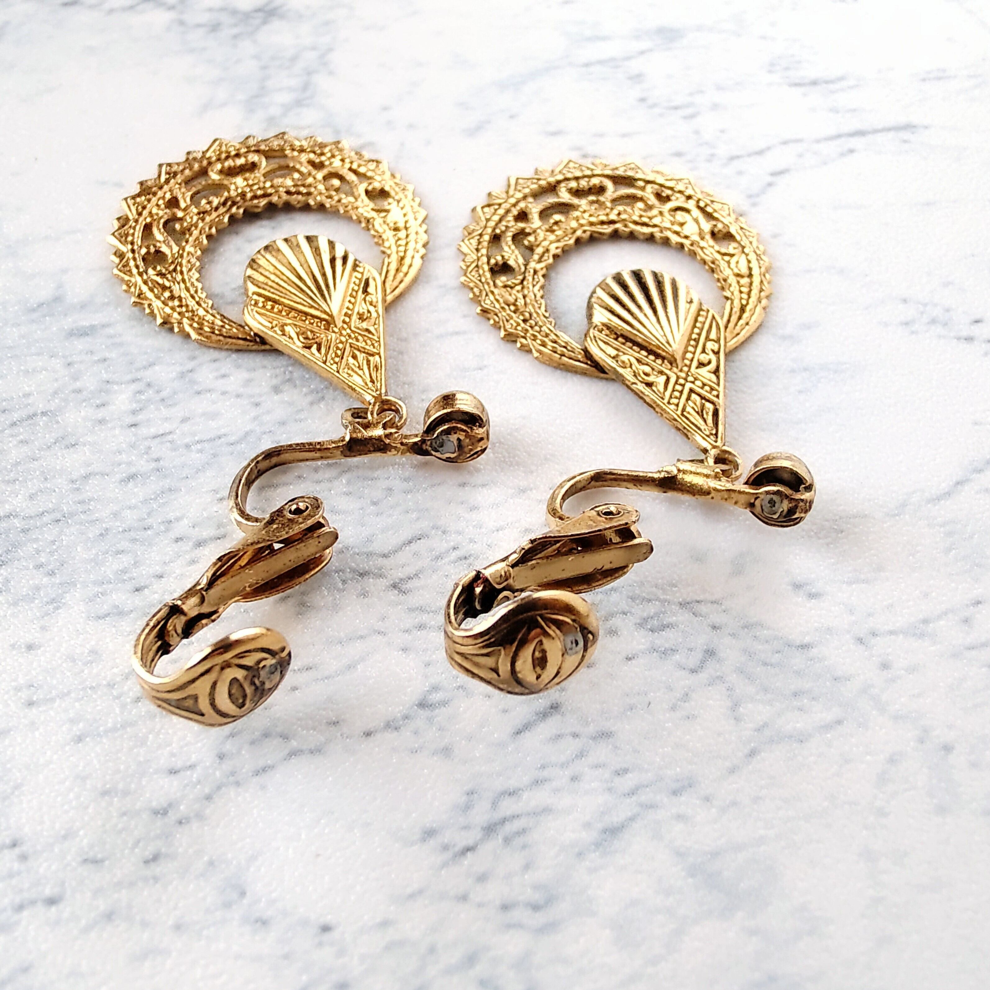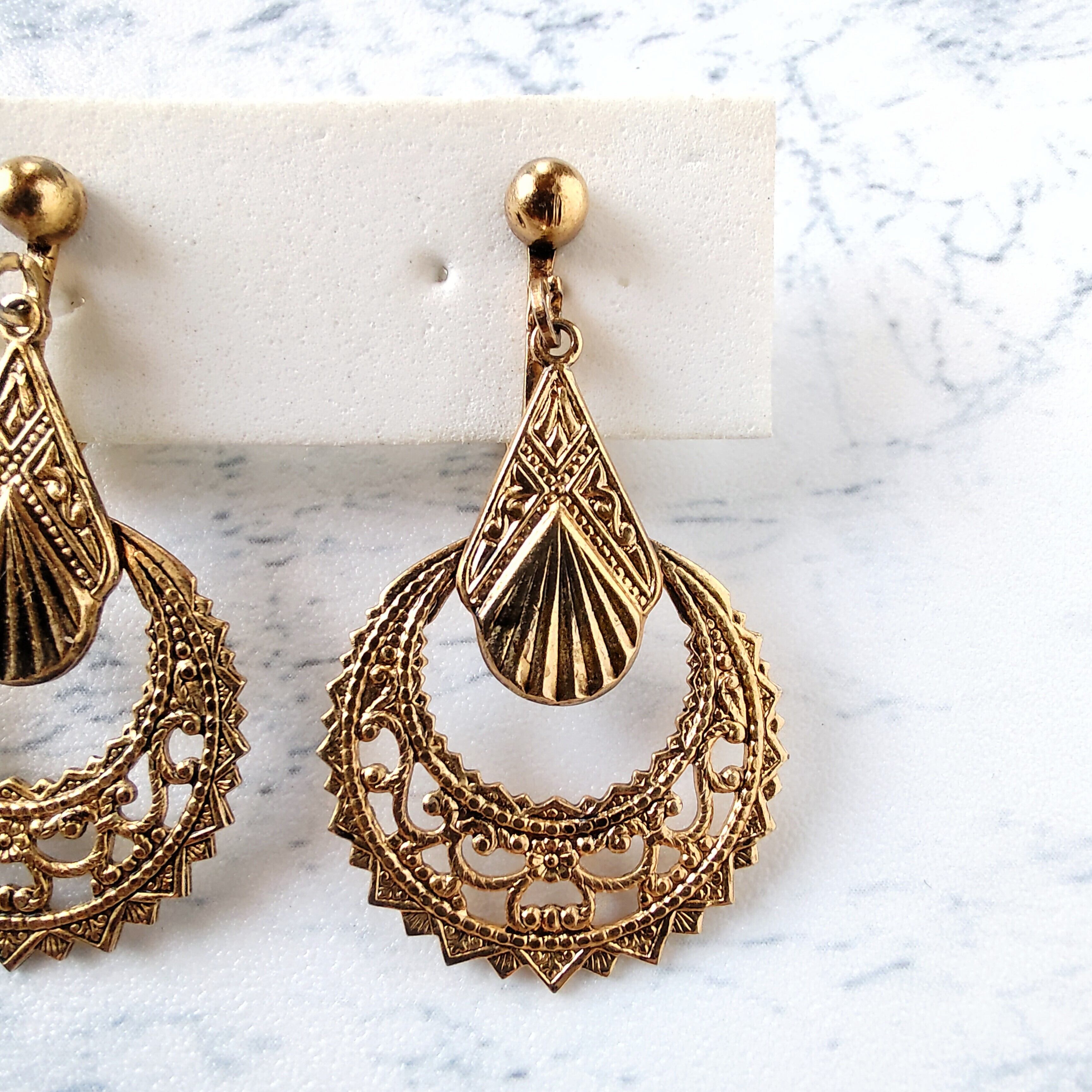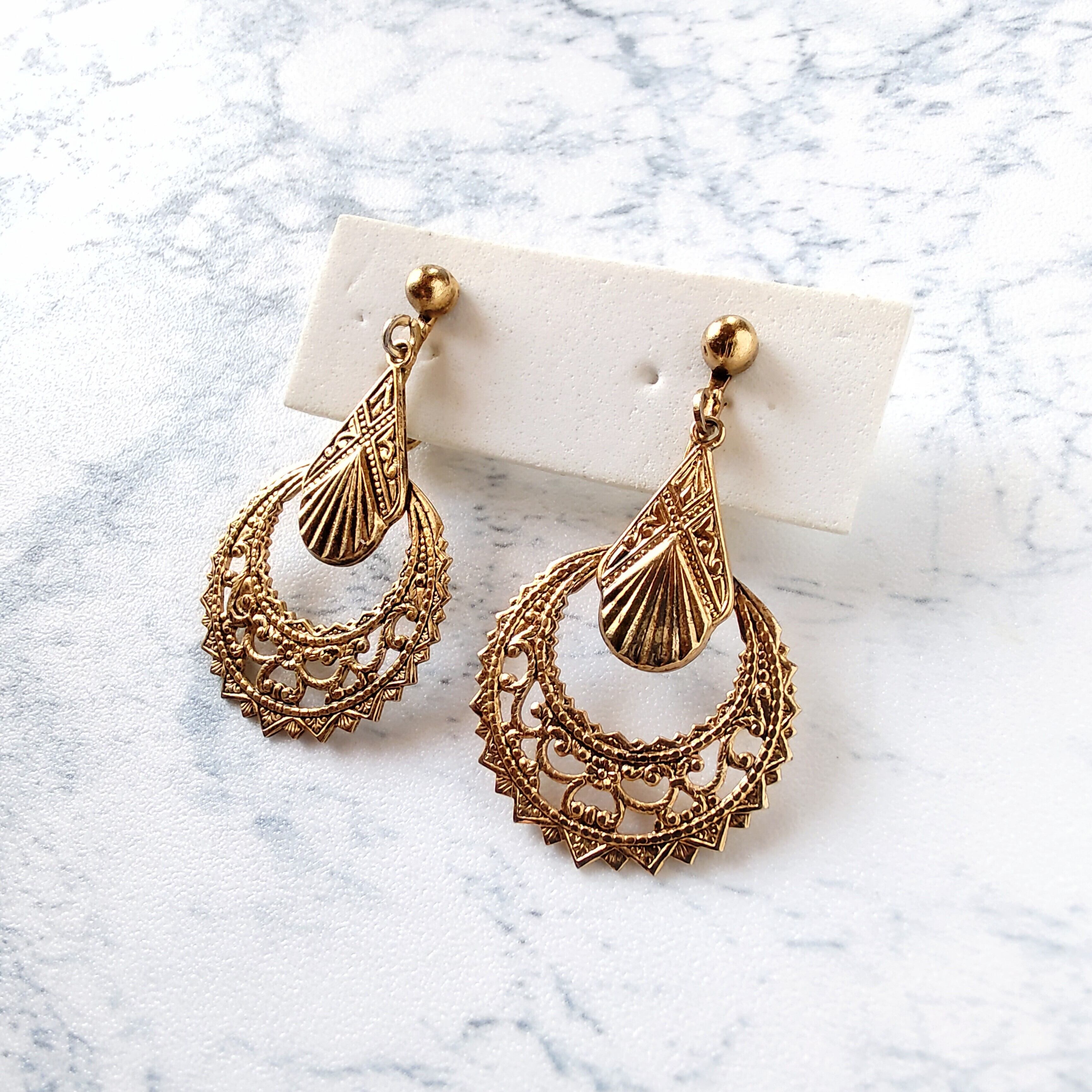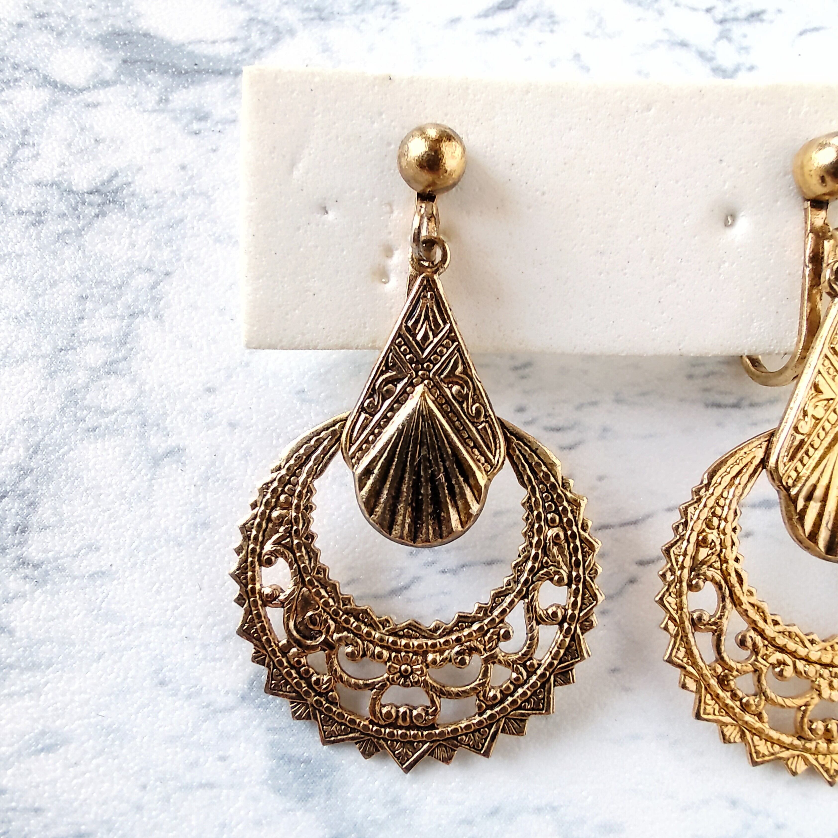 gold openwork oriental dangle vintage earrings ヴィンテージイヤリング