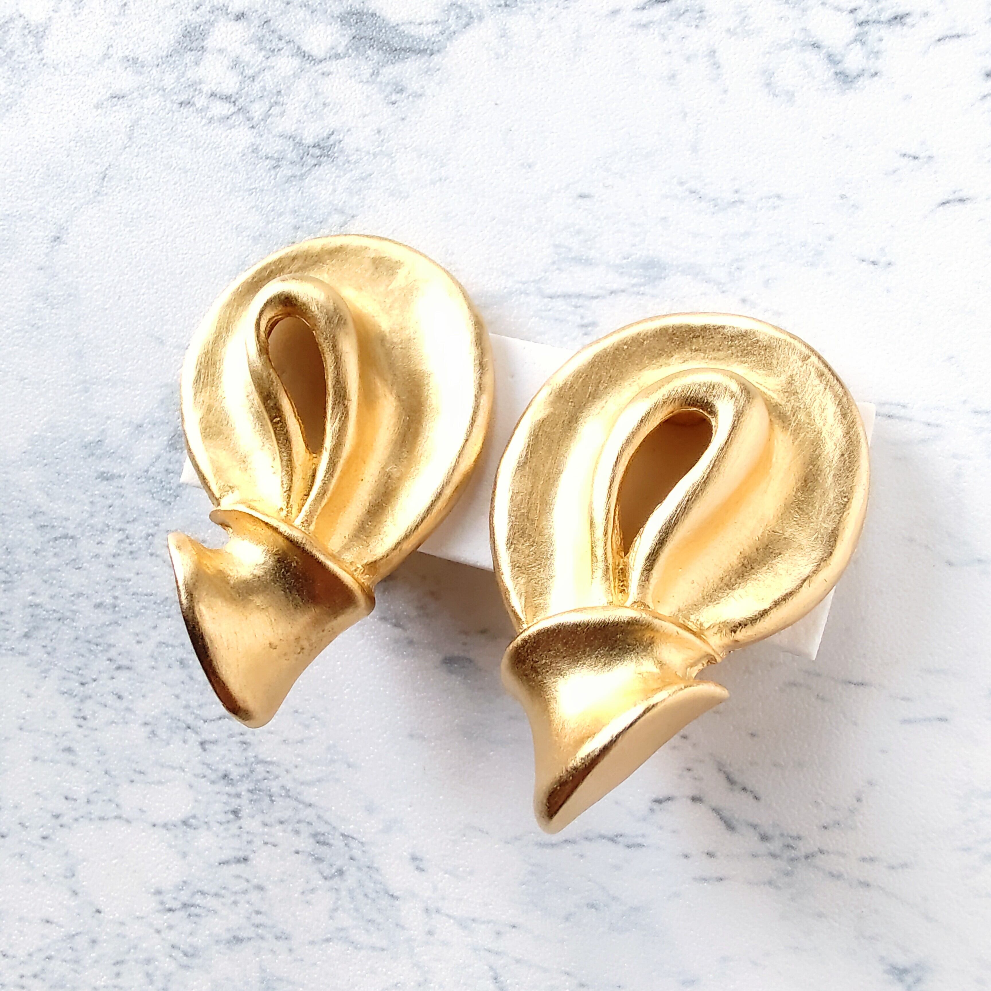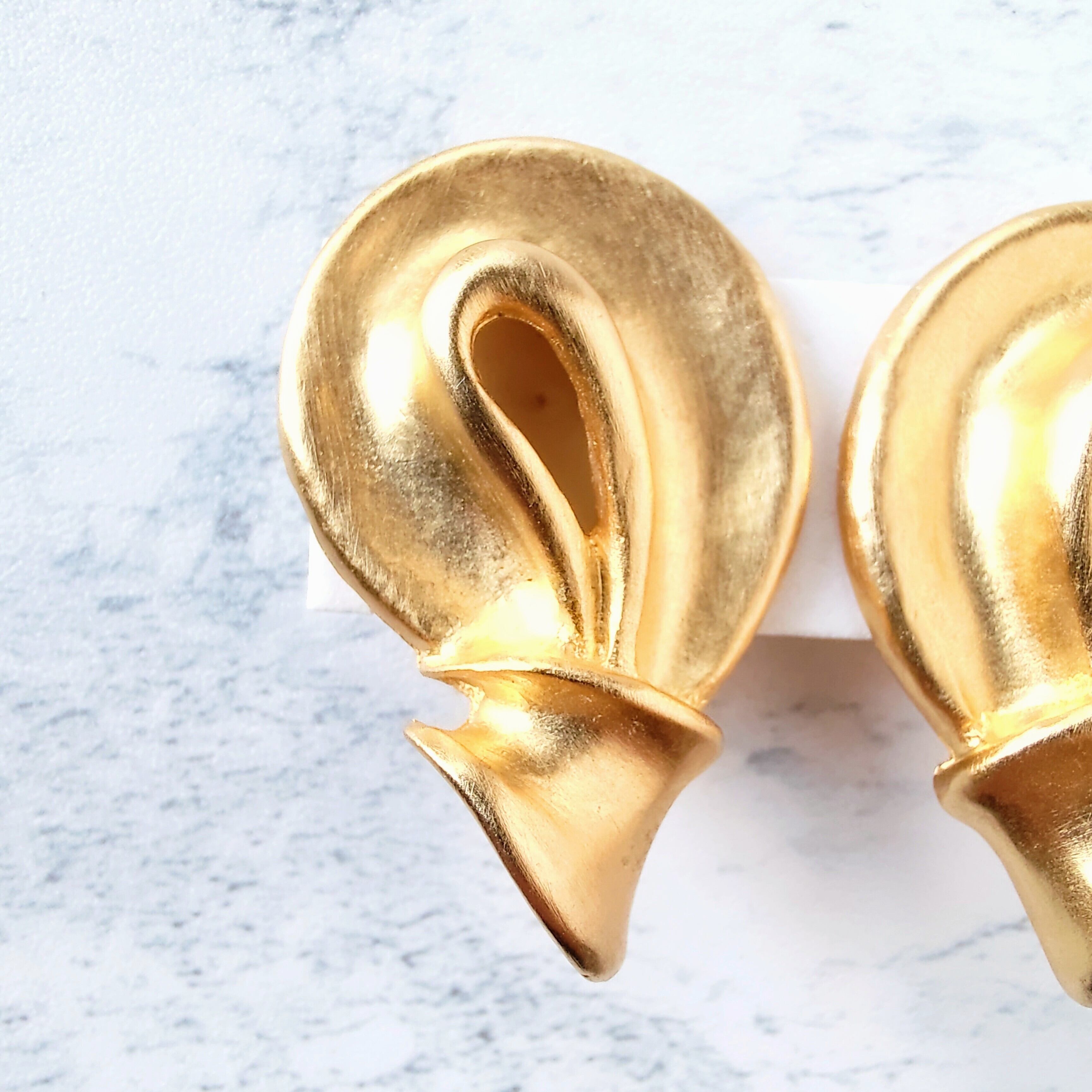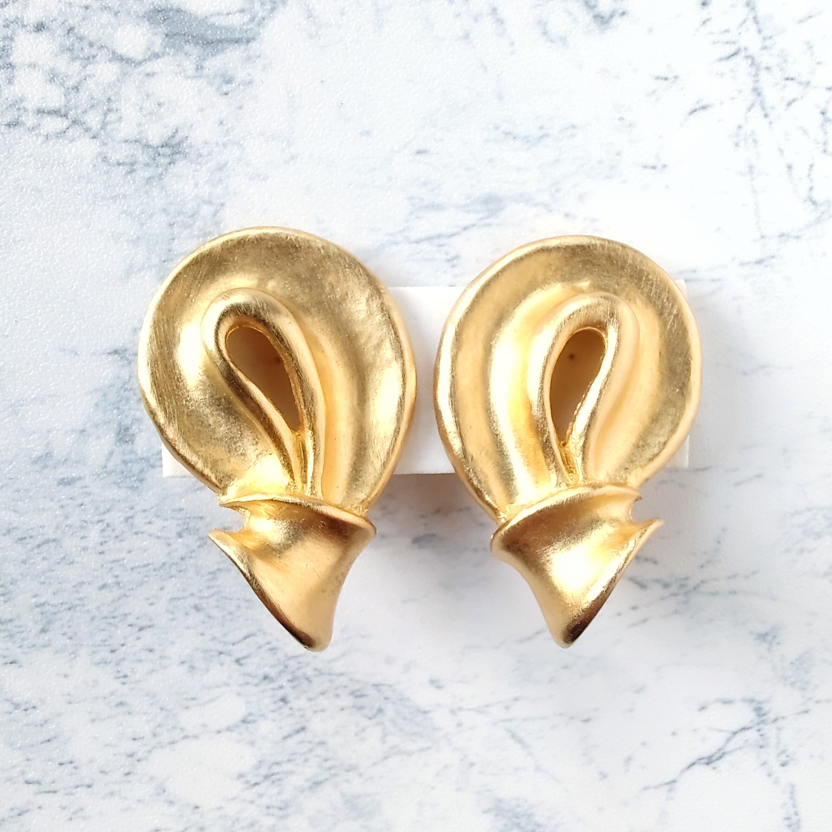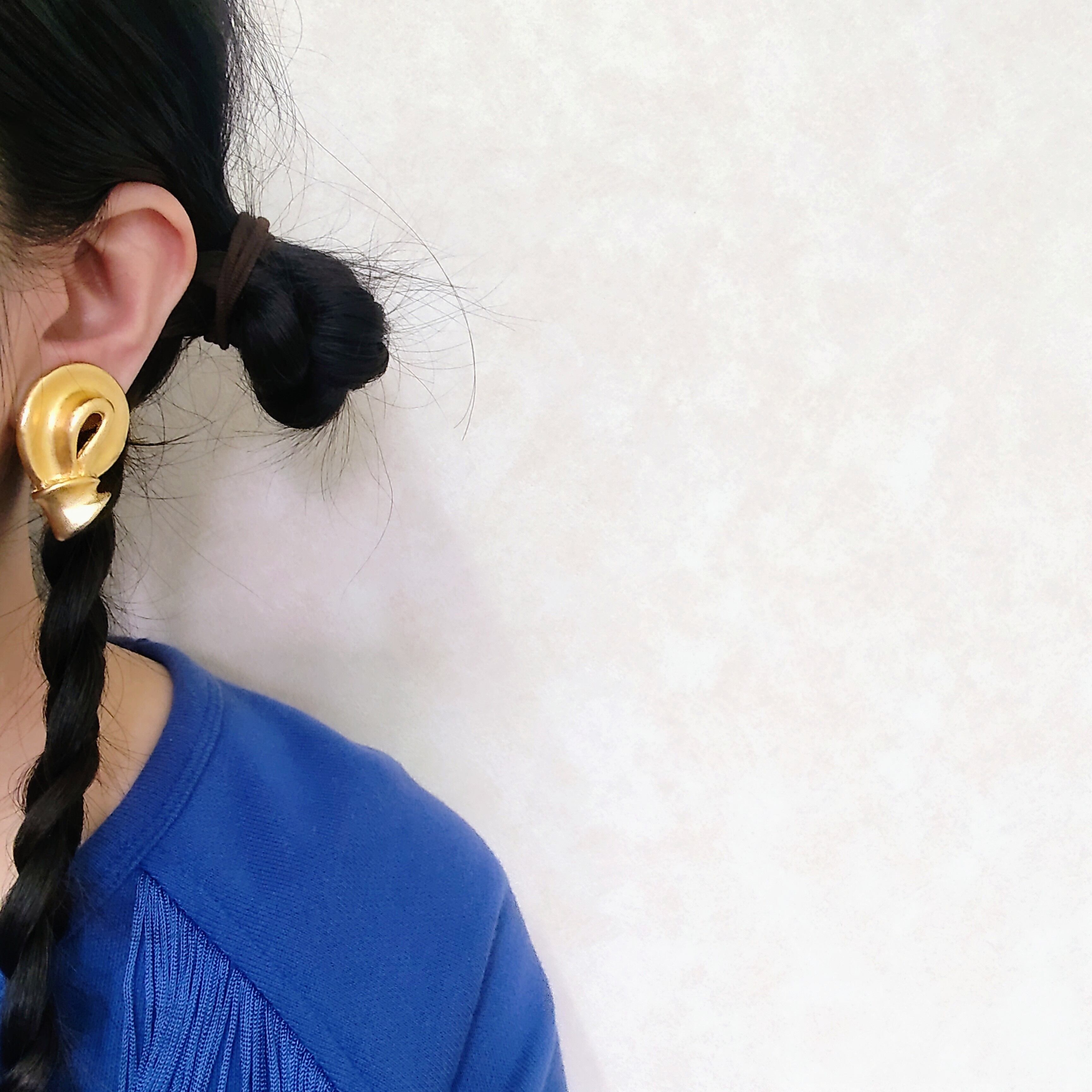 matte gold ribbon knot vintage earrings ヴィンテージイヤリング