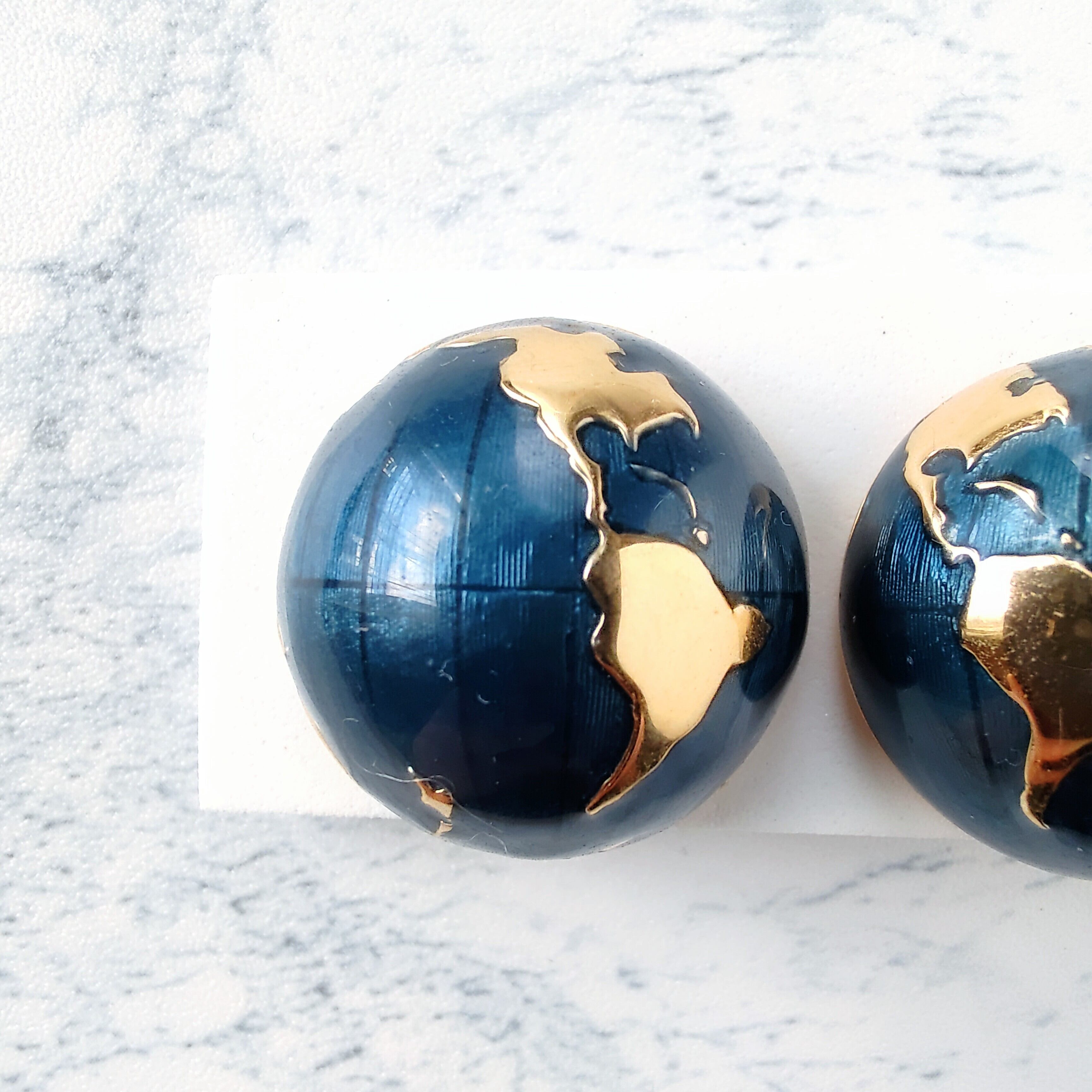 ゴールドメタルの国の模様が左右で違う地球儀がデザインされたヴィンテージイヤリングです。