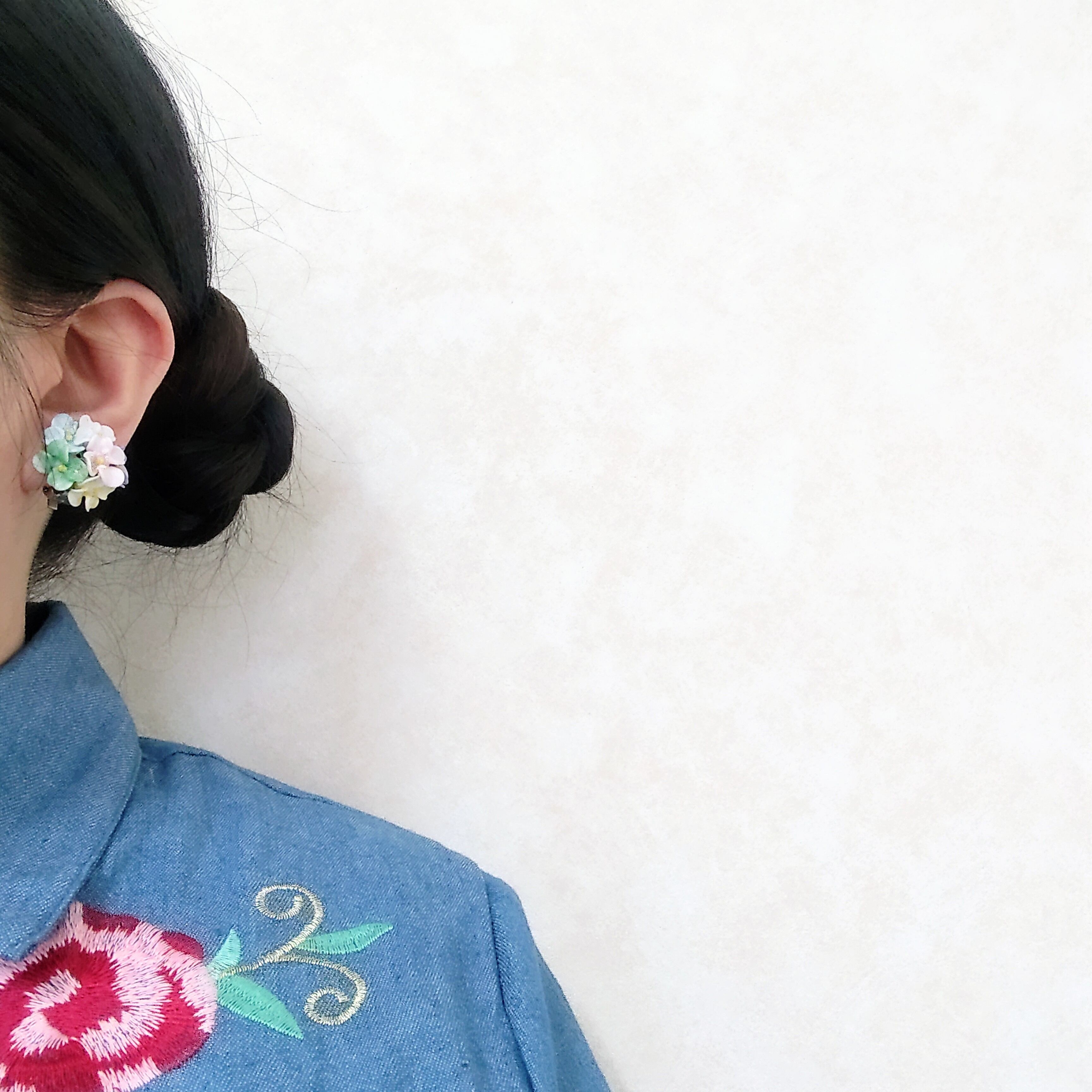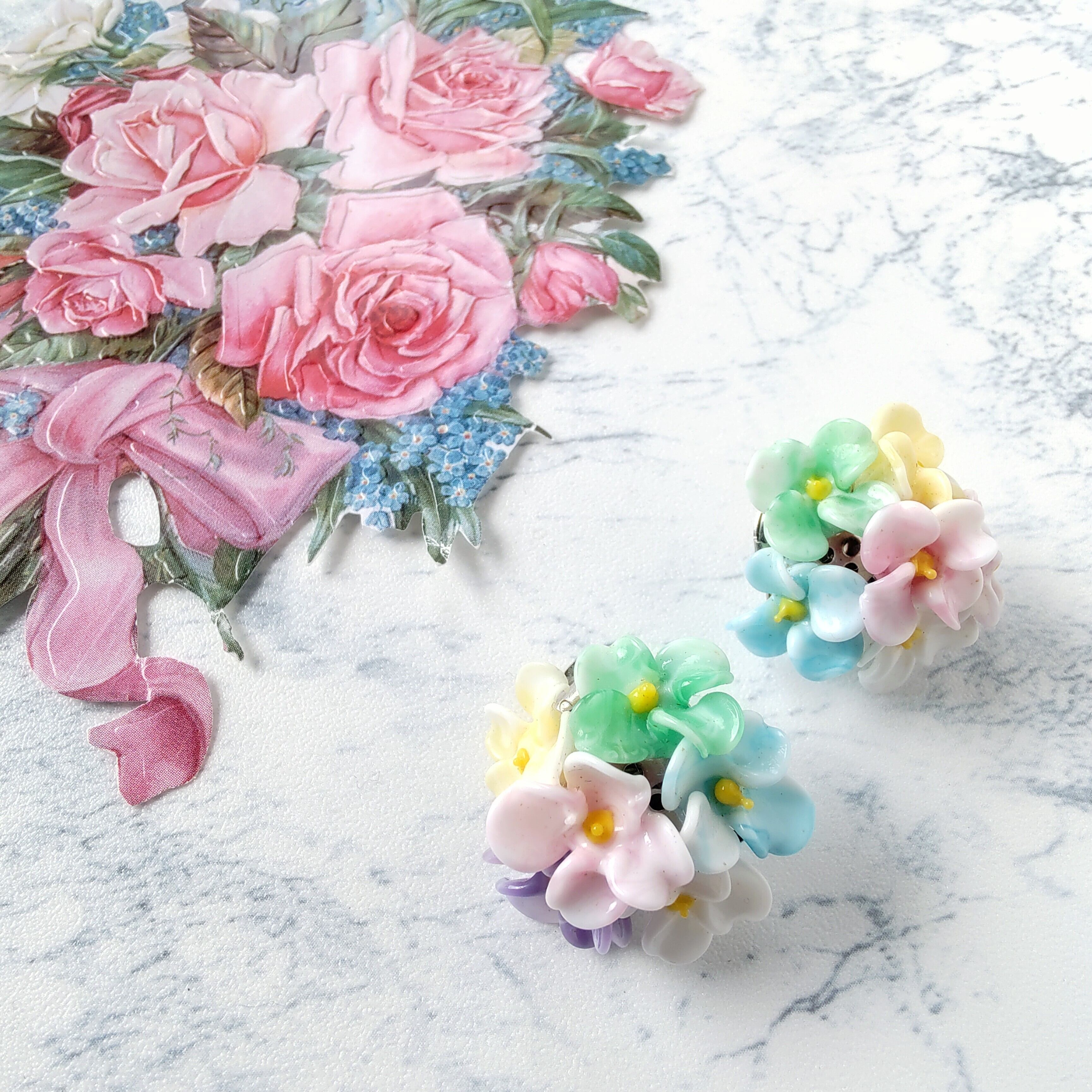 colorful plastic flower cluster vintage earrings ヴィンテージイヤリング