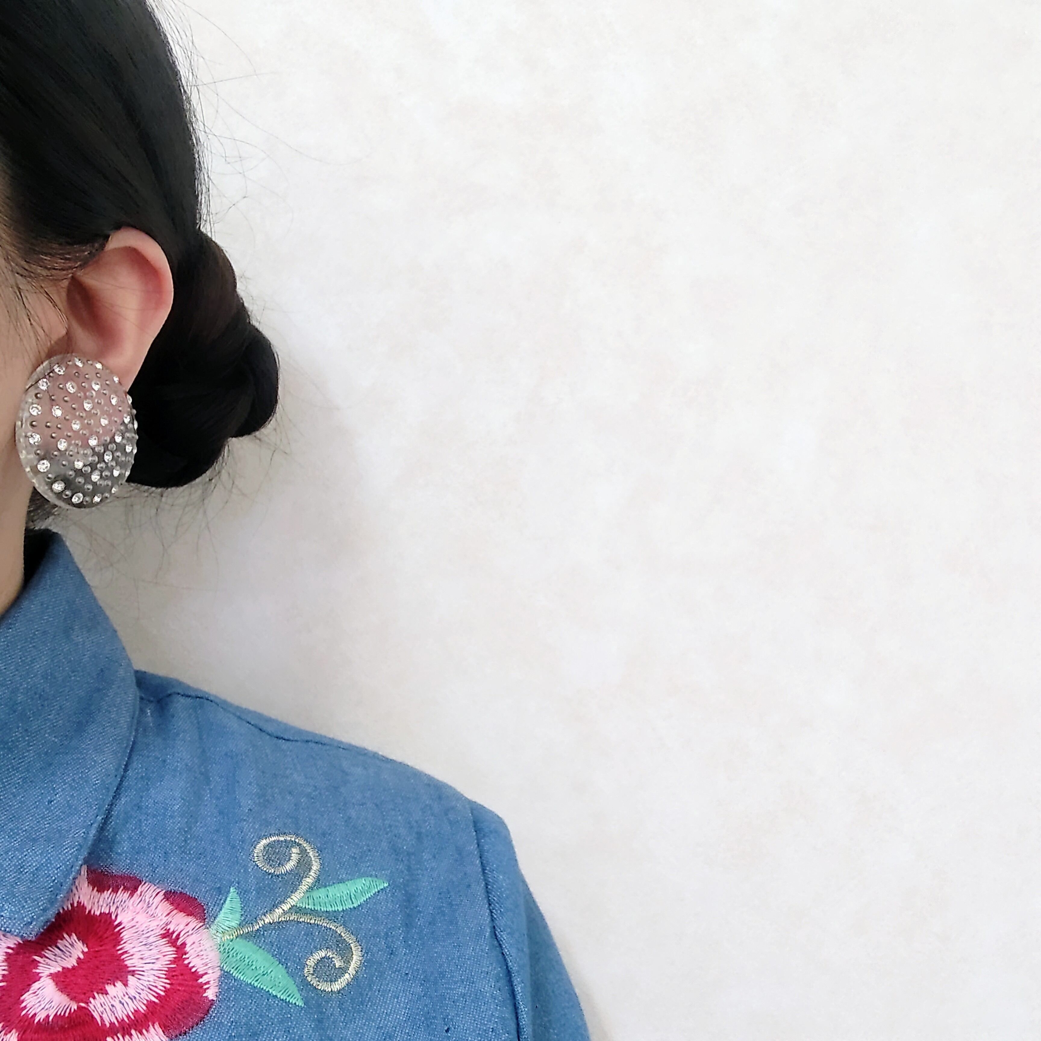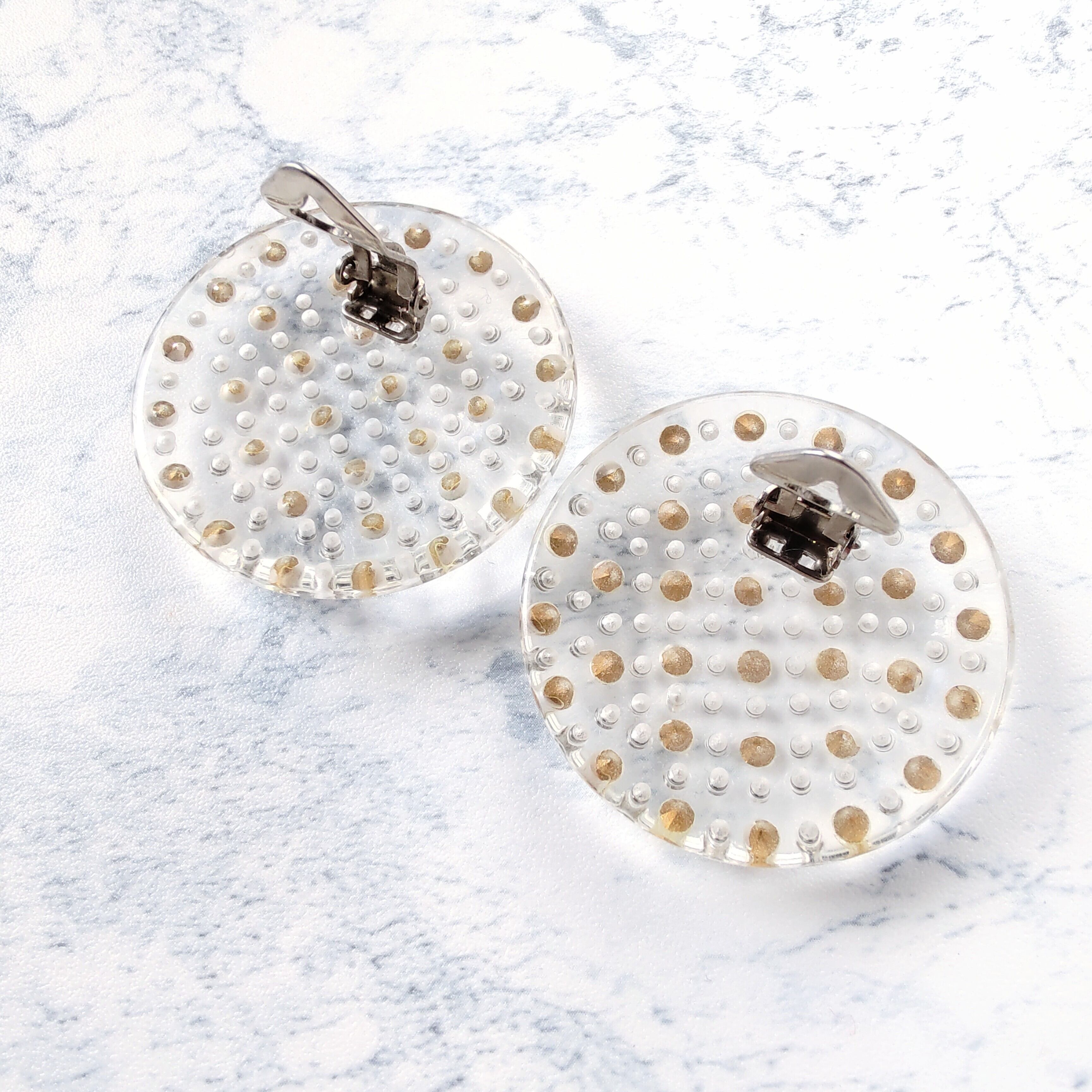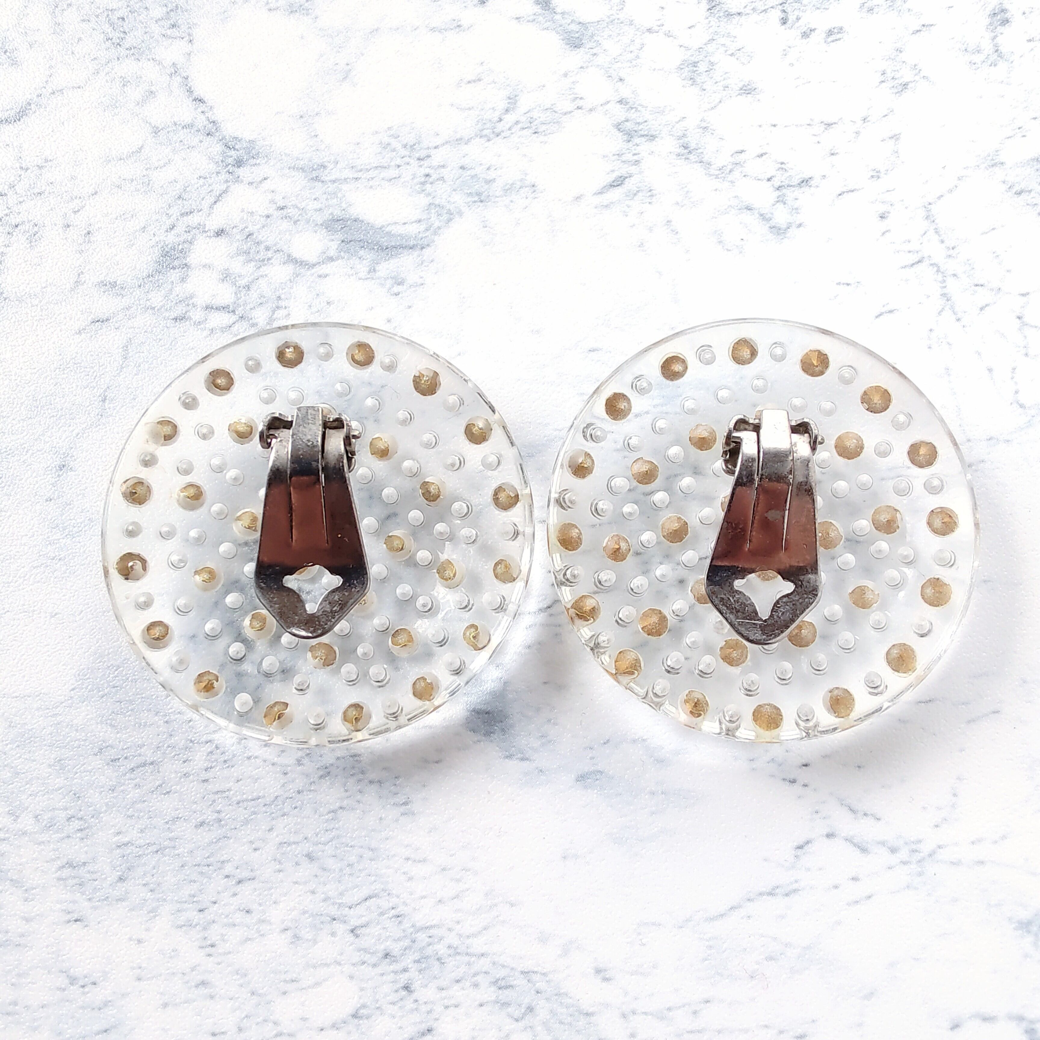 clear plastic round clear rhinestone vintage earrings ヴィンテージイヤリング