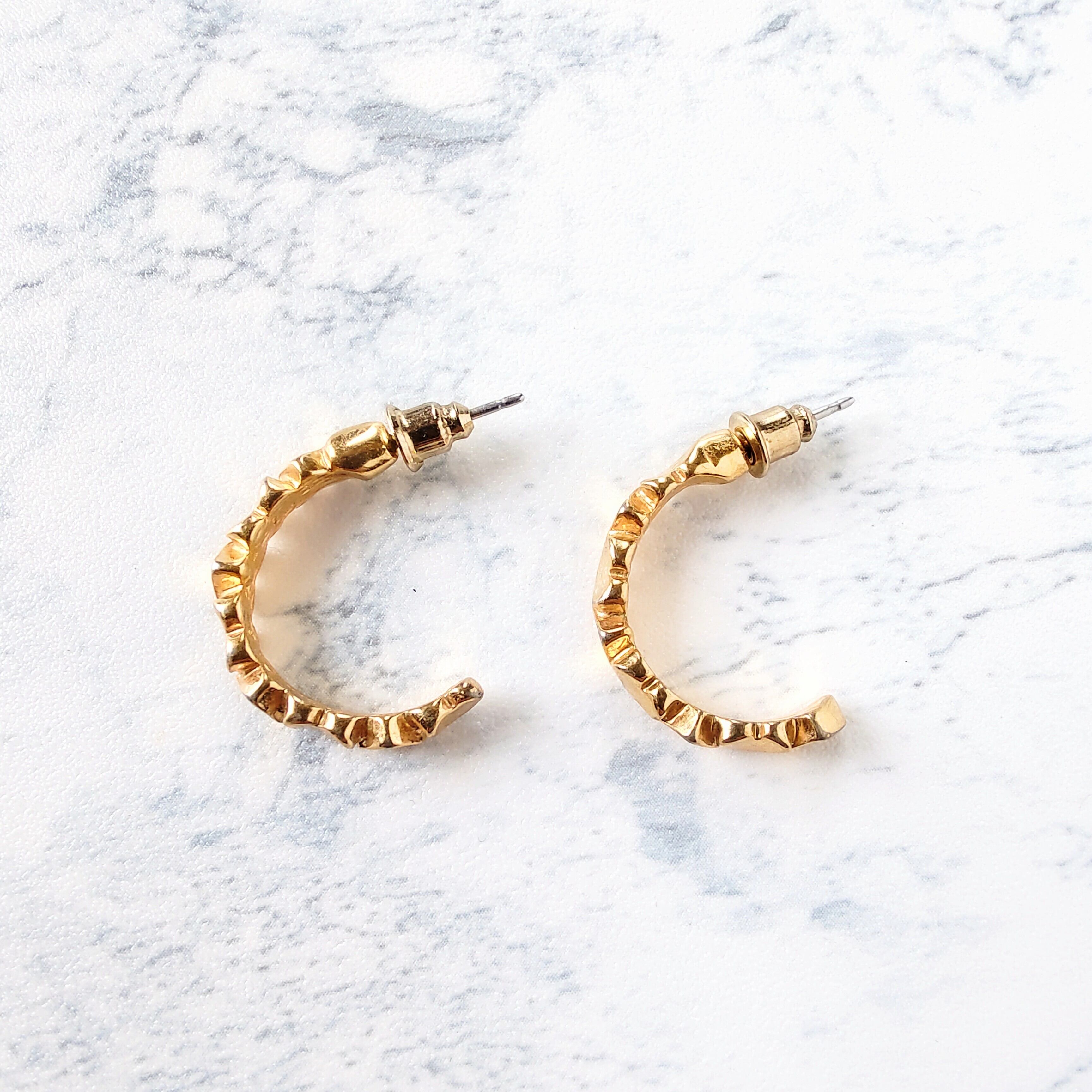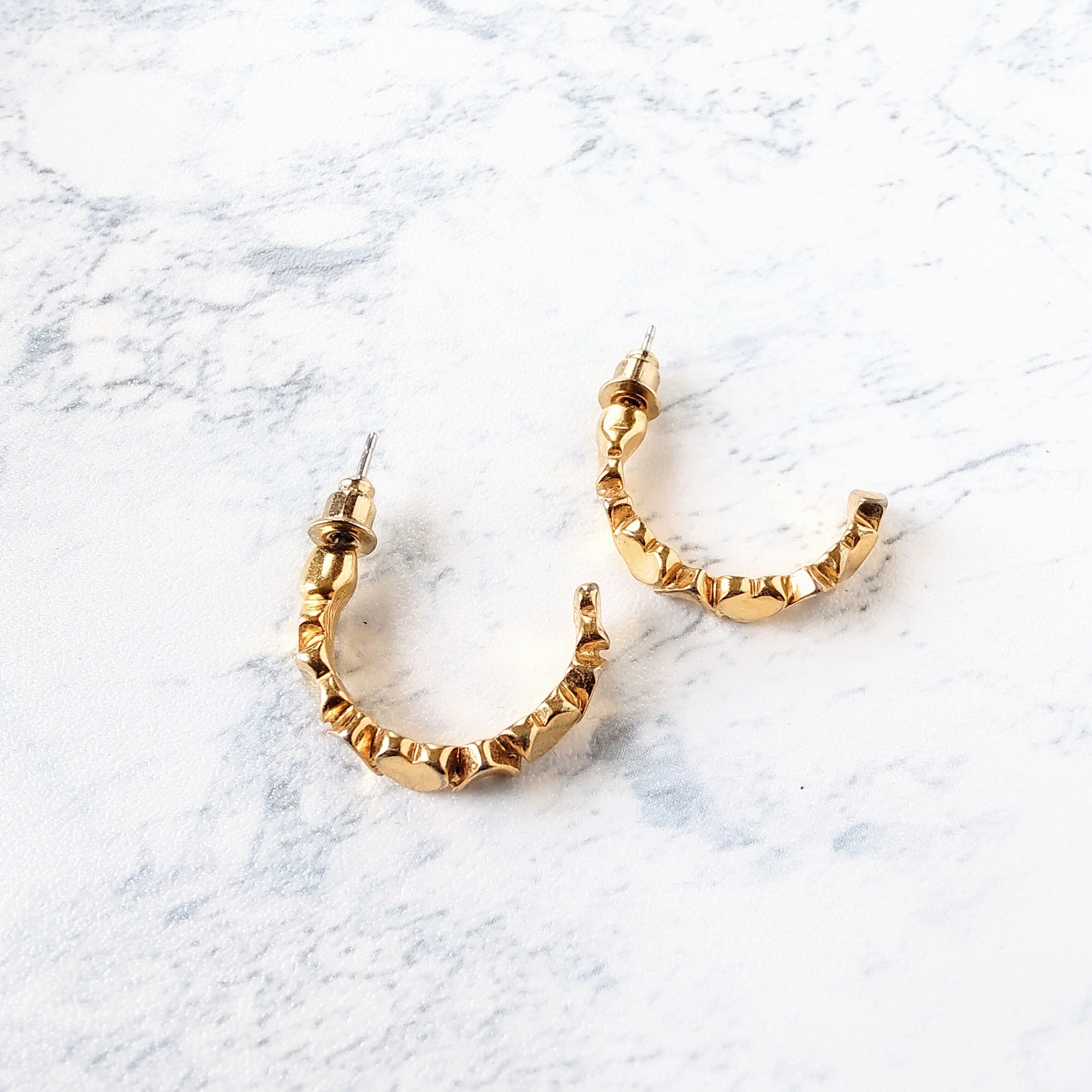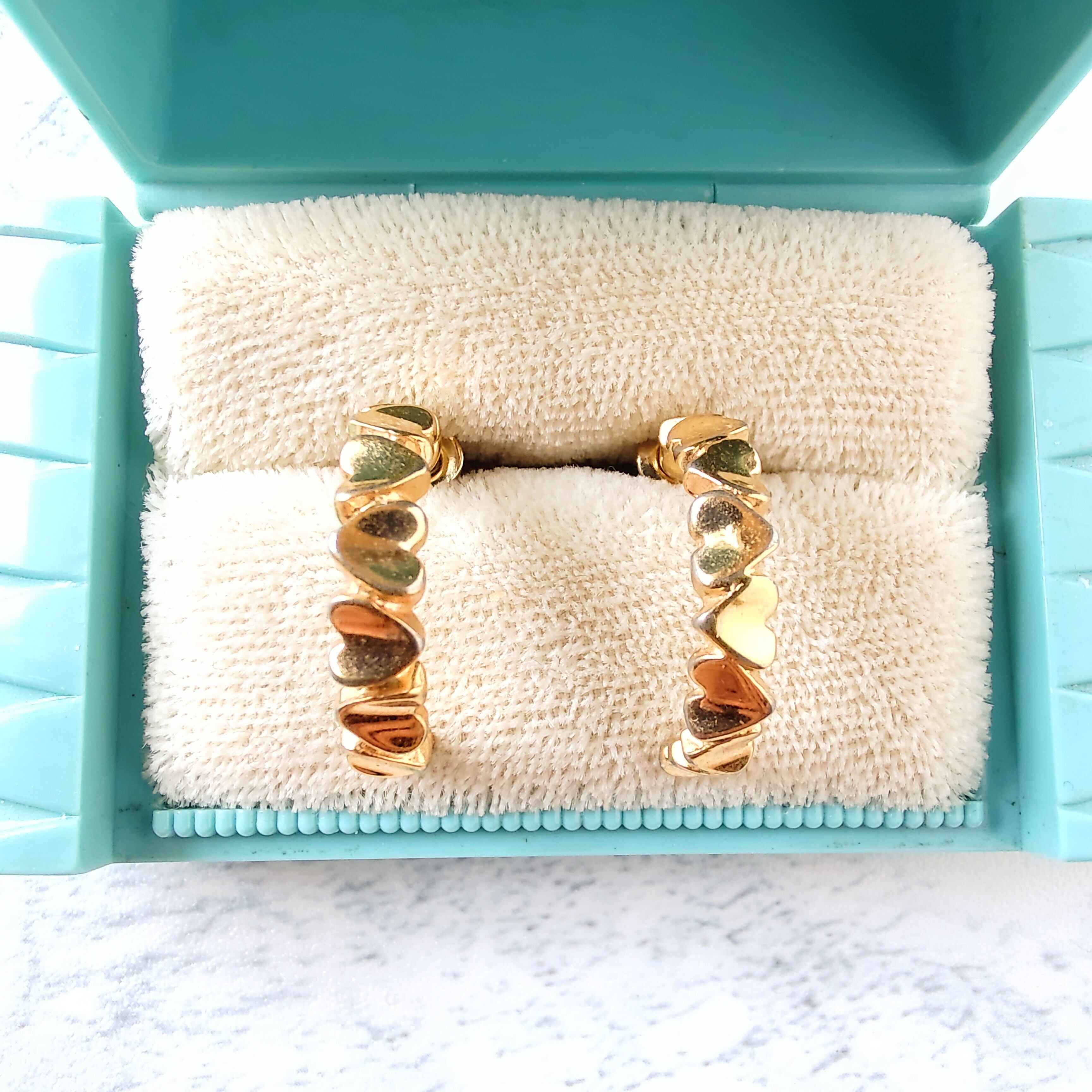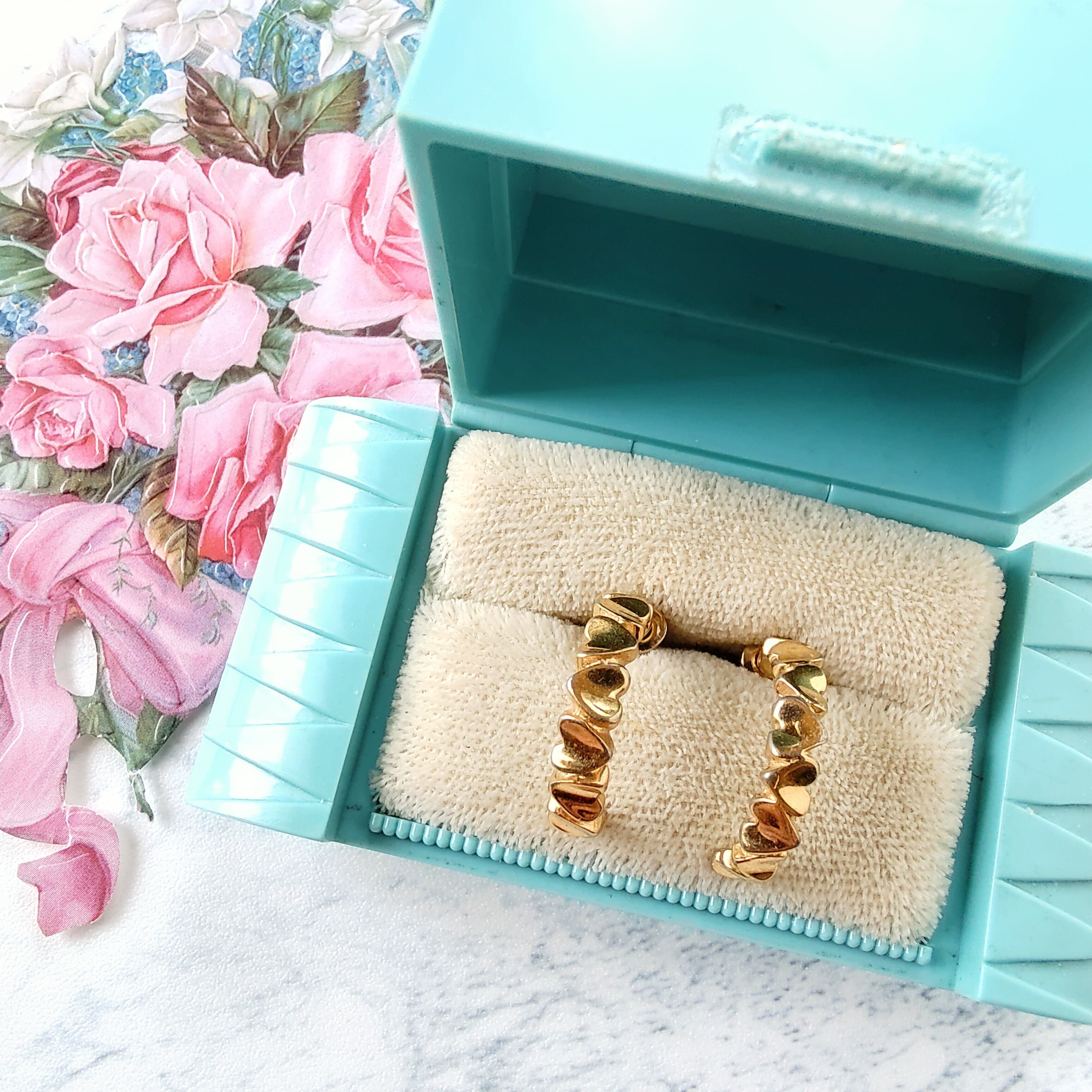 ゴールドメタルのハートが交互に連なったフープデザインのヴィンテージピアスです。