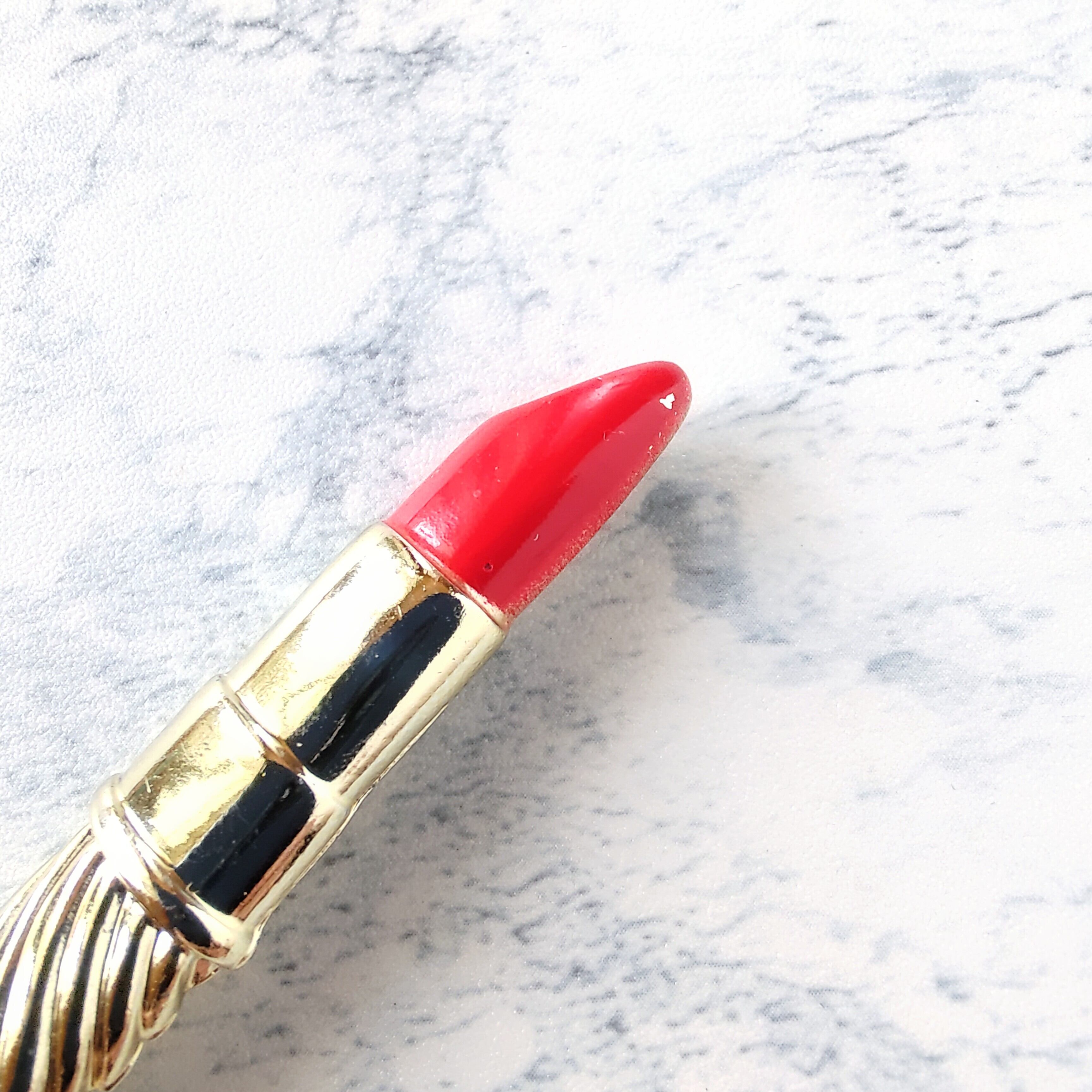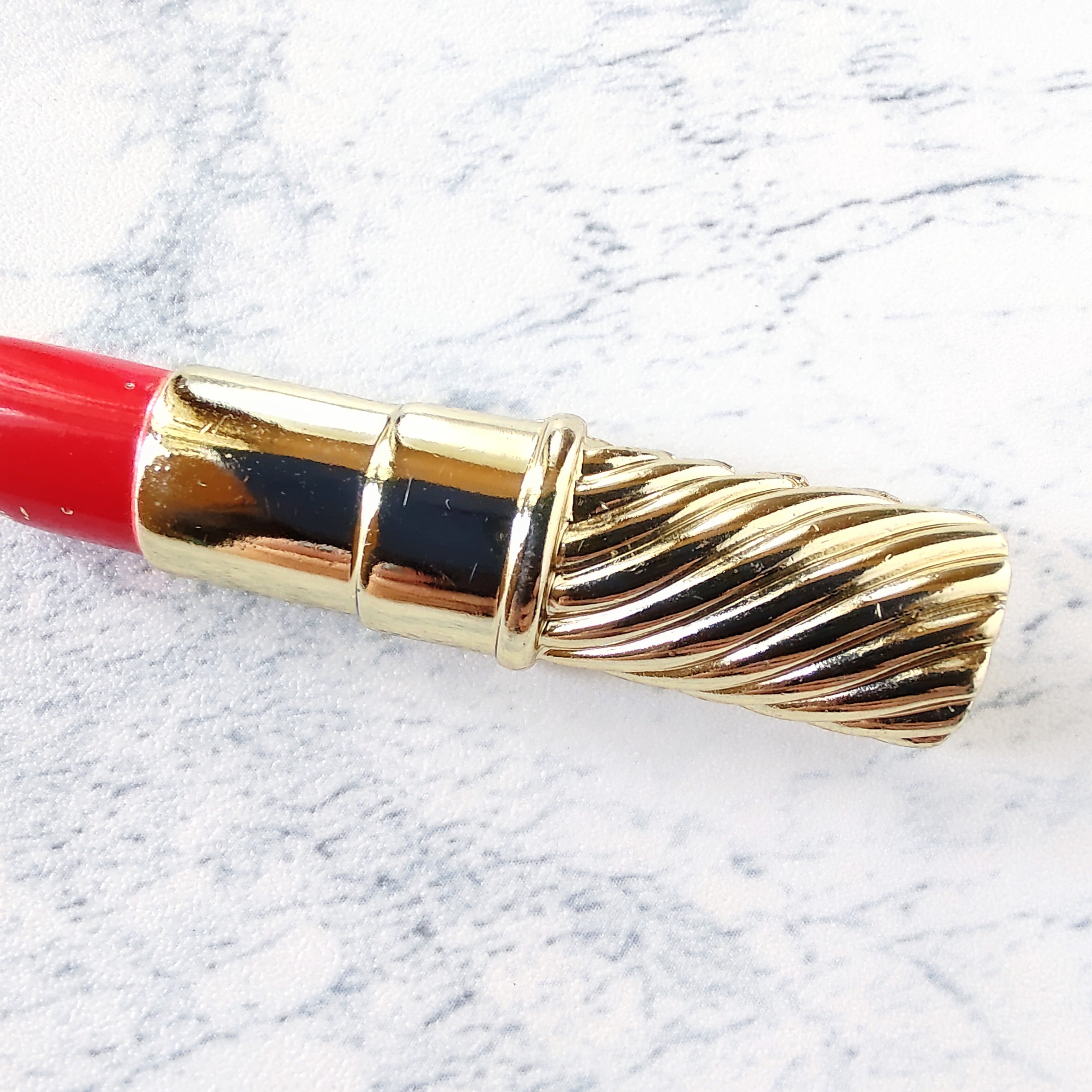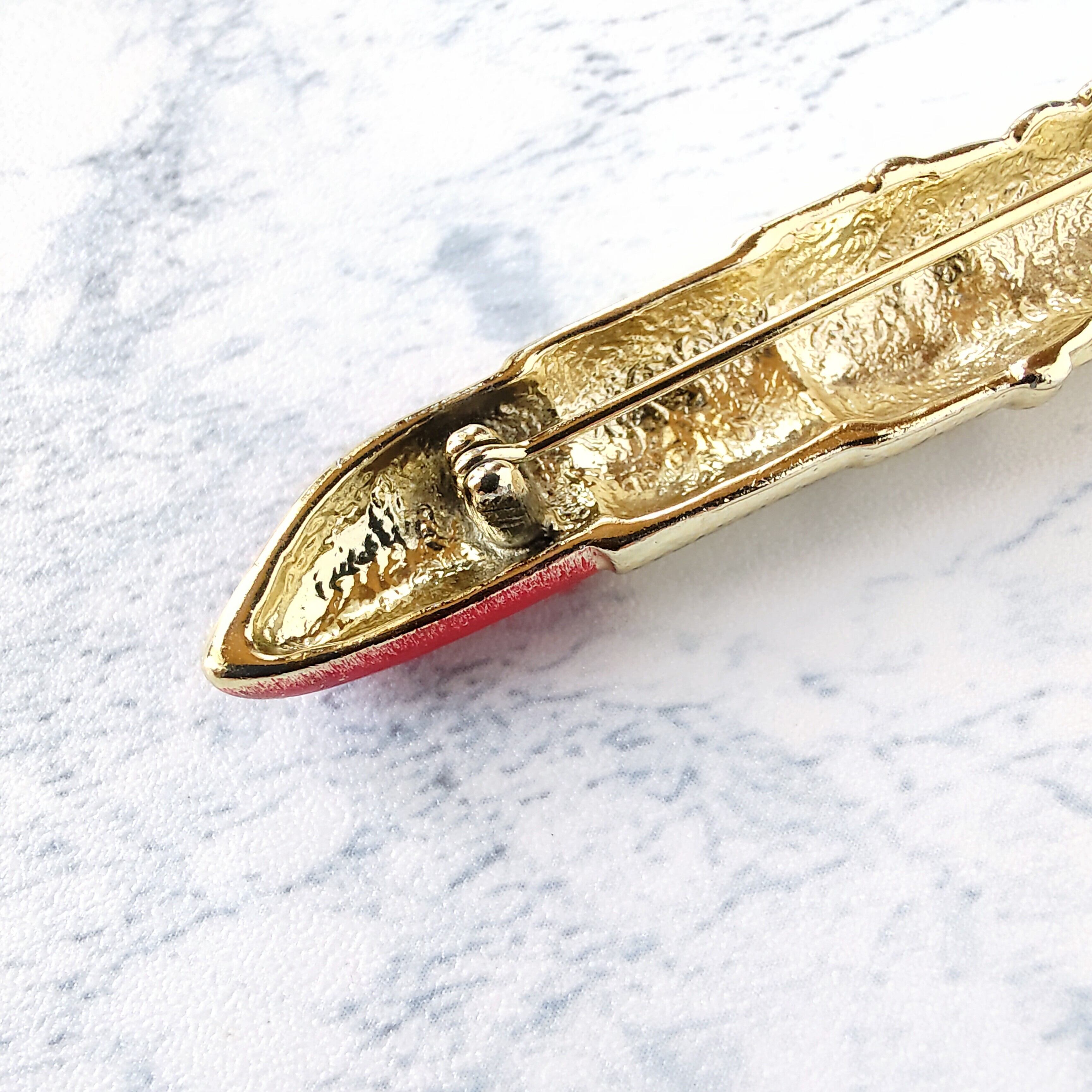 ゴールドメタルにレッドのエナメルで色付けされたリップスティックのヴィンテージブローチです。