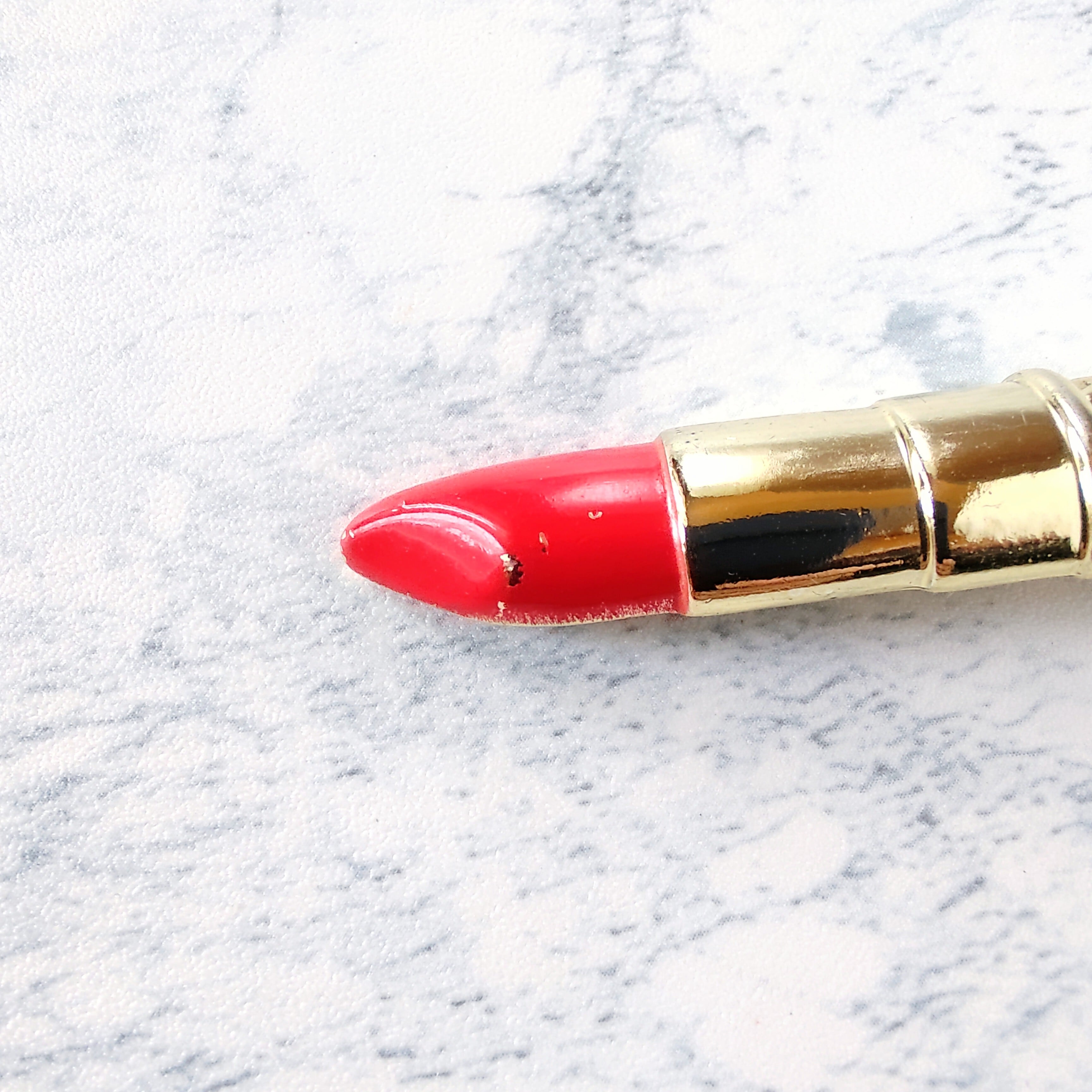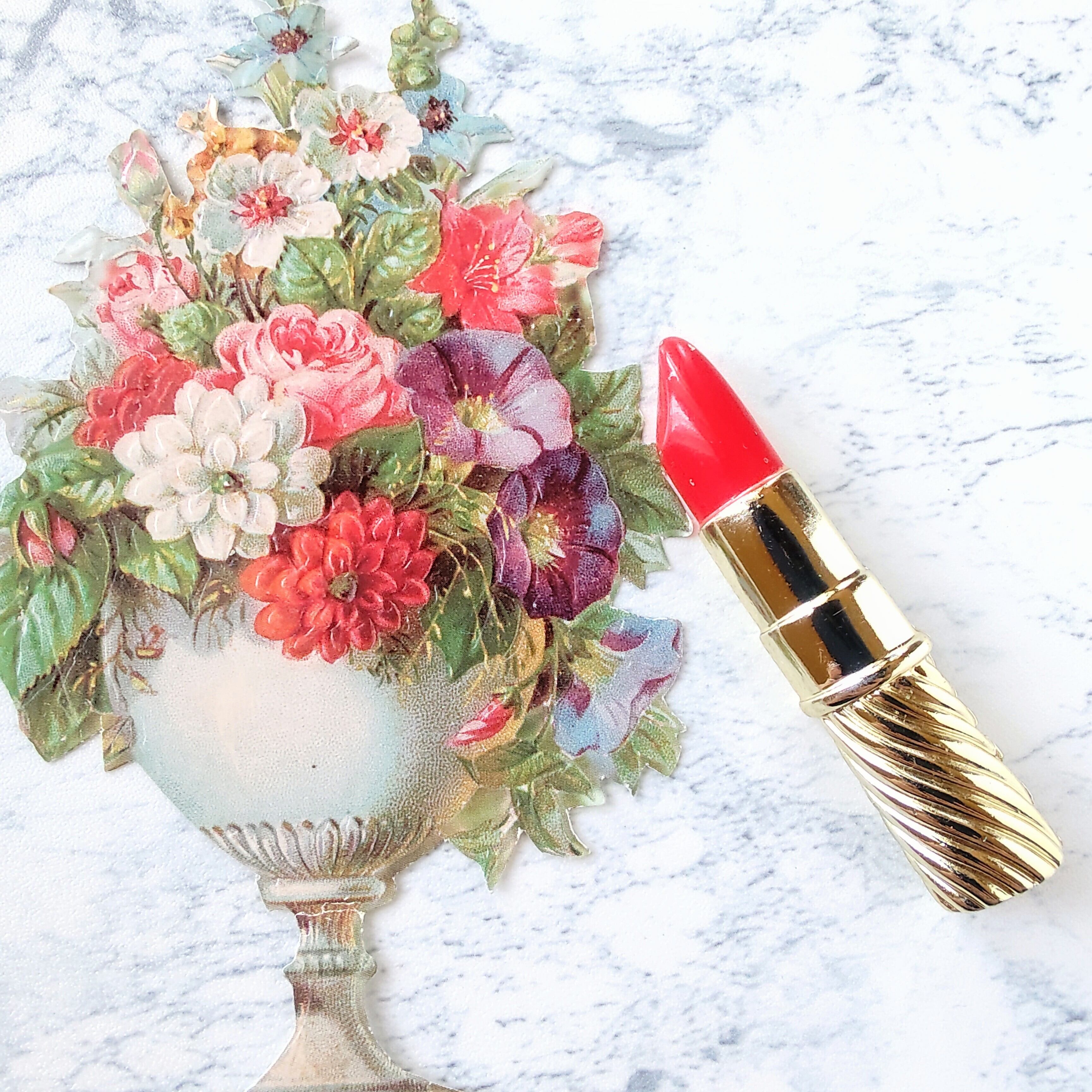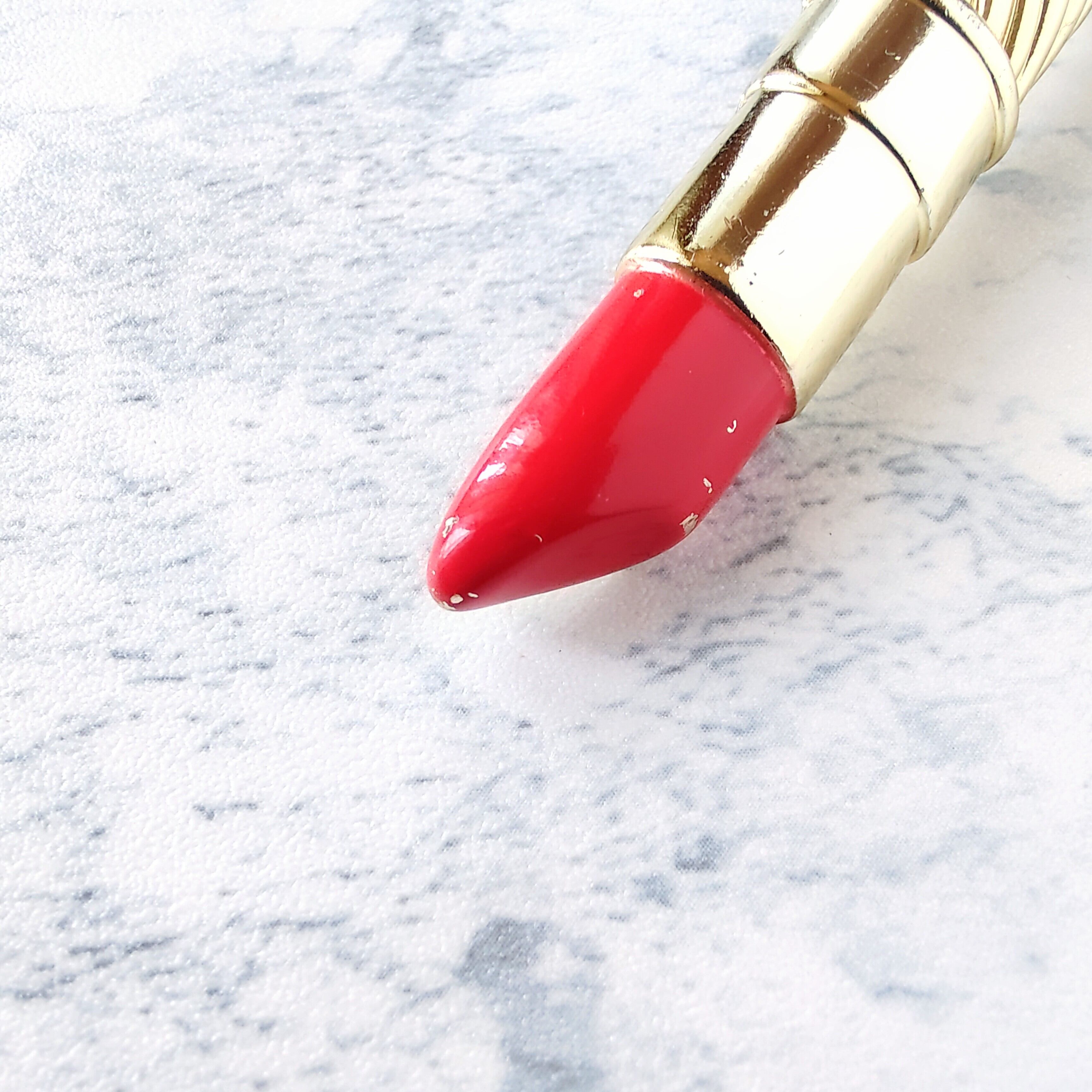 ゴールドメタルにレッドのエナメルで色付けされたリップスティックのヴィンテージブローチです。