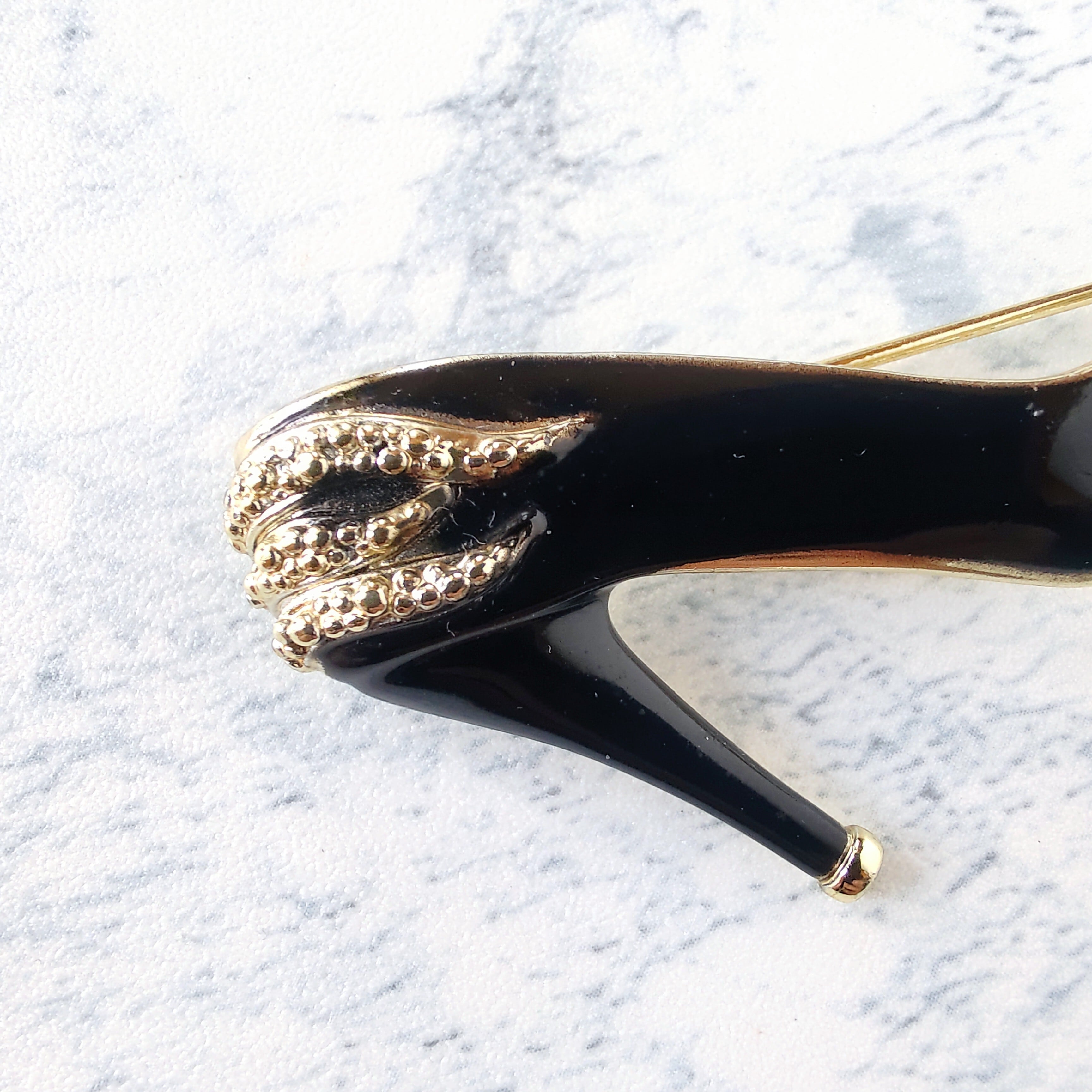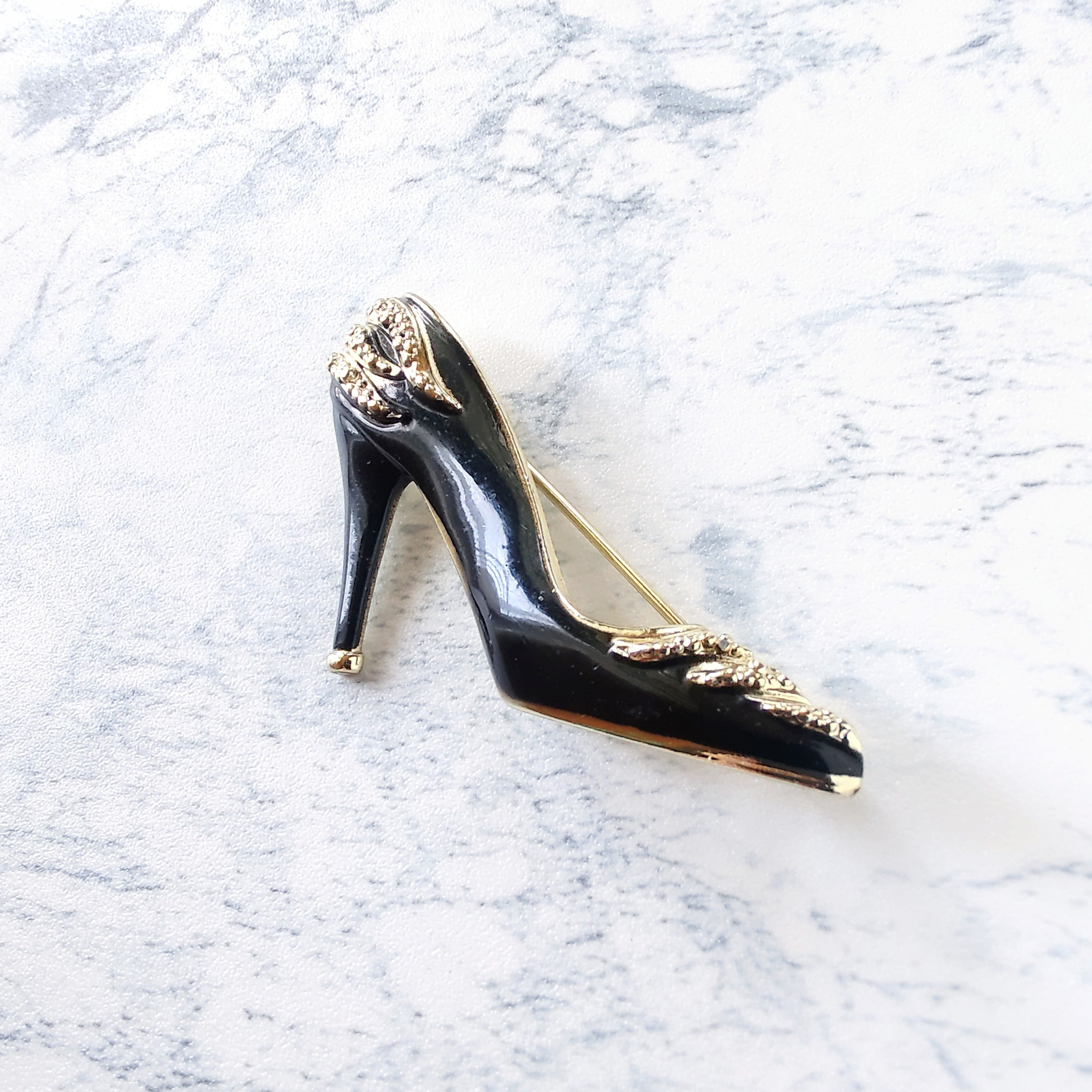 《AJC》 black enamel high heel shoe vintage brooch エージェイシー ヴィンテージブローチ