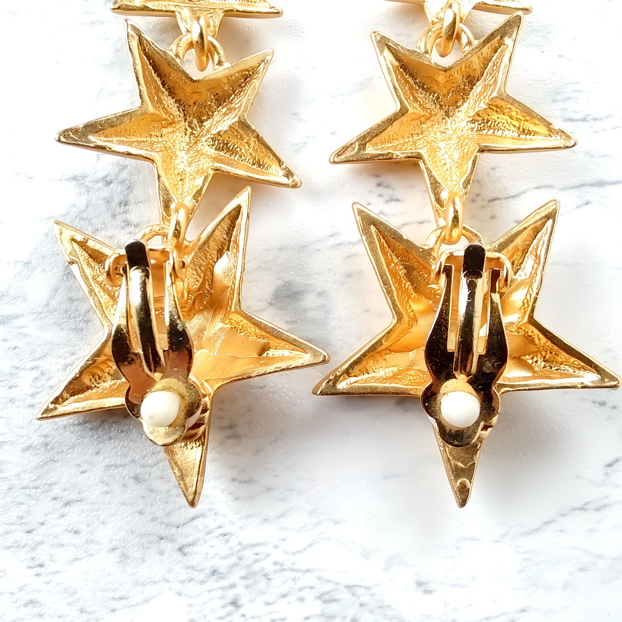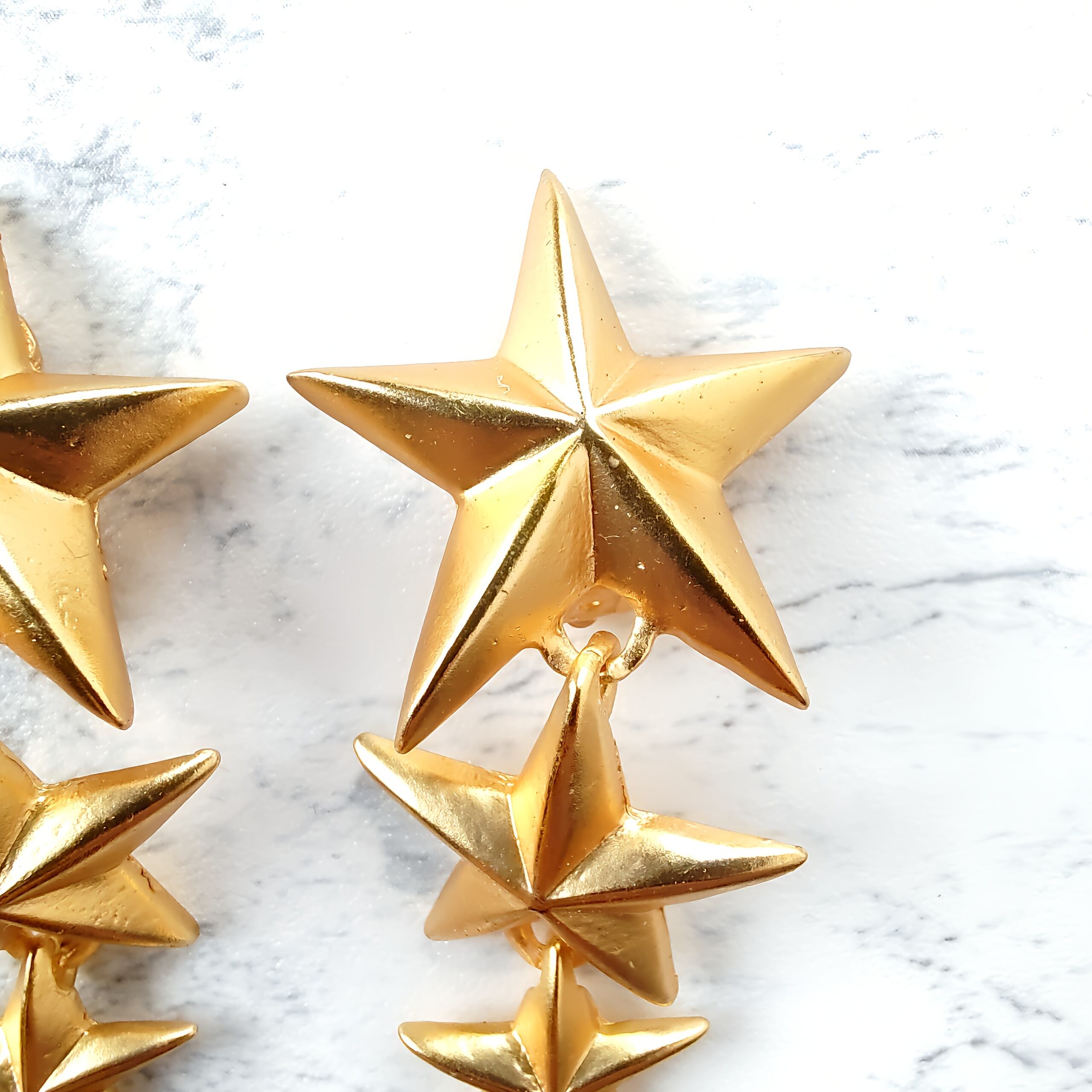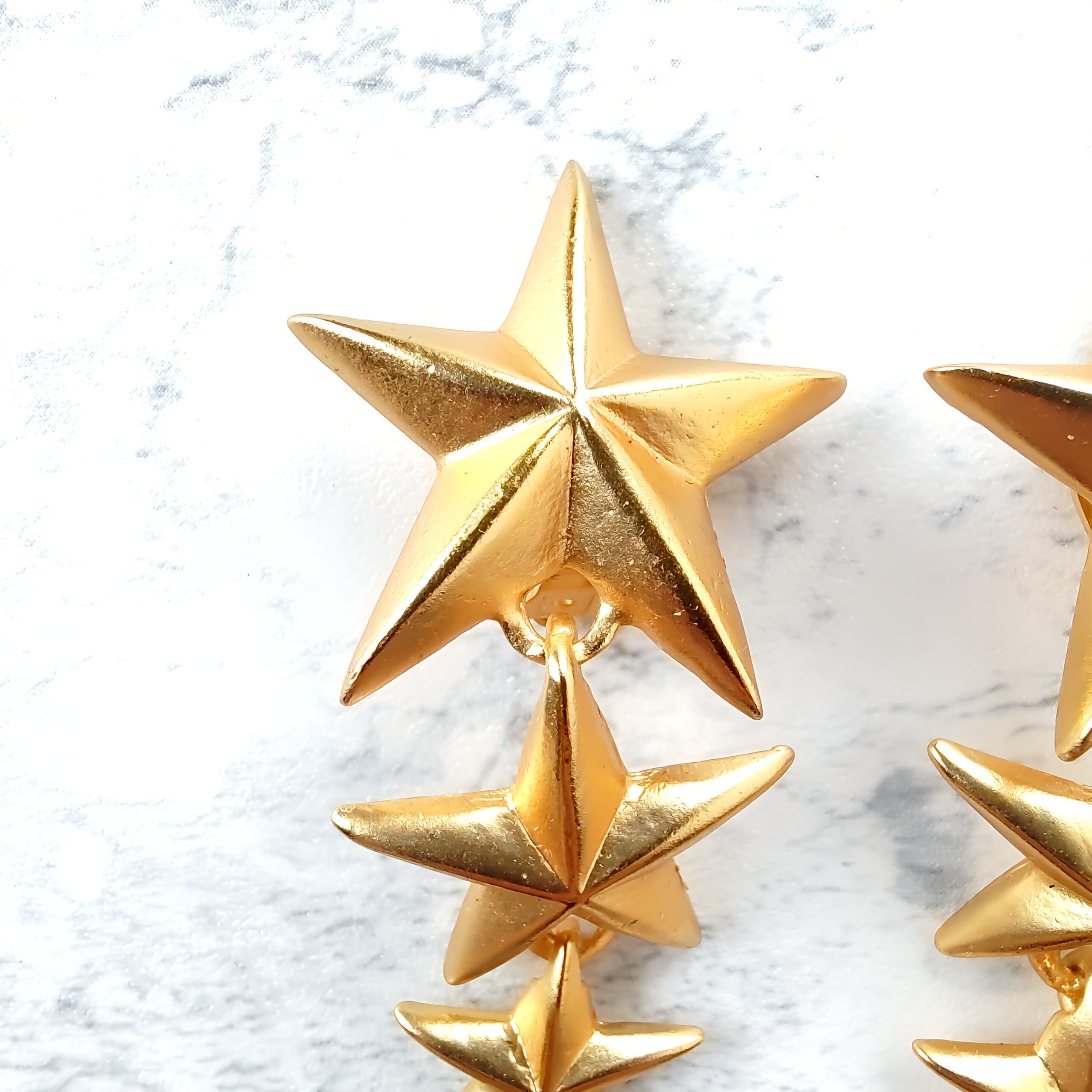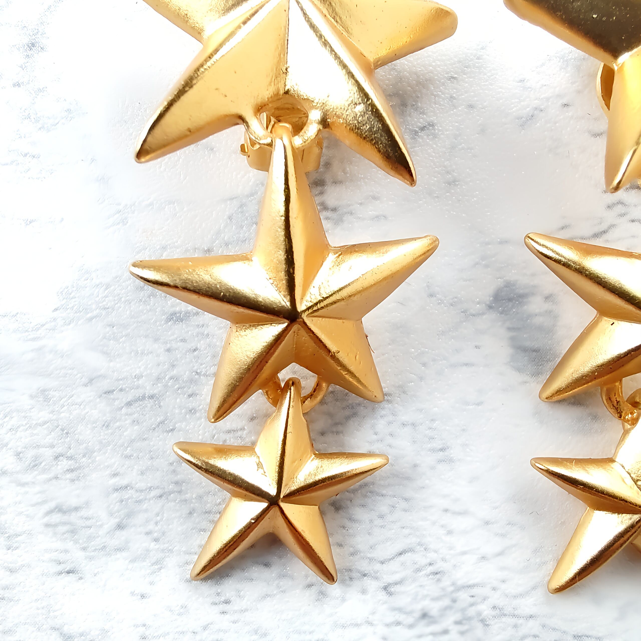 縦に連なったマットゴールドメタルの大、中、小の星が揺れるデザインのヴィンテージイヤリングです。