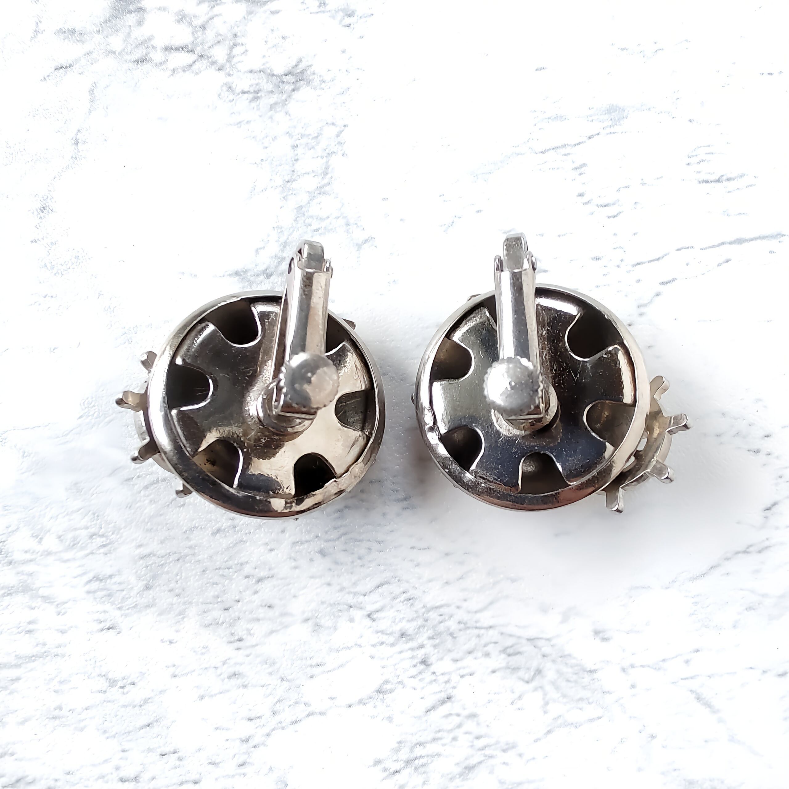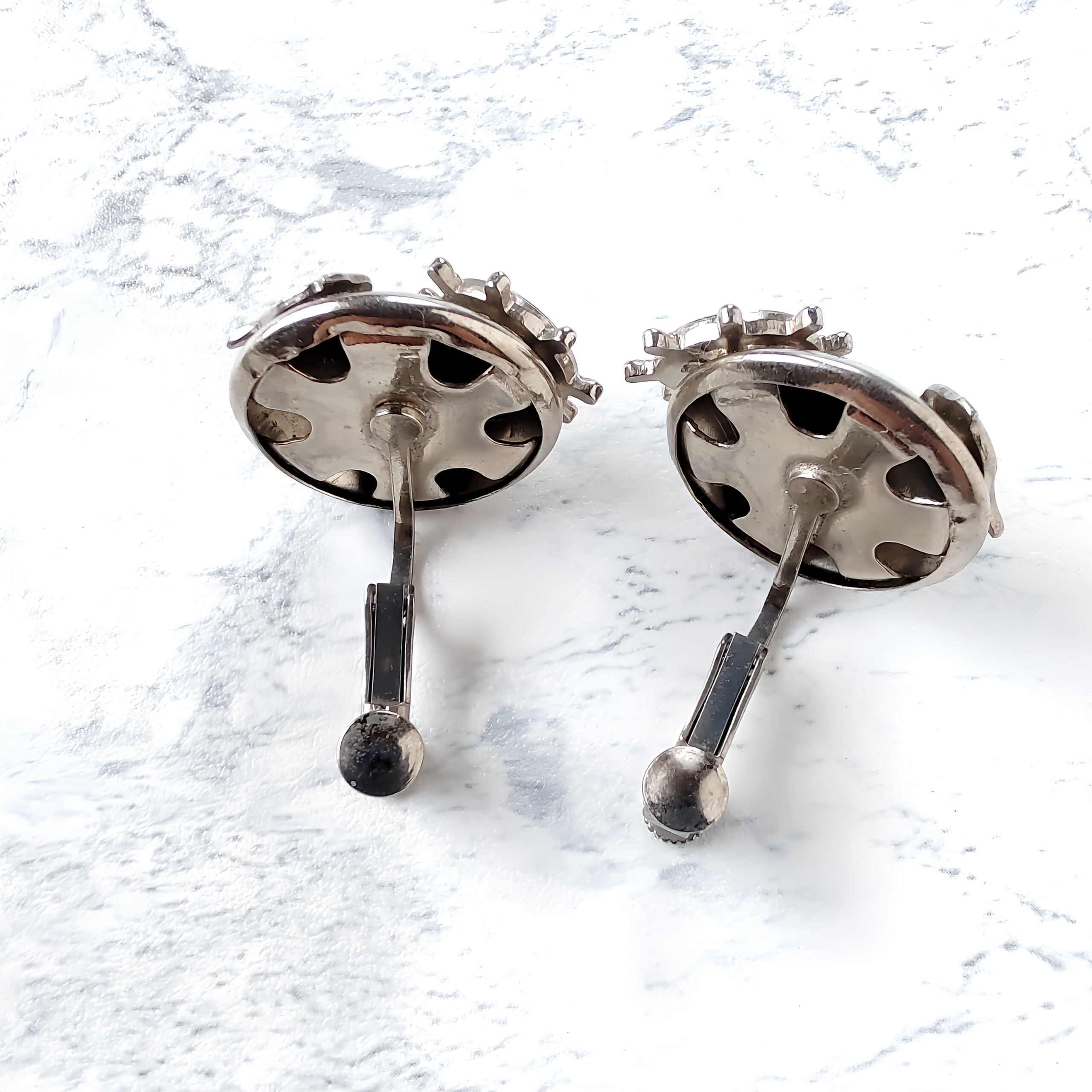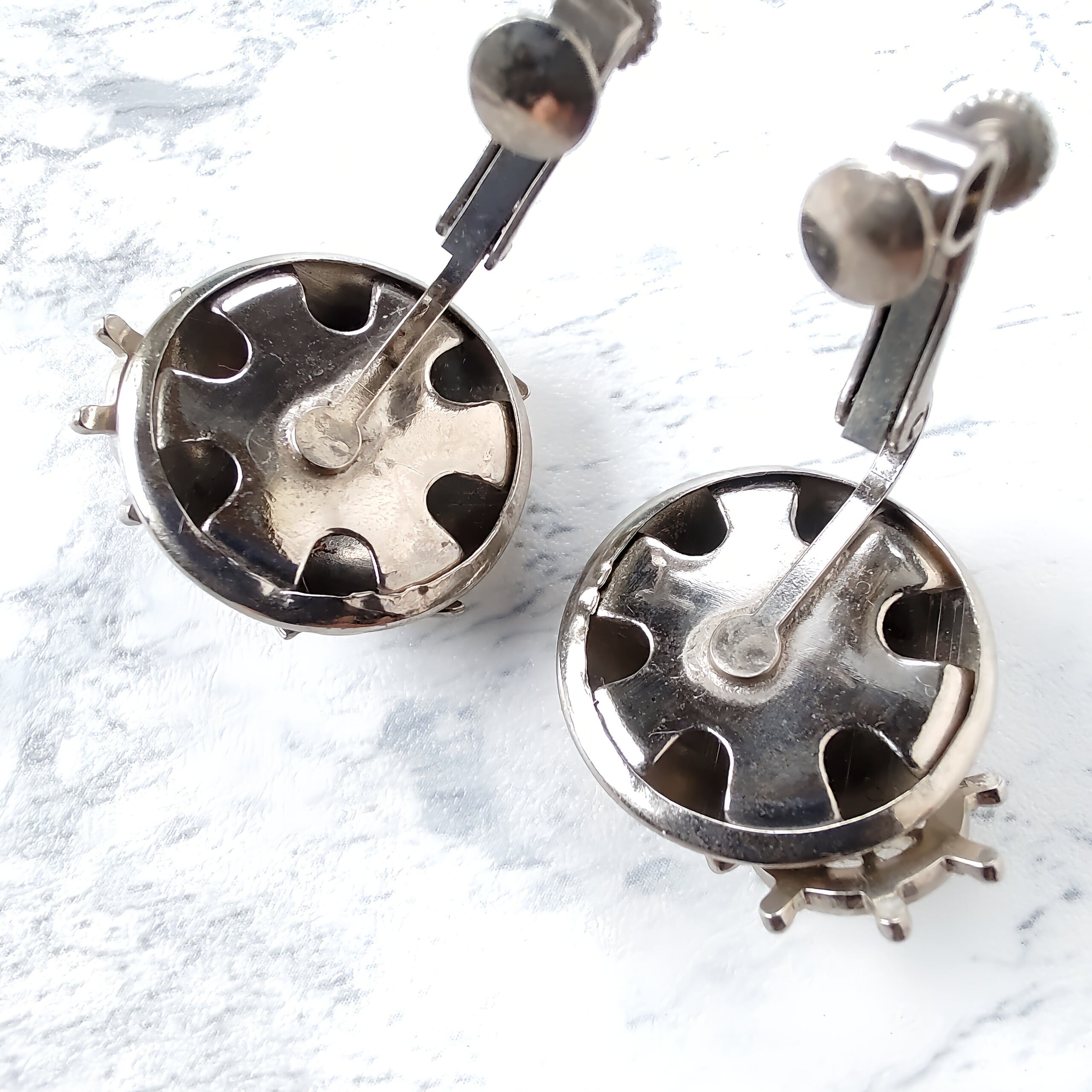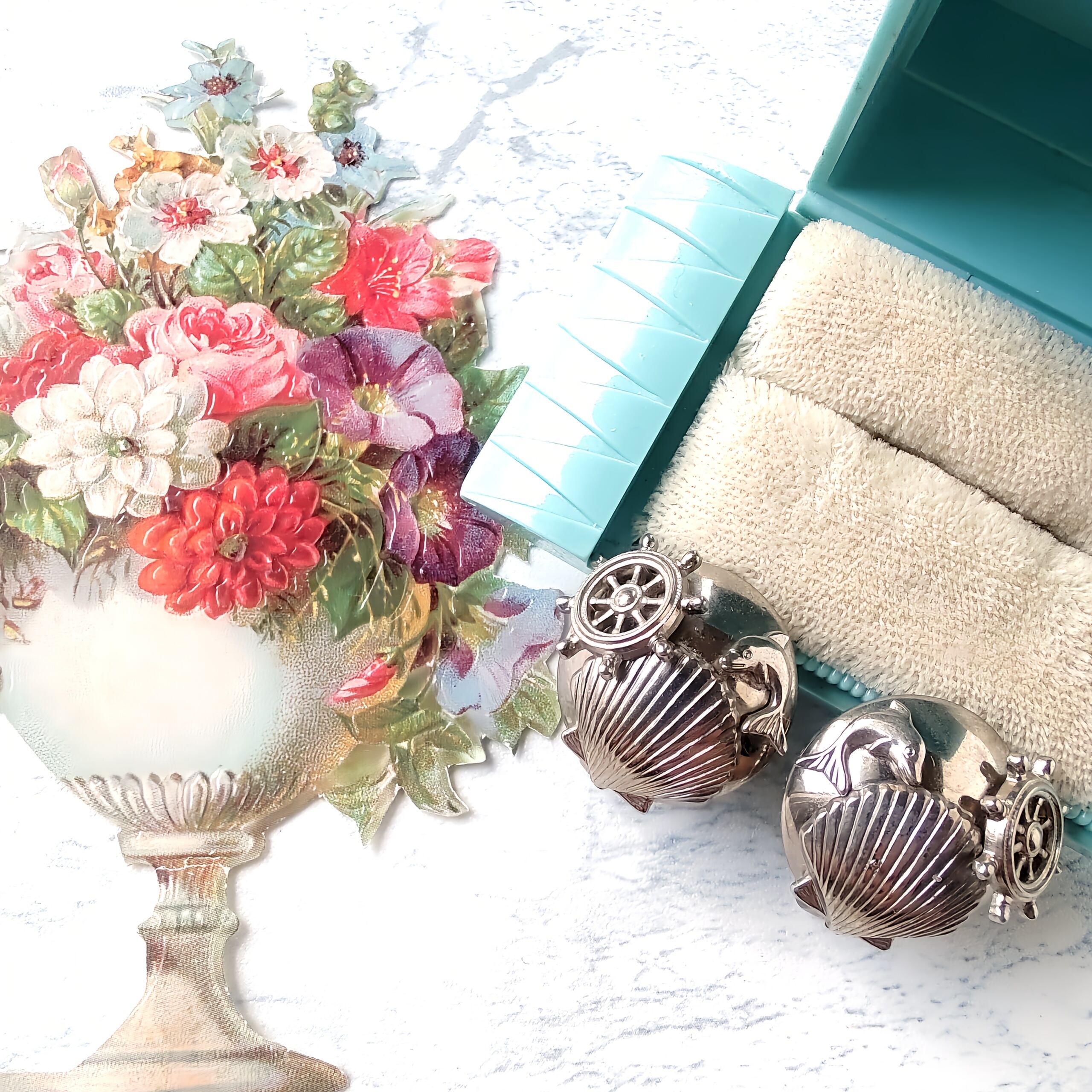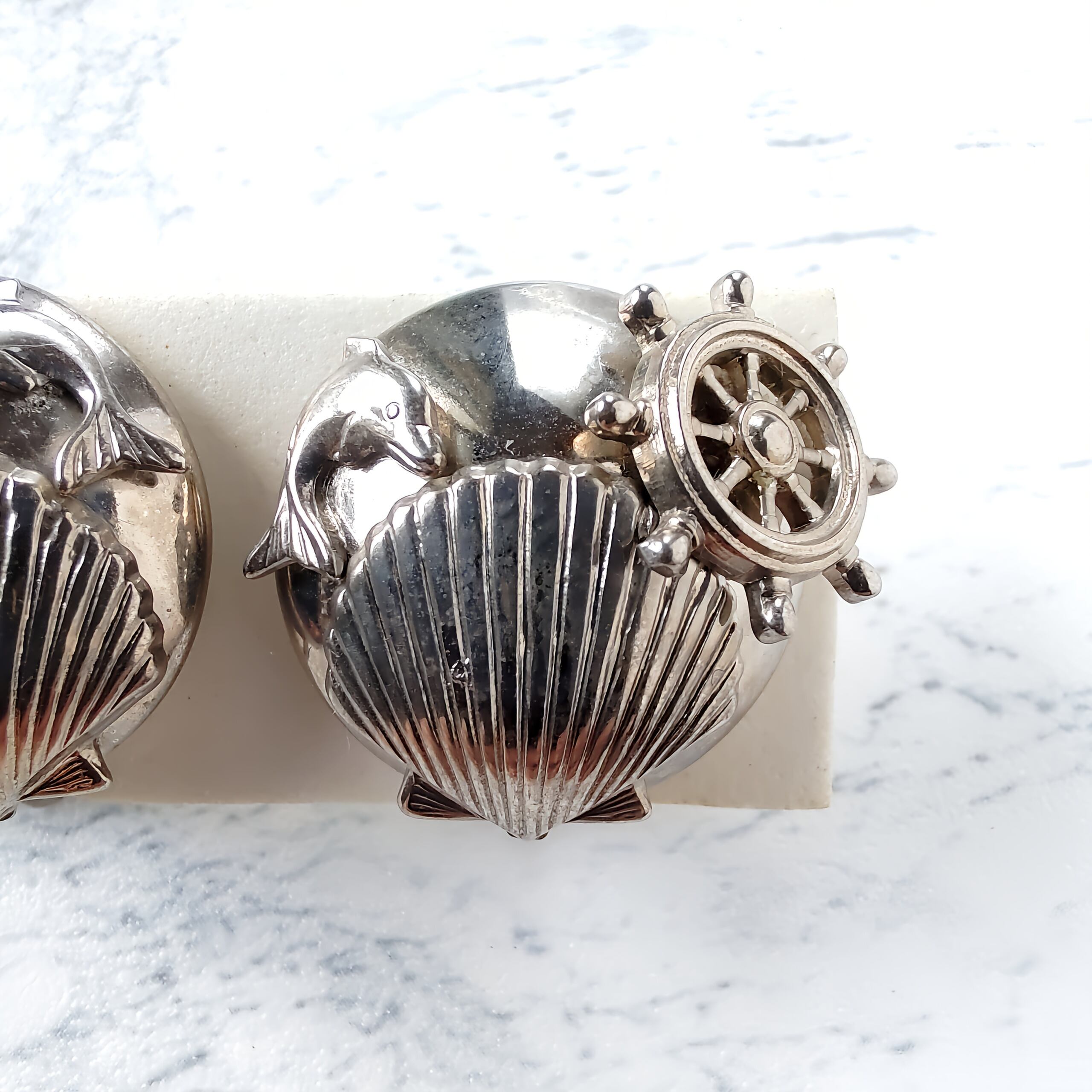 シルバーメタルのラウンドに貝殻、イルカ、舵輪があしらわれたヴィンテージイヤリングです。