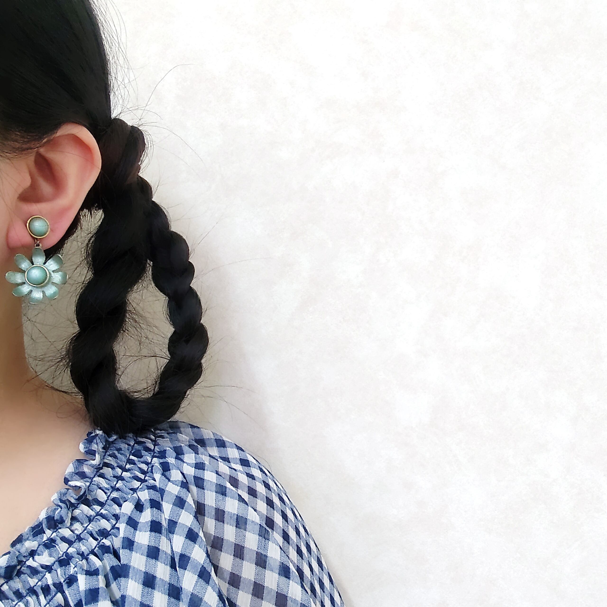 matte light blue enamel flower dangle vintage earrings ヴィンテージイヤリング
