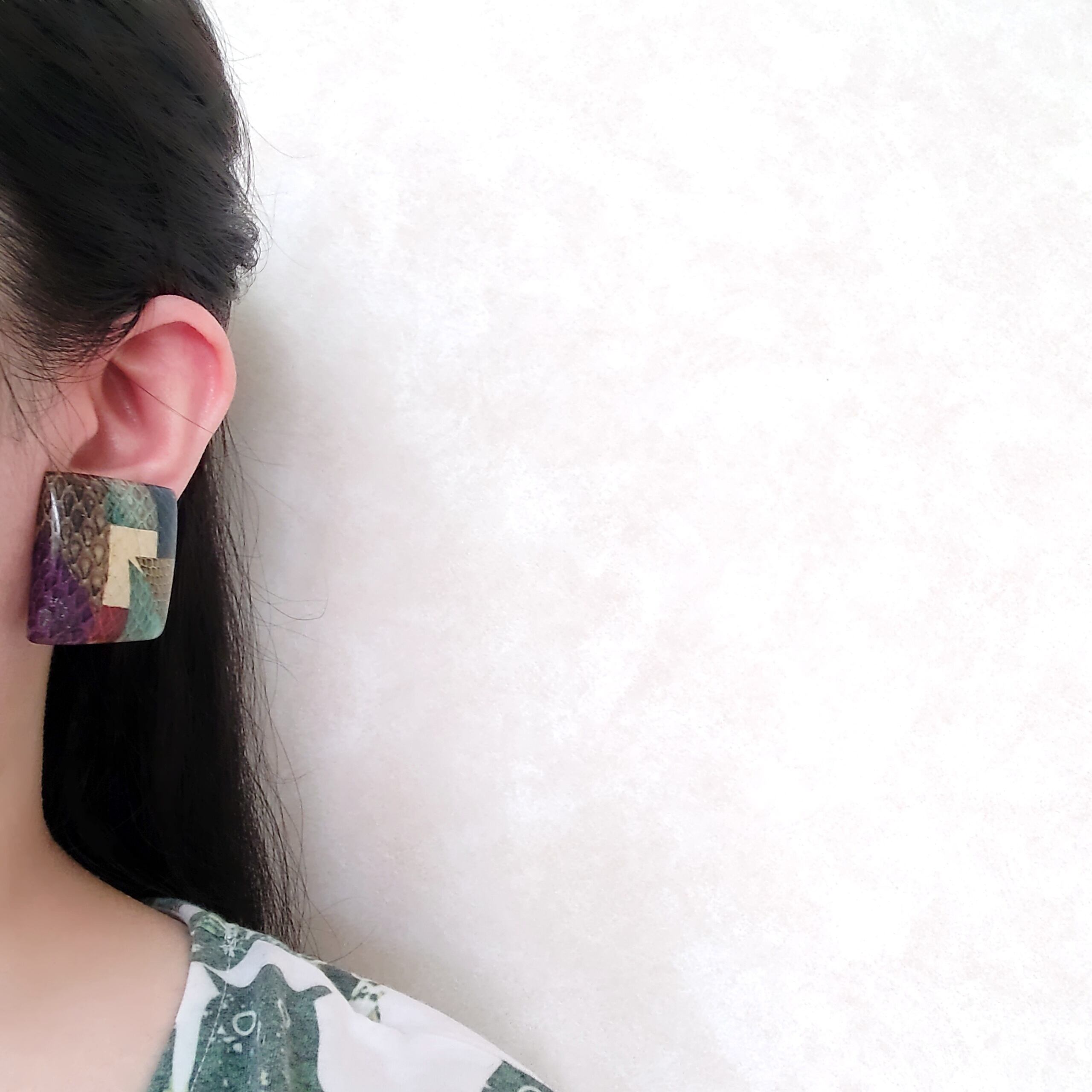 snakeskin pattern patchwork square vintage earrings ヴィンテージイヤリング