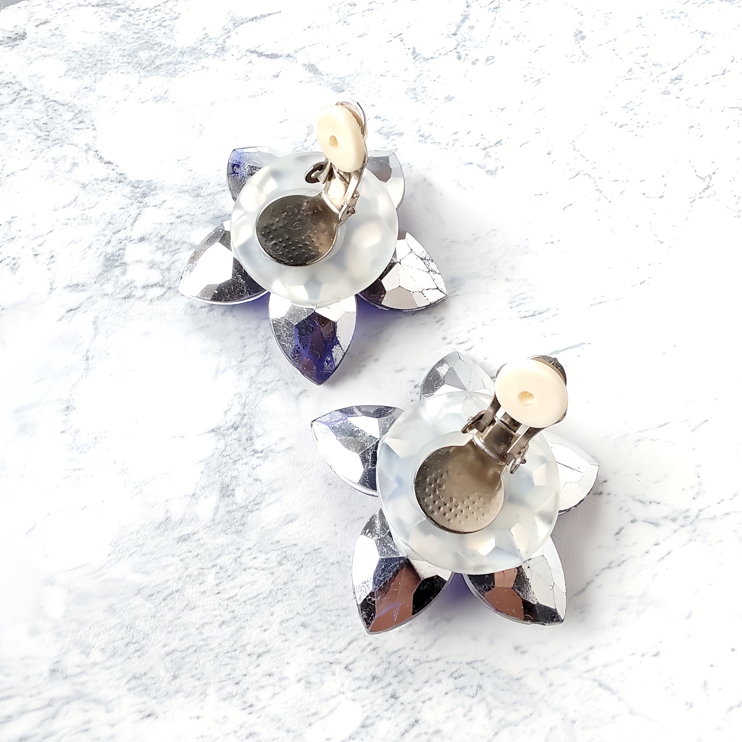 blue teardrop green rivoli plastic flower vintage earrings ヴィンテージイヤリング